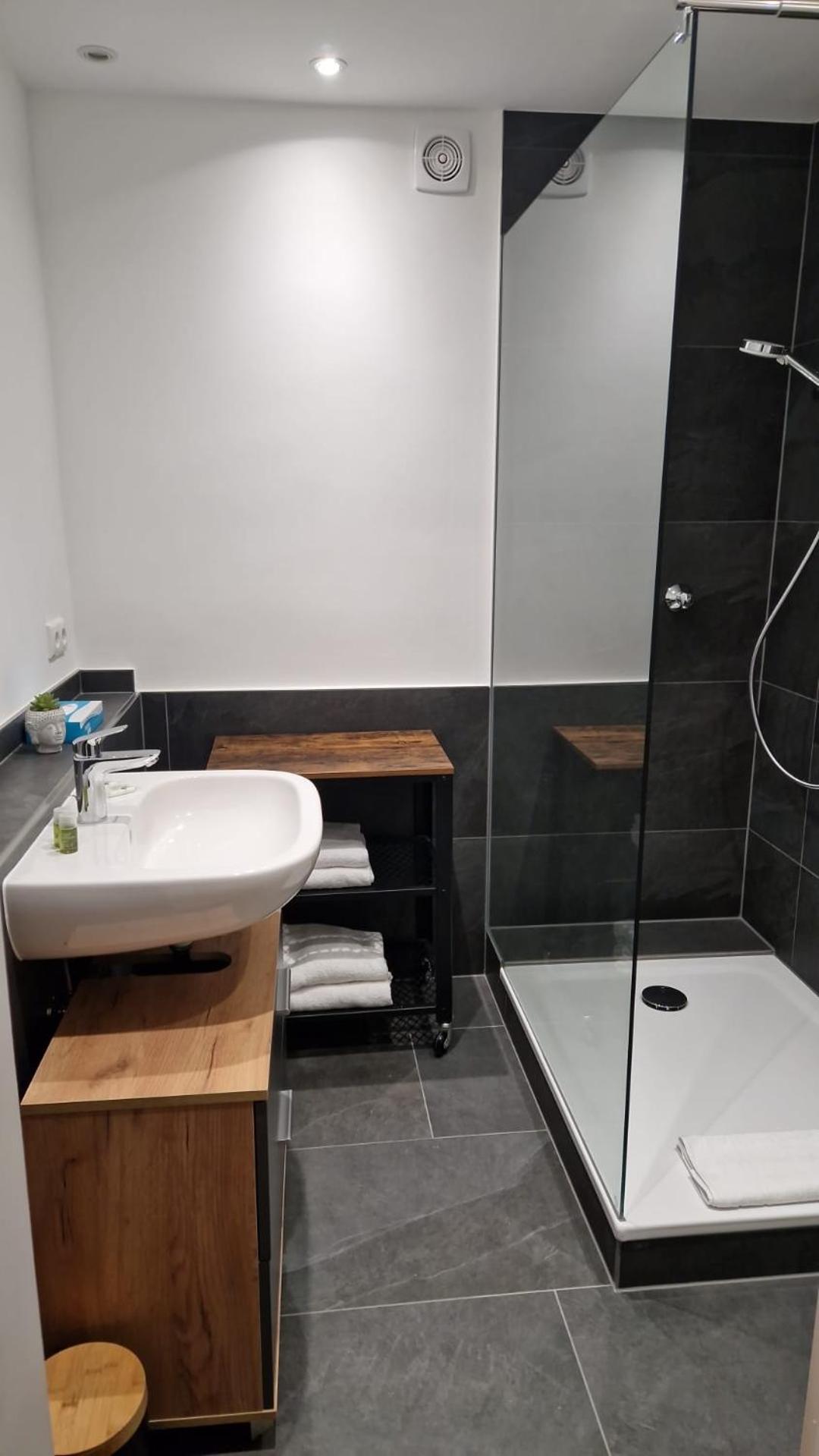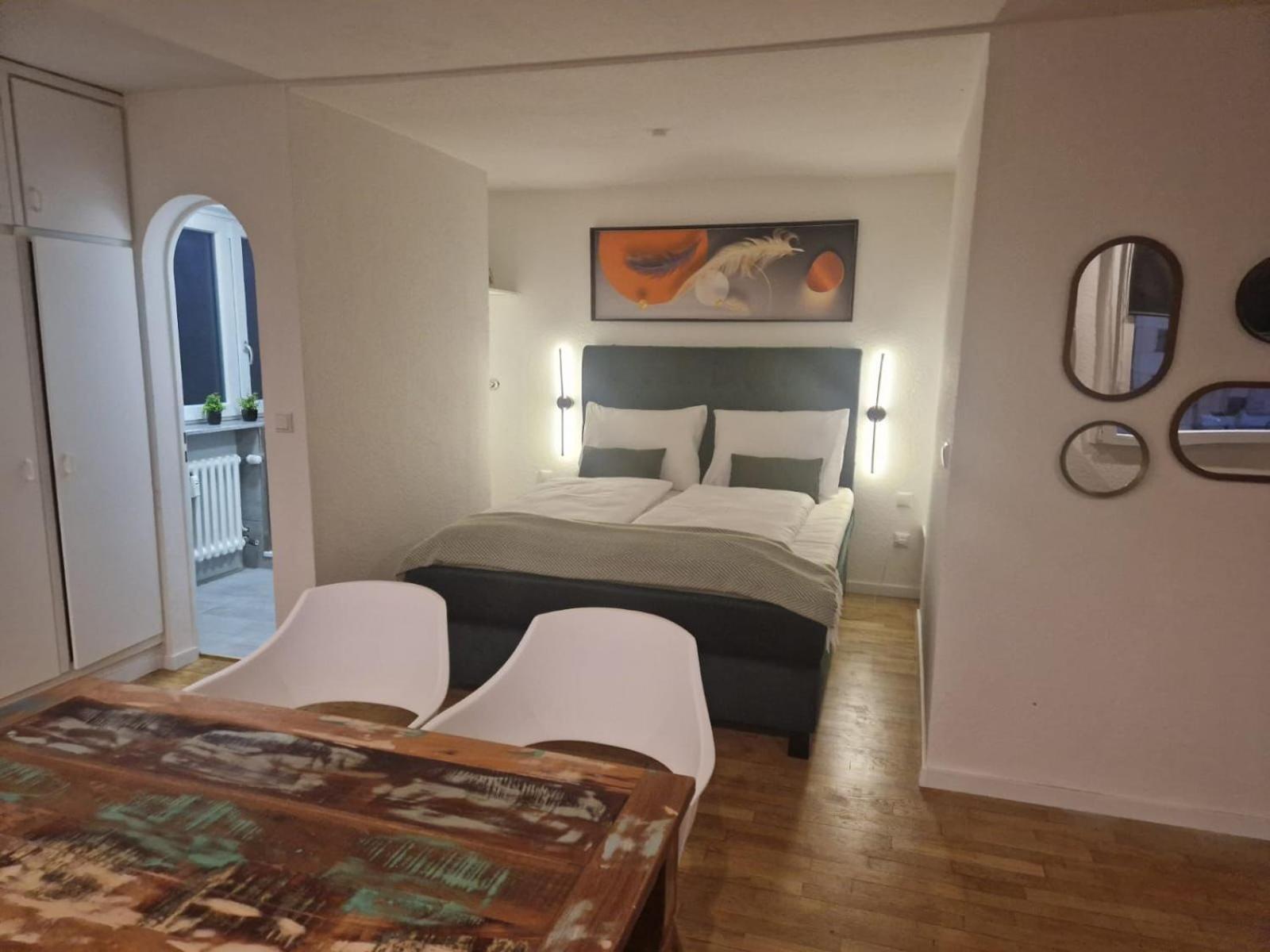 Komplikationloses Anreisen durch Türcodes, Parkplätze vor der Tür, sauberes und gemütliches Zimmer mit begehbarem Schrank und modernem Bad, gutes Frühstück