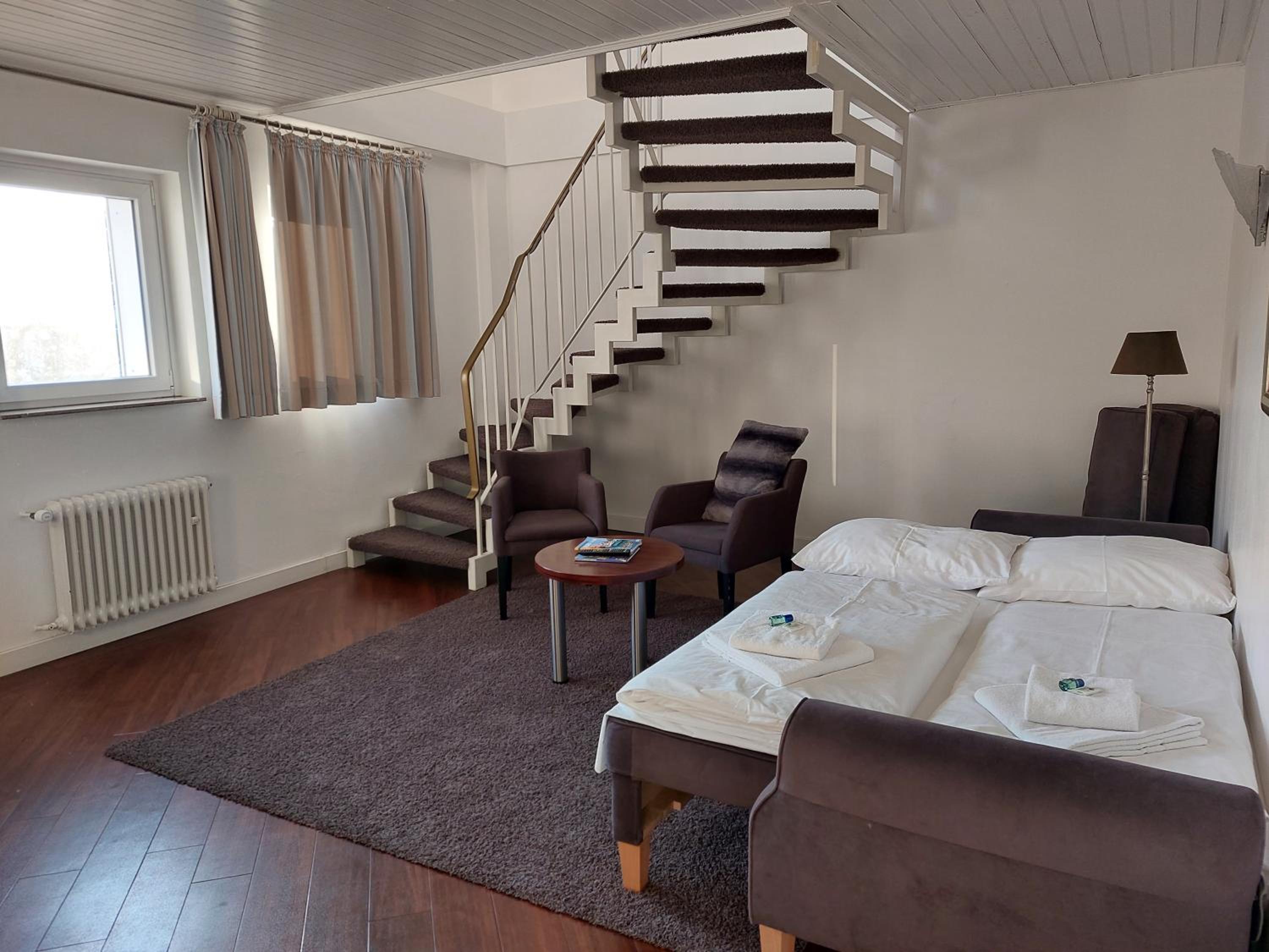 The apartments at Hotel Friederike are perfect for extended visits, accommodating up to 4 people. Guests can enjoy the rich breakfast buffet in the conservatory each morning.