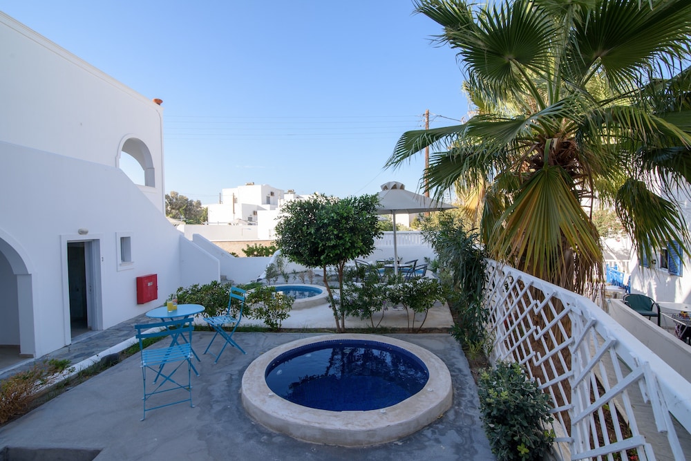 This is a very clean basic hotel and centrally located. Room 14 has a lovely private balcony that over looks the pool. Bathroom needs work but for the price, we truly enjoyed this accommodation. Two minutes to the beach and restaurants. George the manager was most accommodating. The hotel includes breakfast (Greek style). If you’re looking for an inexpensive place but want location, this is for you. Highly recommend.