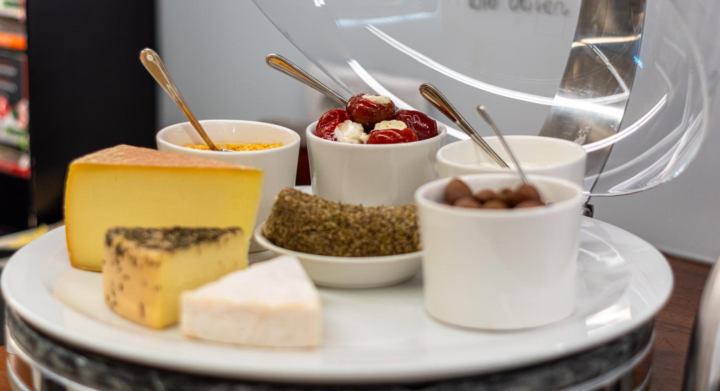 Frühstück: Rühreier, Qualität im Verhältnis zu Anspruch, kein guter Espresso, angetrocknete, abgestandene Schnittkäse