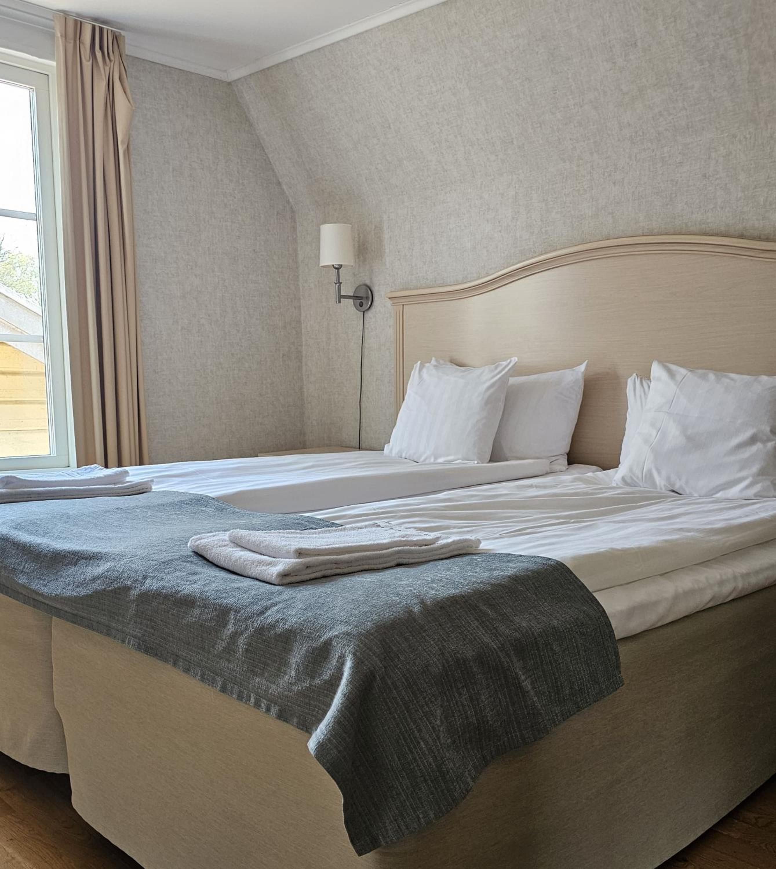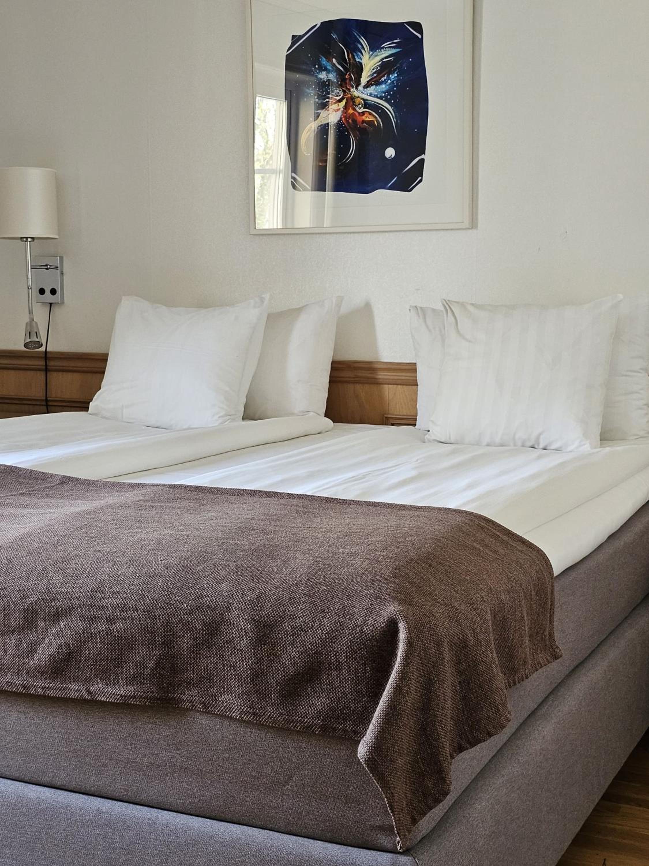 Sängen var en medelmåttig upplevelse. Nu är det där med madrasser och kuddar väldigt personligt, men för mig och maken var madrassen för hård och sovkuddarna för fasta. Däremot var det jättepositivt med extra långkuddar så att man kunde halvsitta om man ville läsa eller se på TV. Jag kommer att testa hotellets sängar ännu en gång (och hoppas på bättre tur) för allt annat var riktigt bra.