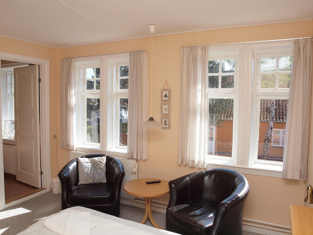 Prisen taget i betraktning er dette hotel rigtigt fint. Man får et rumeligt værelse i en gammel charmerende bygning. Stor terrasse med dejlig havudsigt. Virkelig lækker morgenbuffet med pænt stort udvalg for enhver smag. Beliggenheden er midt i byen og i gå afstand til indkøb og Hasle røgeri restaurant. Herfra er det nemt at køre på sightseeing rundt om på Bornholm.
