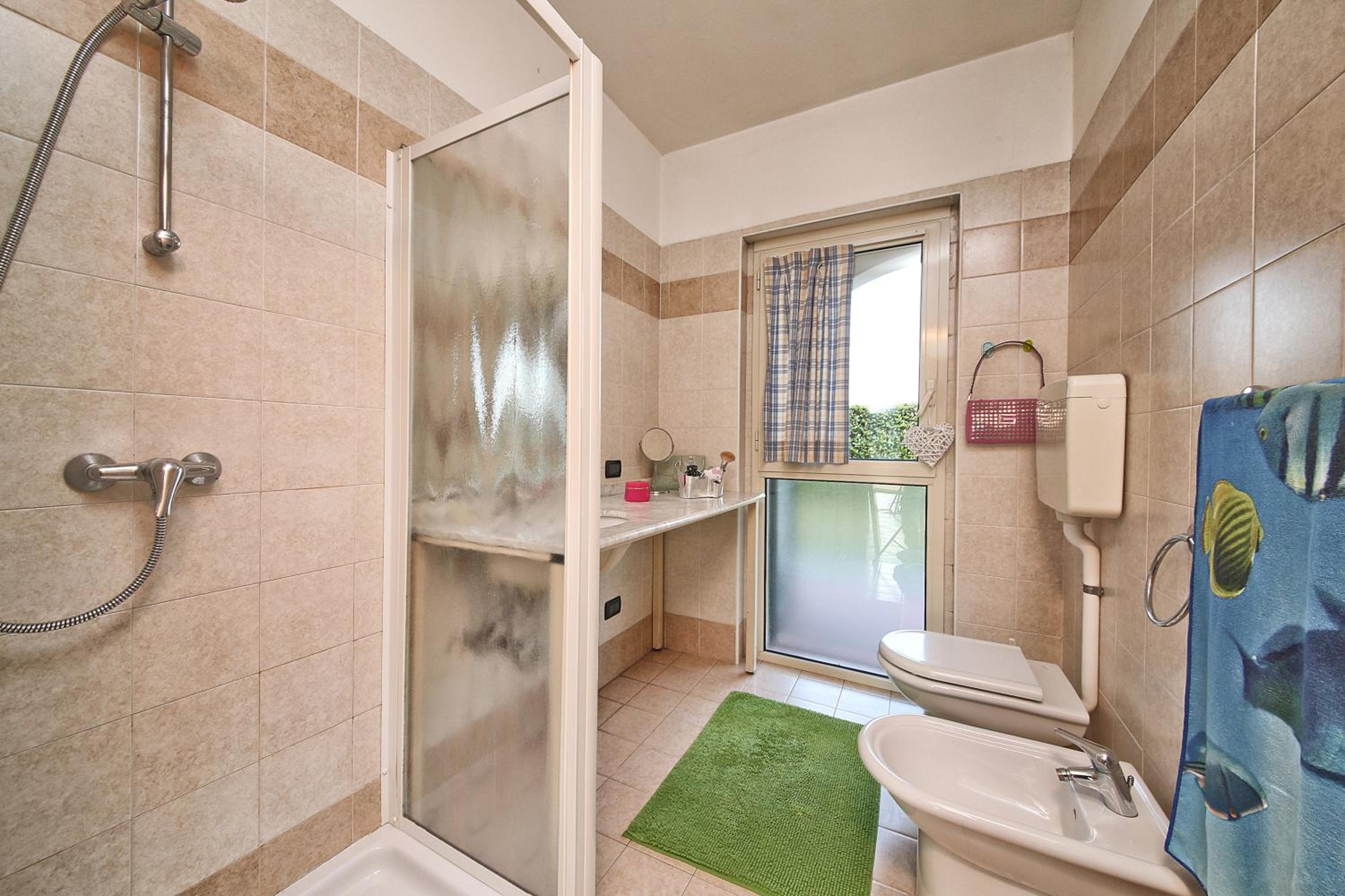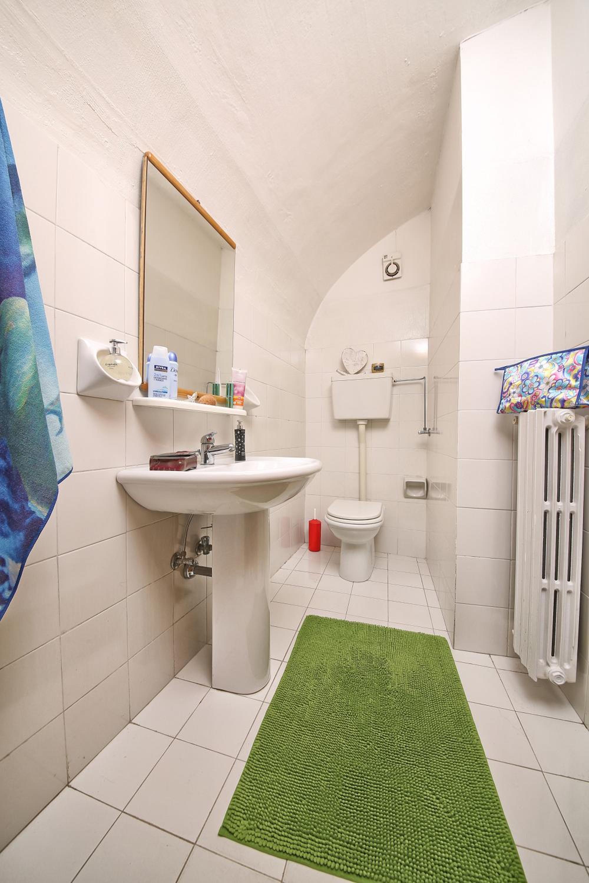 Nel bagno non c'era il tappetino . Il dispenser dell o shampoo è collocato fuori dalla doccia ed è scomodo