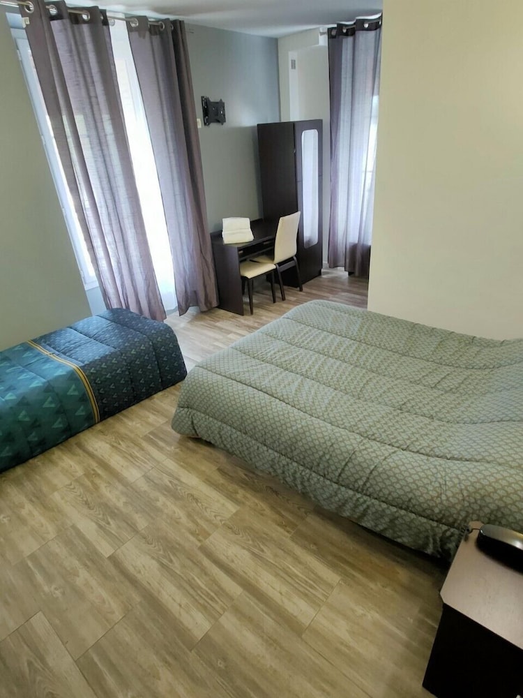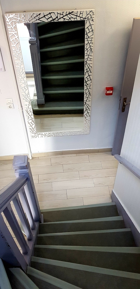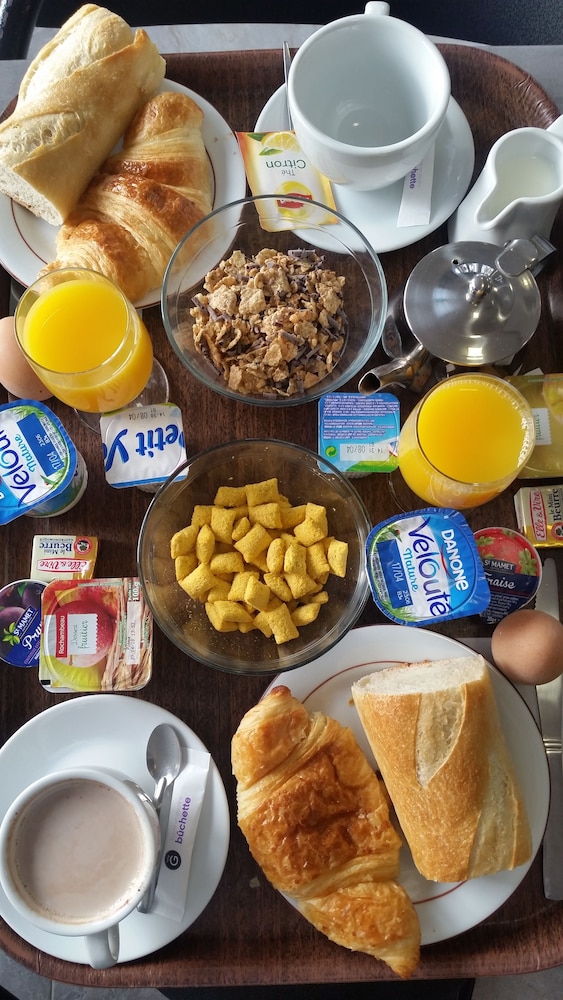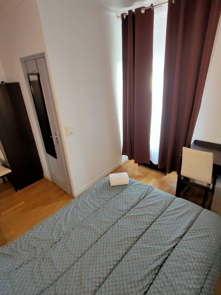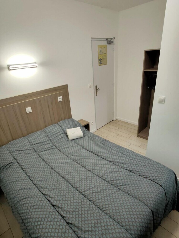 Man skal huske hotellet har en stjerne. Placering perfekt i forhold til tog direkte til Paris. P- plads meget tæt på. Der var ok rent på værelset, men vedligehold af møbler, knager hylder etc. ville gøre det til en bedre oplevelse, og minimum en nat/læselampe! Imødekommende værter