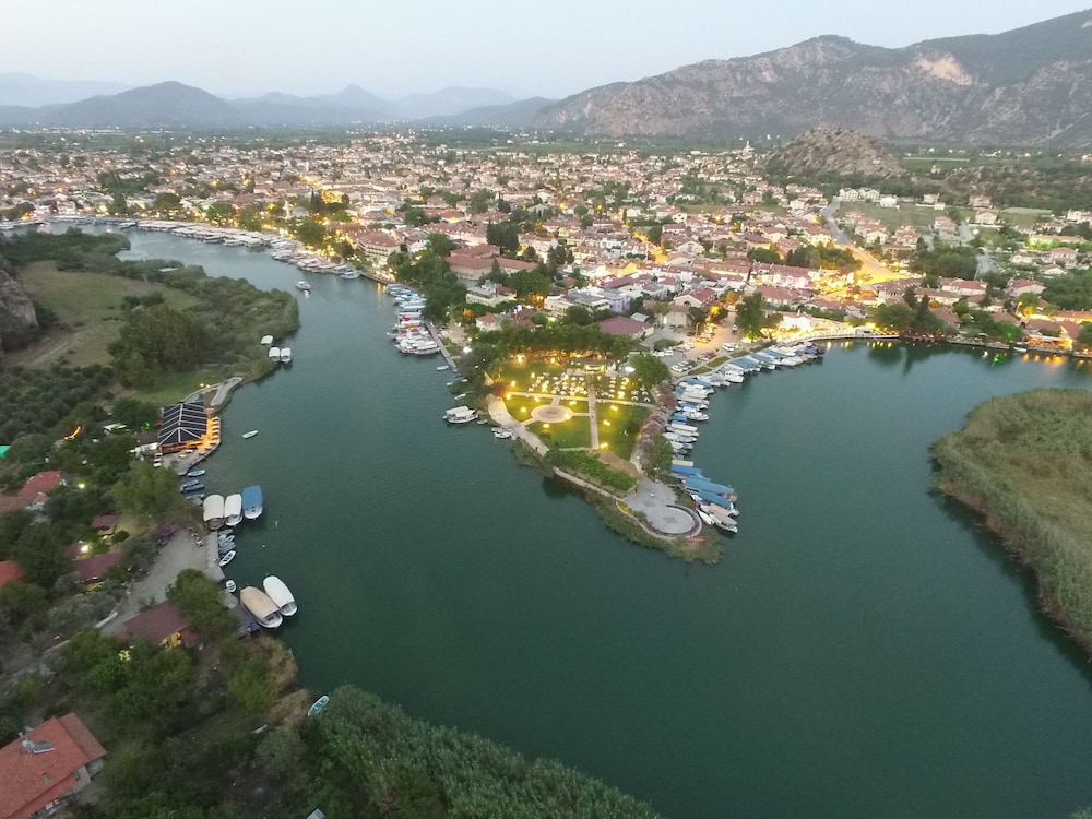Otelin konumu zaten harika Dalyan çayının hemen önünde. İztuzu plajına gitmek istiyorsanız resepsiyondakiler yardımcı oluyor tekne sizi otelden alıp otele bırakıyor. Restorant manzarası harika Kaunos kaya mezarlarının önündesiniz. Odalar tertemiz ve ekonomik odaları bile gayet geniş biz eşimle 2 valizle gayet sığdık. Çalışanlar güler yüzlü 7/24 yardımcı oldular her şeyle. Havuza girme imkanımız olmadı ama o da oldukça temiz görünüyordu. Kesinlikle bir daha geleceğiz