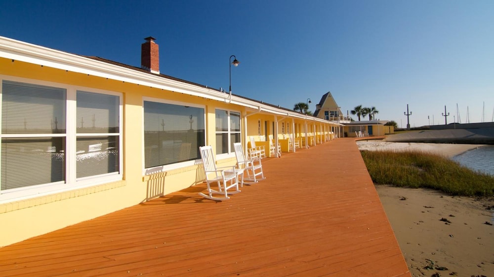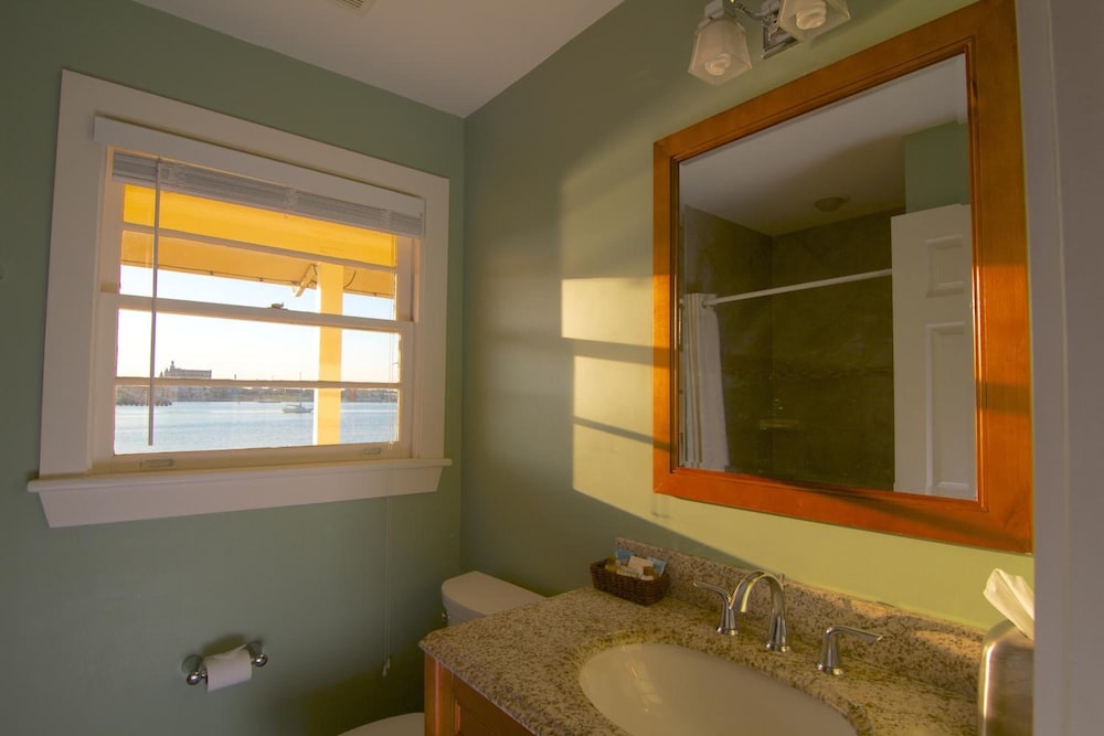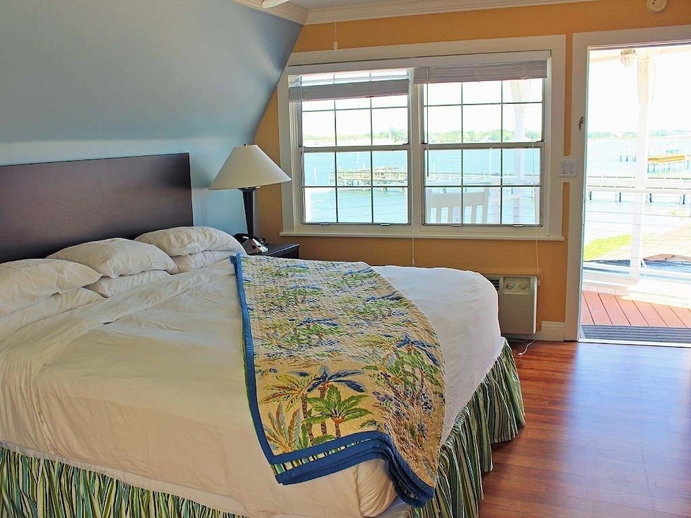 The staff was friendly and welcoming! The view in the breakfast area is breathtaking! It’s a quick walk over the bridge so very convenient! Delicious home cooked breakfast! Nice seating area by the water to watch the boats and dolphins!🐬 We missed the complimentary wine and cheese but what a nice touch! The reason I took away a star was the rooms had an unpleasant smell, the paint was peeling and the ceiling in the bathroom was stained and falling apart. They need some upkeep!