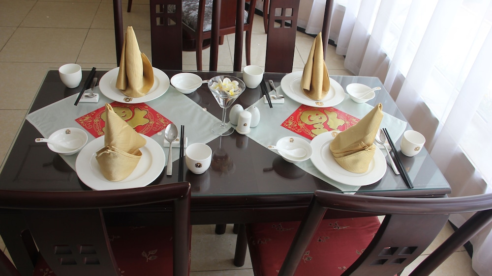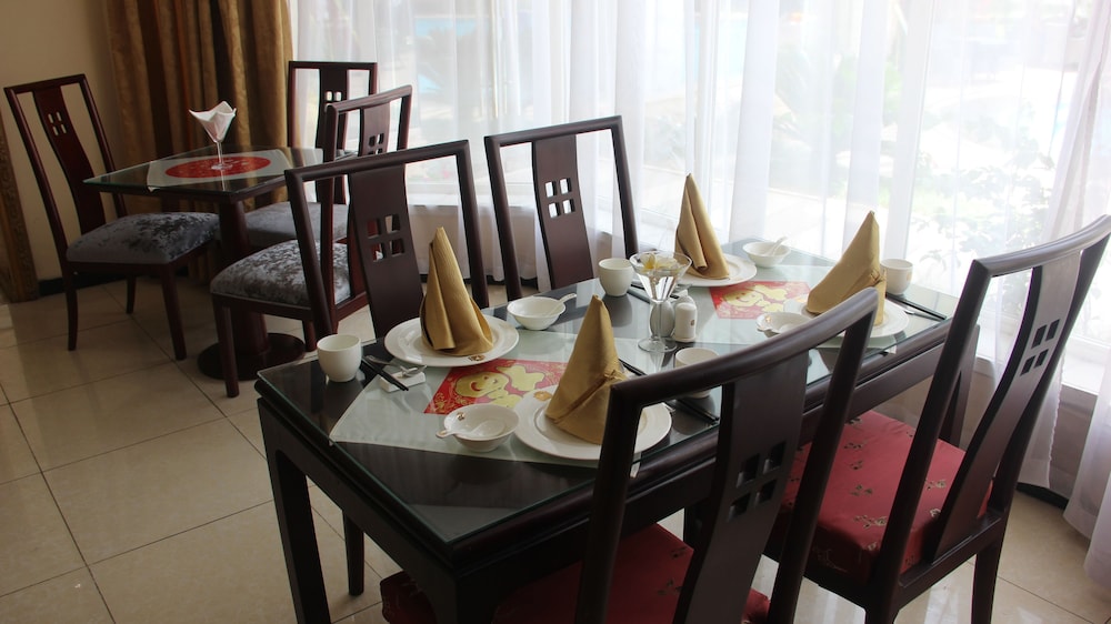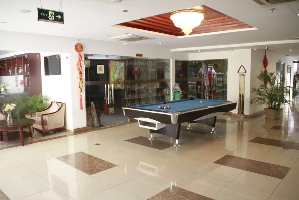 This is a Chinese hotel which caters specifically to Chinese visitors. Standard facilities like coffee in the room (or indeed, in the hotel), food that isn't Chinese, toiletries etc. are nonexistent. Chinese ambient music plays constantly. There are barely any in-house services or amenities, except (most notably) the pool. The little available food is absolutely awful, and I'm not even fussy. And the corridors are always dark because the lights are kept off, presumably to save money. In fact, the lights everywhere (except the reception area) are dim LEDs, and the entire atmosphere is quite depressing and dingy.
