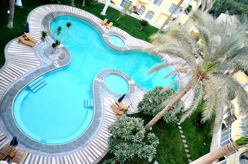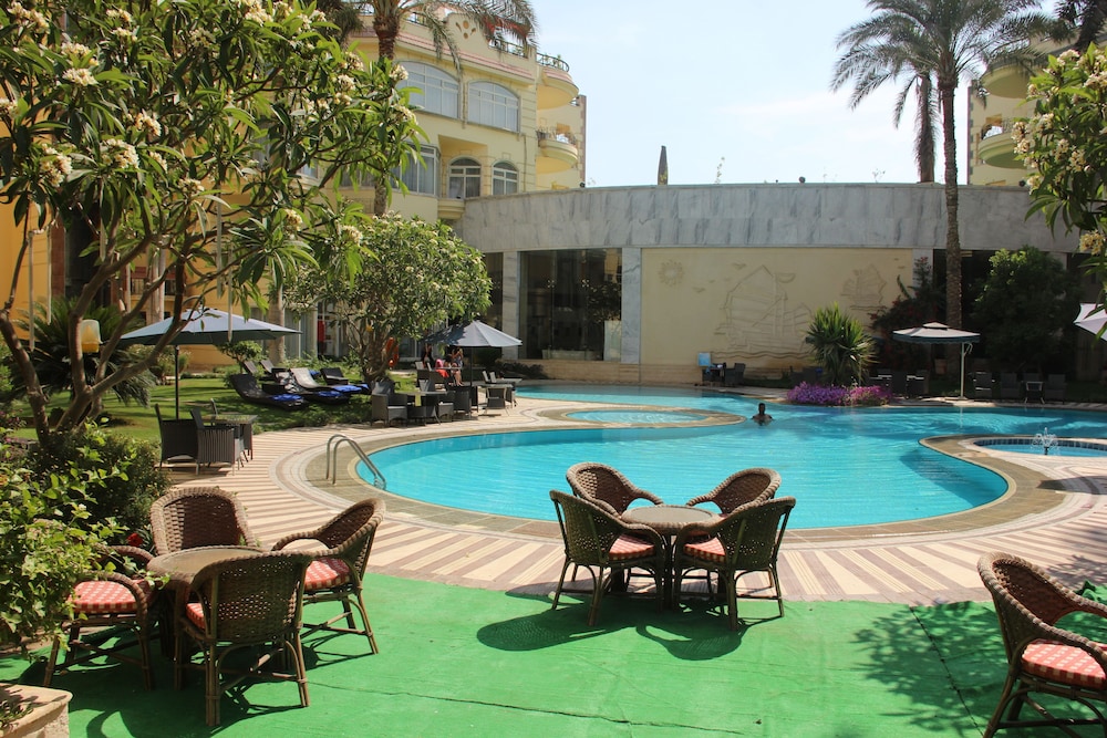 Hotel has really enchanting central place with a pool in the middle. Vegetation complements the pool and it all looks very nice. For me it was strange not to see many guests. It kind of seems like a hotel for mostly Chinese visitors. If you reserve in USD or EUR or any currency apart from EGP, you will end up paying in EGP. Personnel is very kind. When I came for breakfast 1 min to 10 and found the breakfast room totally emptied, after a bit of complaining they brought me a breakfast, just for me.