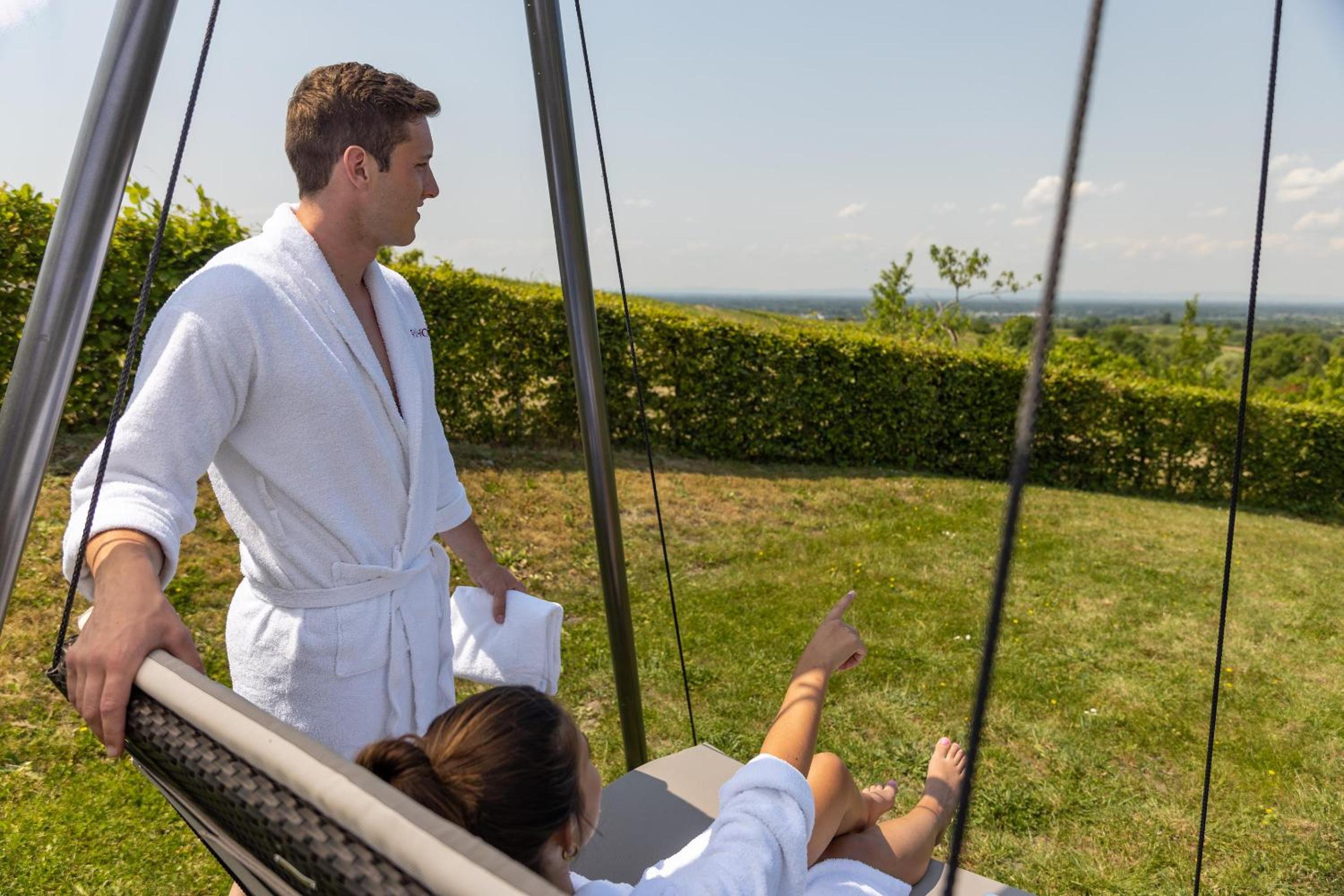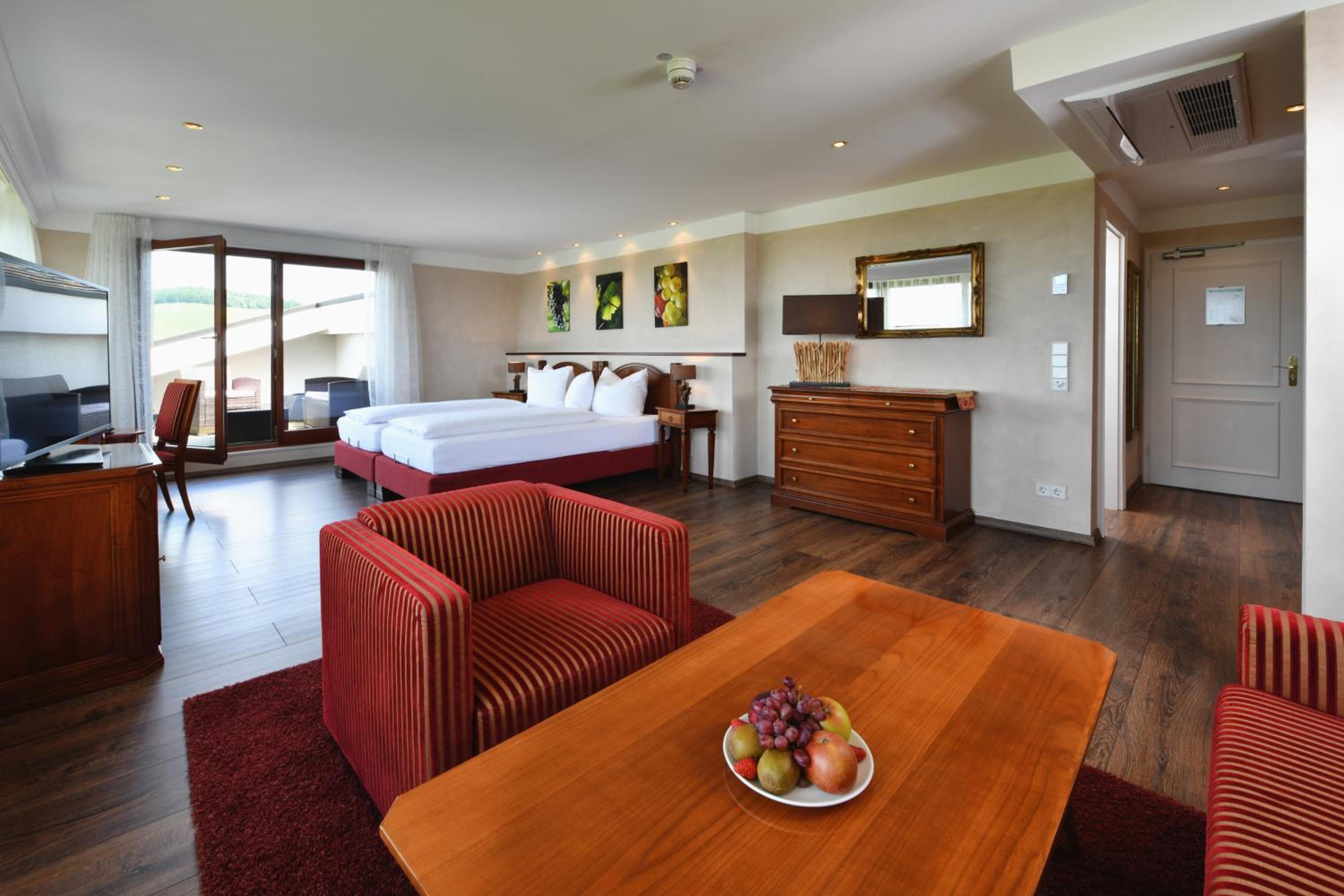 Beautiful surroundings nestled among vineyards, with plenty of walking and cycling paths. Charming accommodation—very clean, comfortable, and peaceful. A delicious breakfast, plus a wonderful wellness area featuring four saunas and a relaxing rest zone. Perfect for a weekend escape.