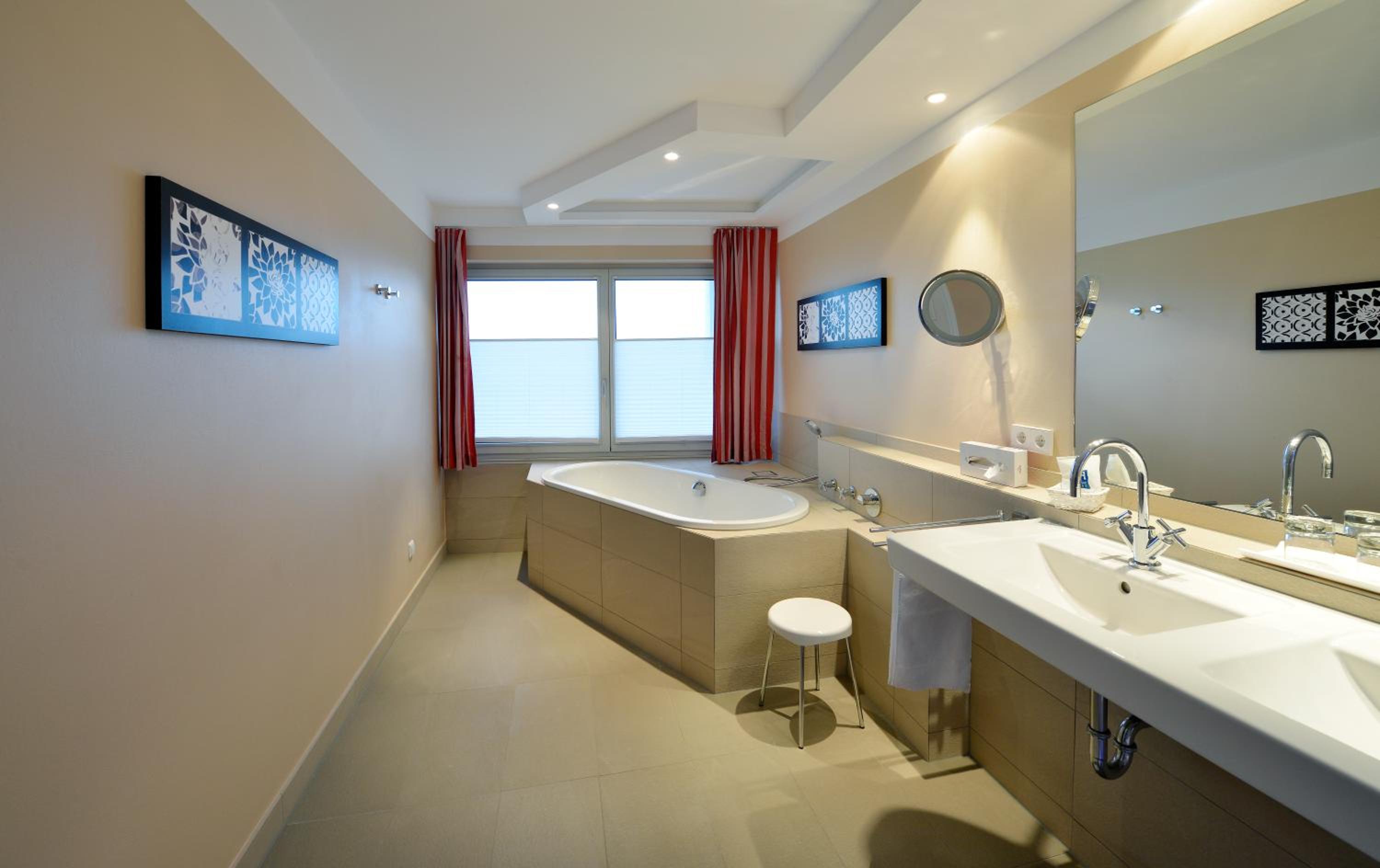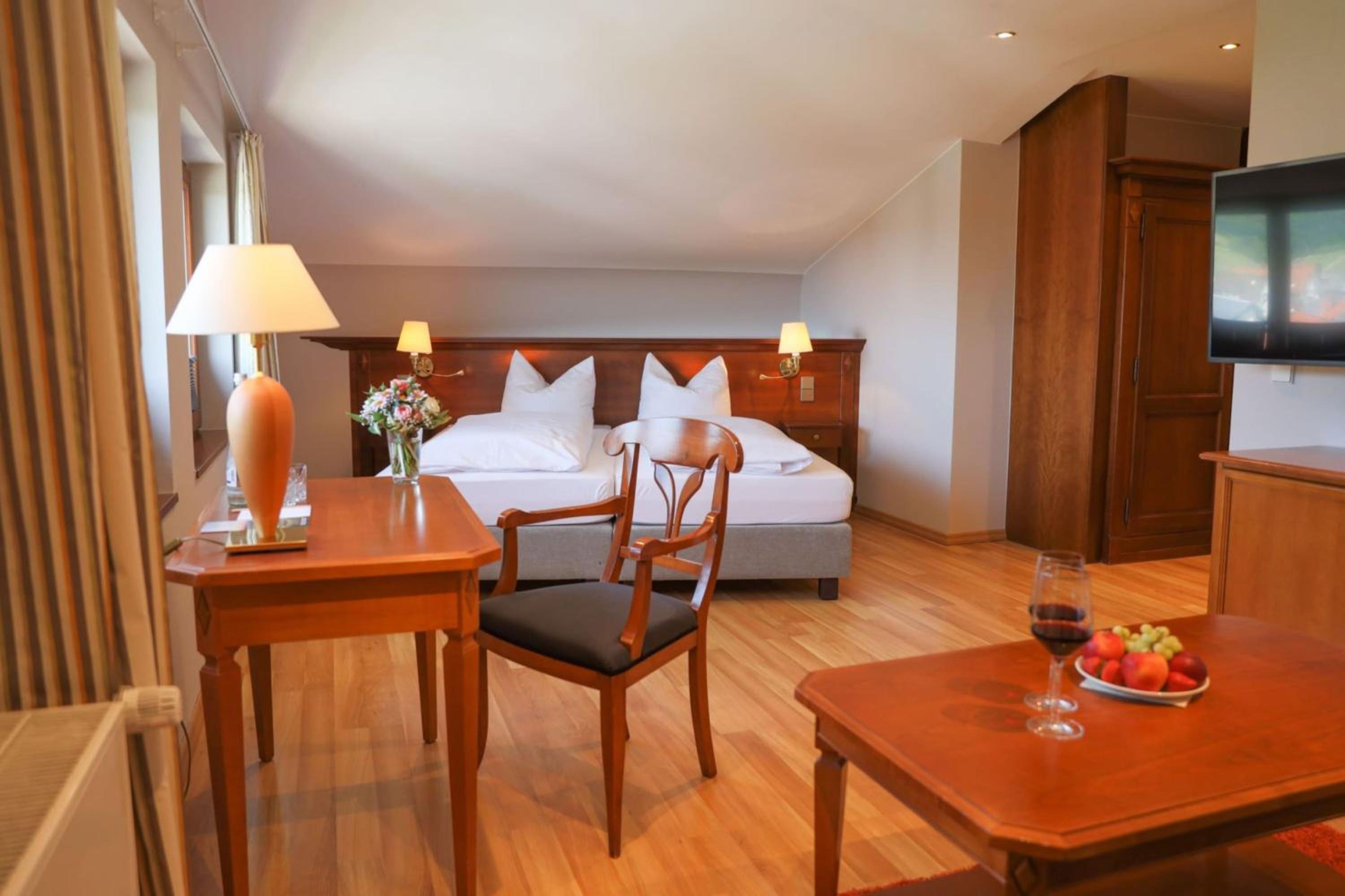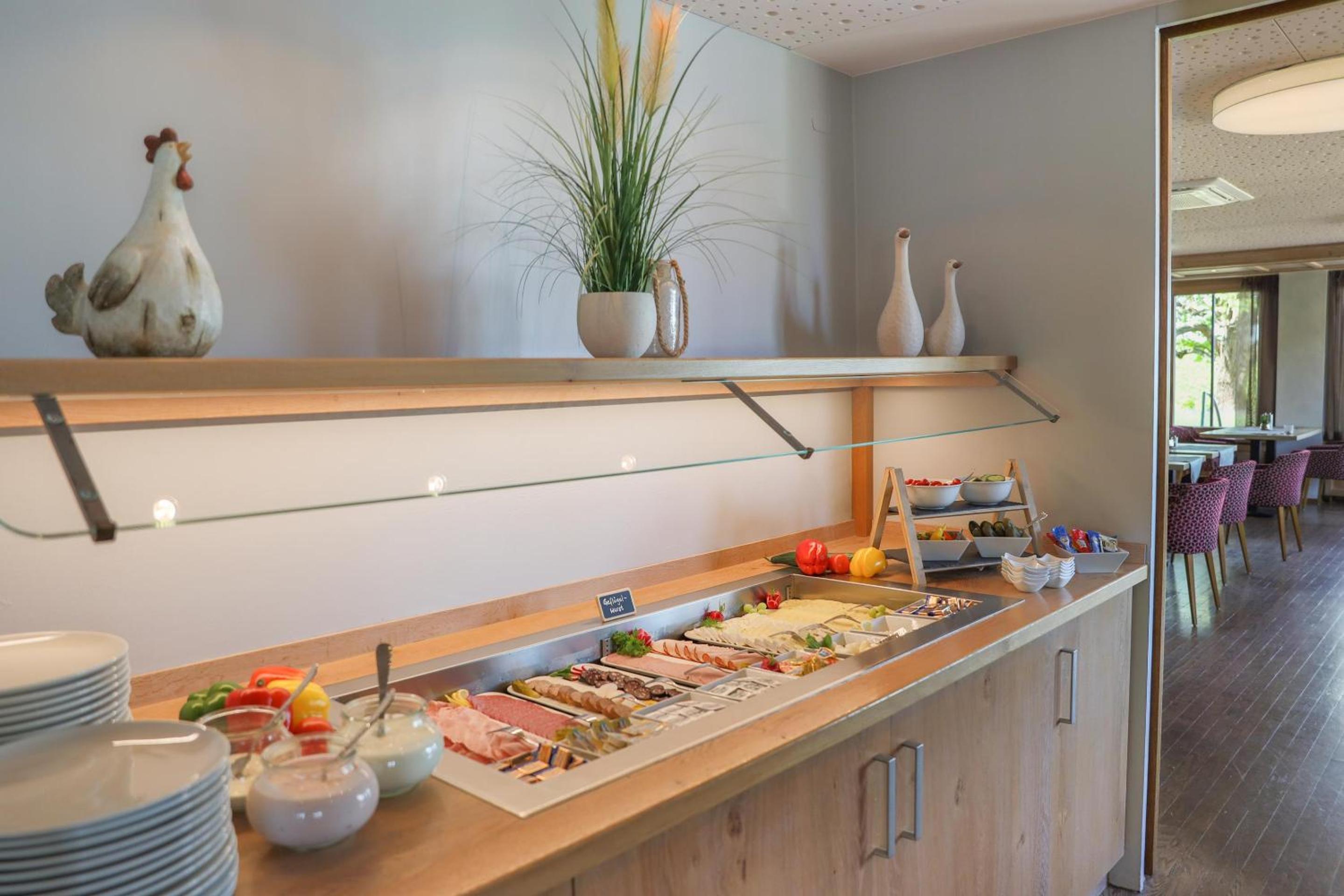 Sehr ruhig in der Nacht. Netter kleiner Saunabereich (3 Saunen + Dampfbad). Sehr gute Küche.
