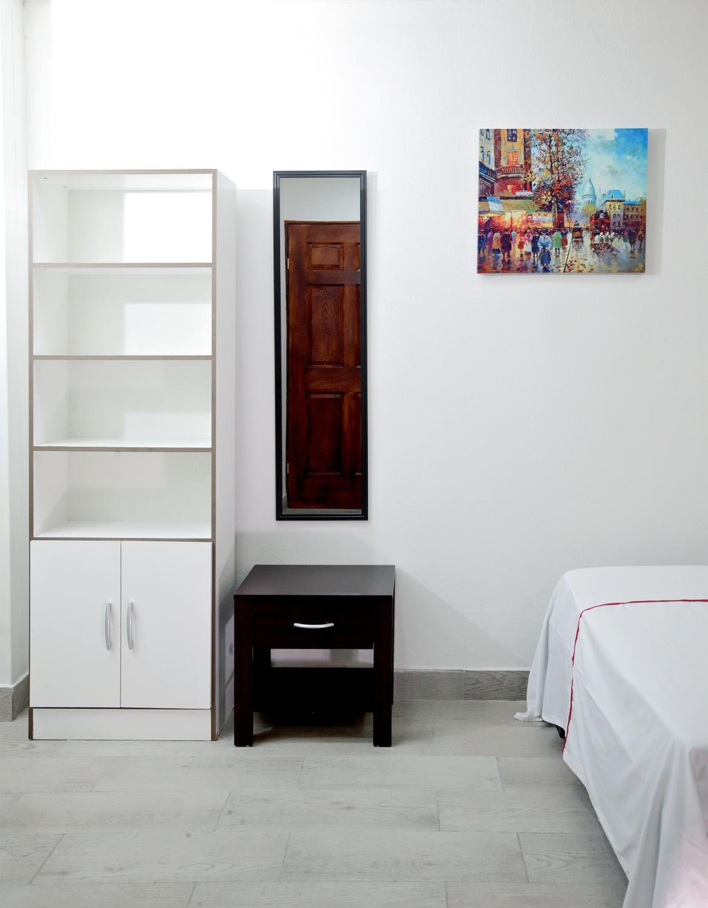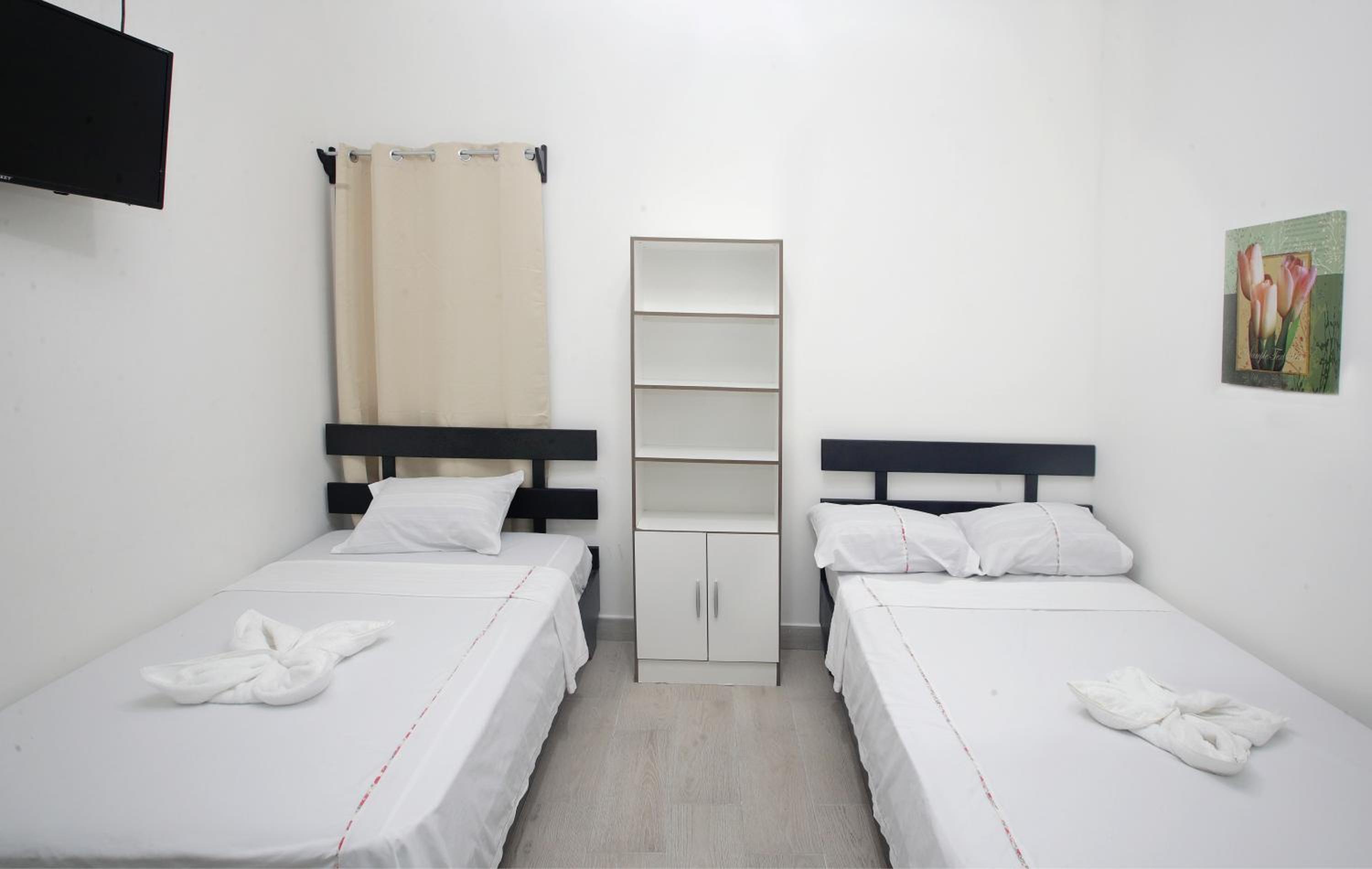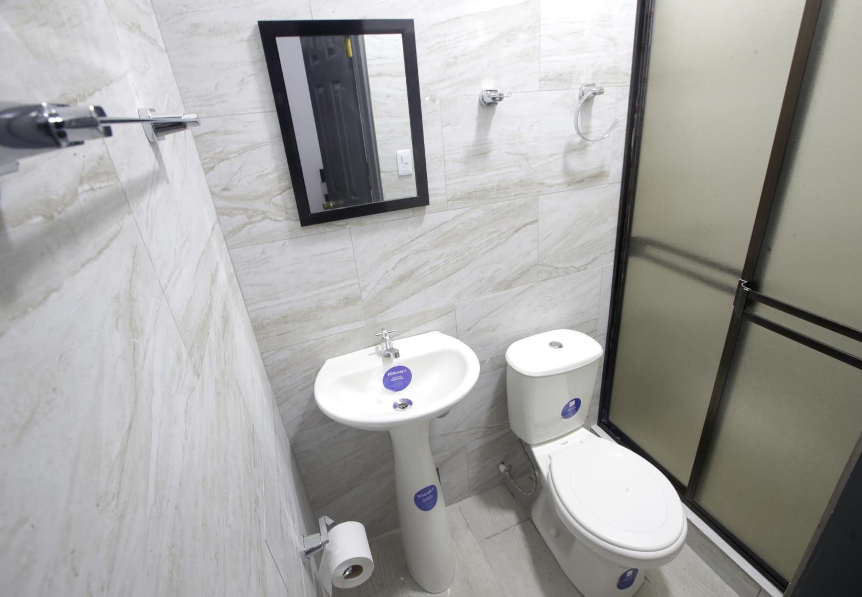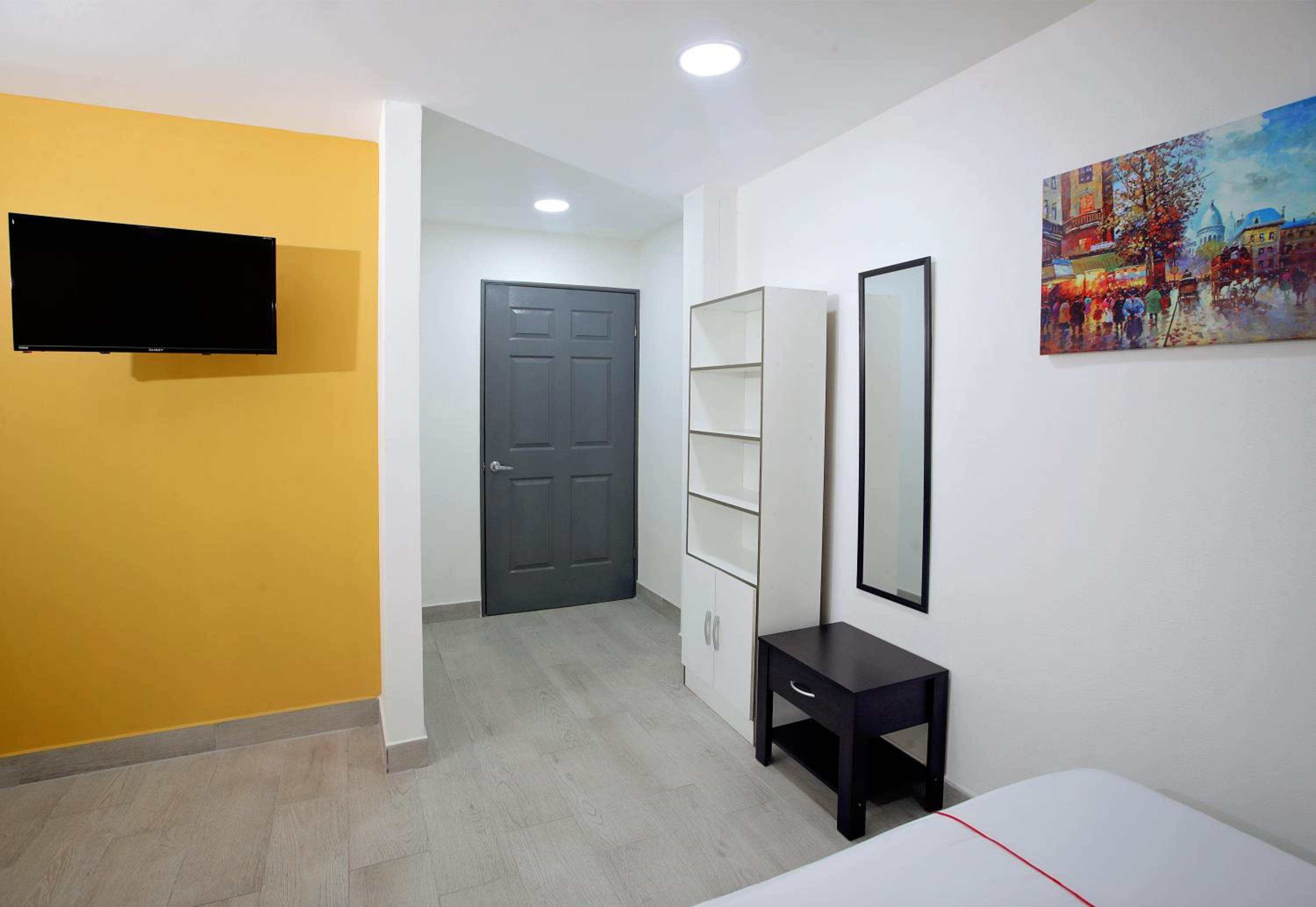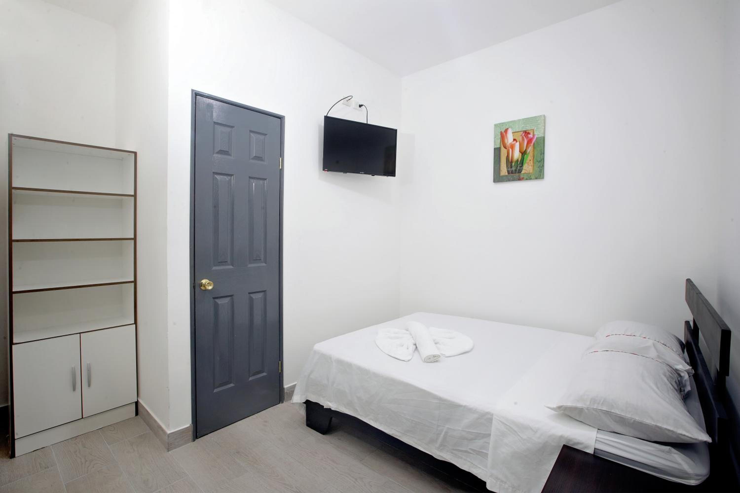 Each room at Hotel San José is equipped with modern amenities including a flat-screen TV, private bathroom, and cozy bed linens, ensuring a comfortable stay for all guests.