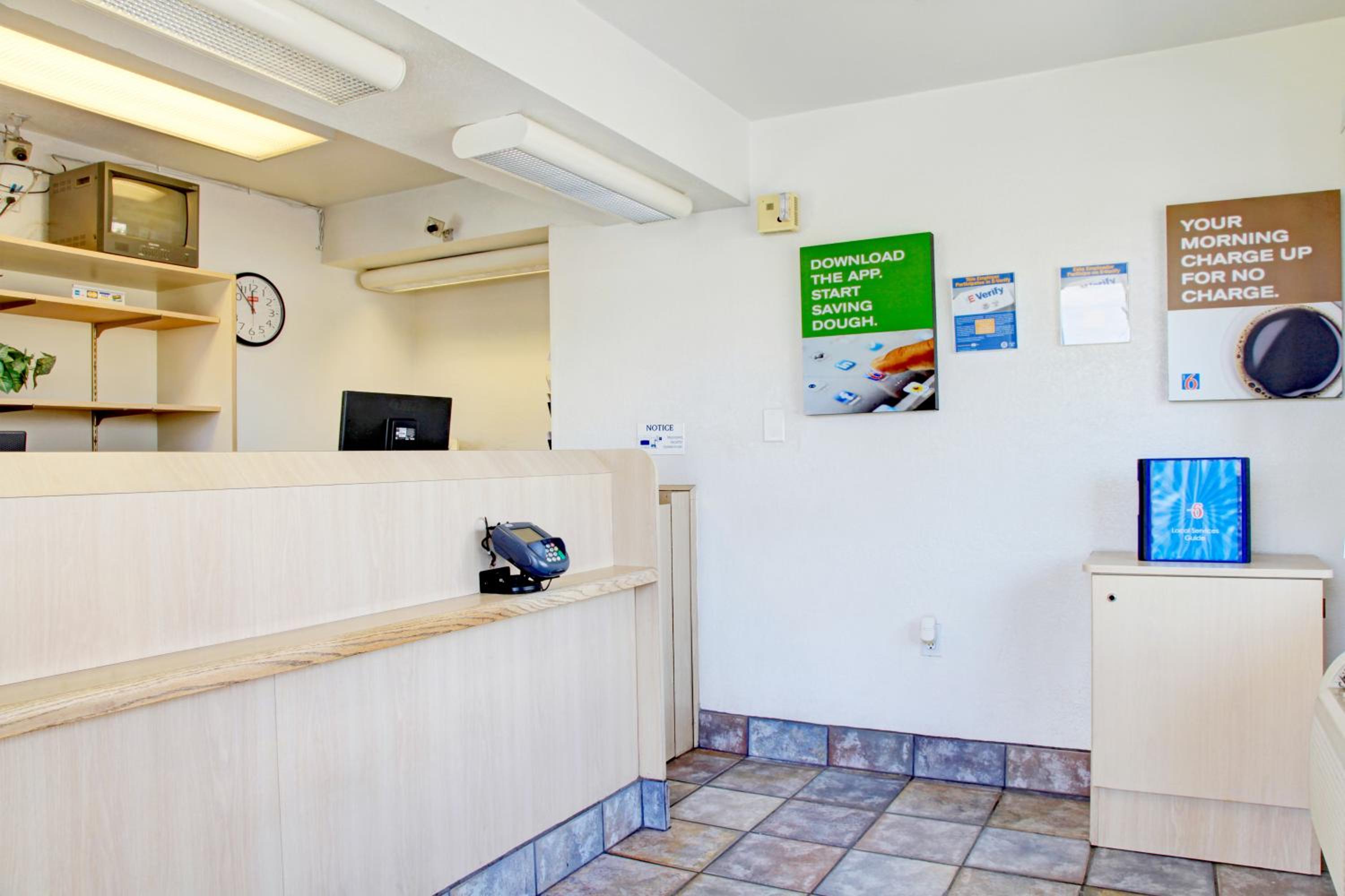 Let’s start with nobody was there at 430pm when I arrived to check in so we couldn’t shower before going out after 7 hour drive from LA, once we came back around 1130pm, again nobody around I had to wait another 5 mins, my sons bed was clean but had dirty sheets, the toilet bowl was clean but under the toilet seat it was dirty could’ve been urine ? It was yellow pretty nasty, the room didn’t even have a soap bar ? Is that normal for Motel 6 ?……. Let’s chat about the night life….. lots of drug users standing around the property I’m 6”2 and 230lbs pretty fit so is my son I was scared for my life on our 2nd night once we got back to motel 6 around 1a lots of criminal activity going on including 2 really scary men sitting on the stairs and wouldn’t move when I was trying to go my room……