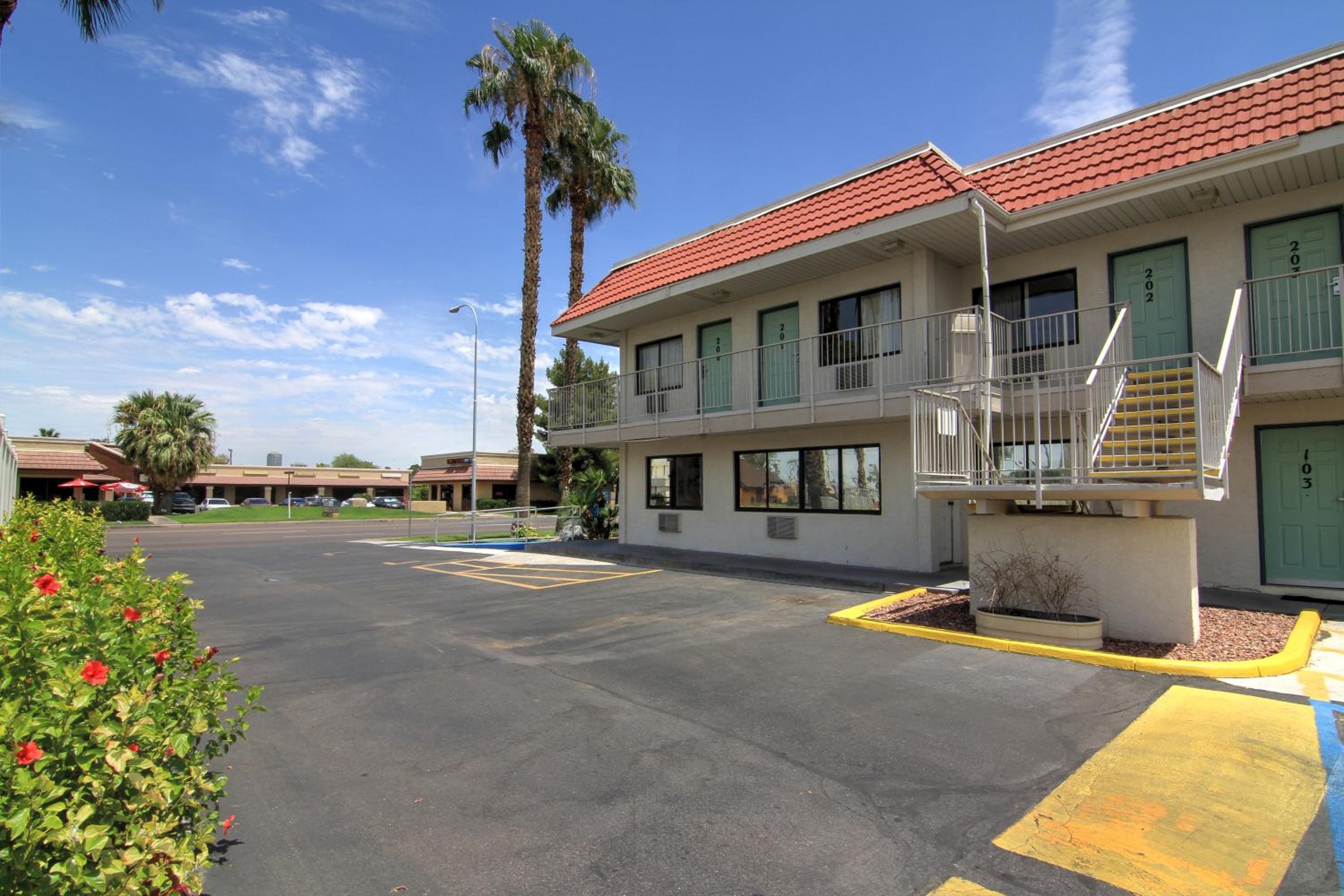 To enjoy a relaxing stay near Arizona State University, book your room at Motel 6 Phoenix Tempe - Broadway - ASU. With a heated outdoor pool, free guest parking, and vending machines on-site, your comfort and convenience are our top priorities. Each air-conditioned room features a cable TV, work desk, and an en suite bathroom, ensuring a comfortable and productive stay. Located just 6 miles from Sky Harbor International Airport and a short drive from US Airways Center, our motel is the perfect choice for travelers seeking convenience and comfort. Book now for an enjoyable stay in Phoenix Tempe!