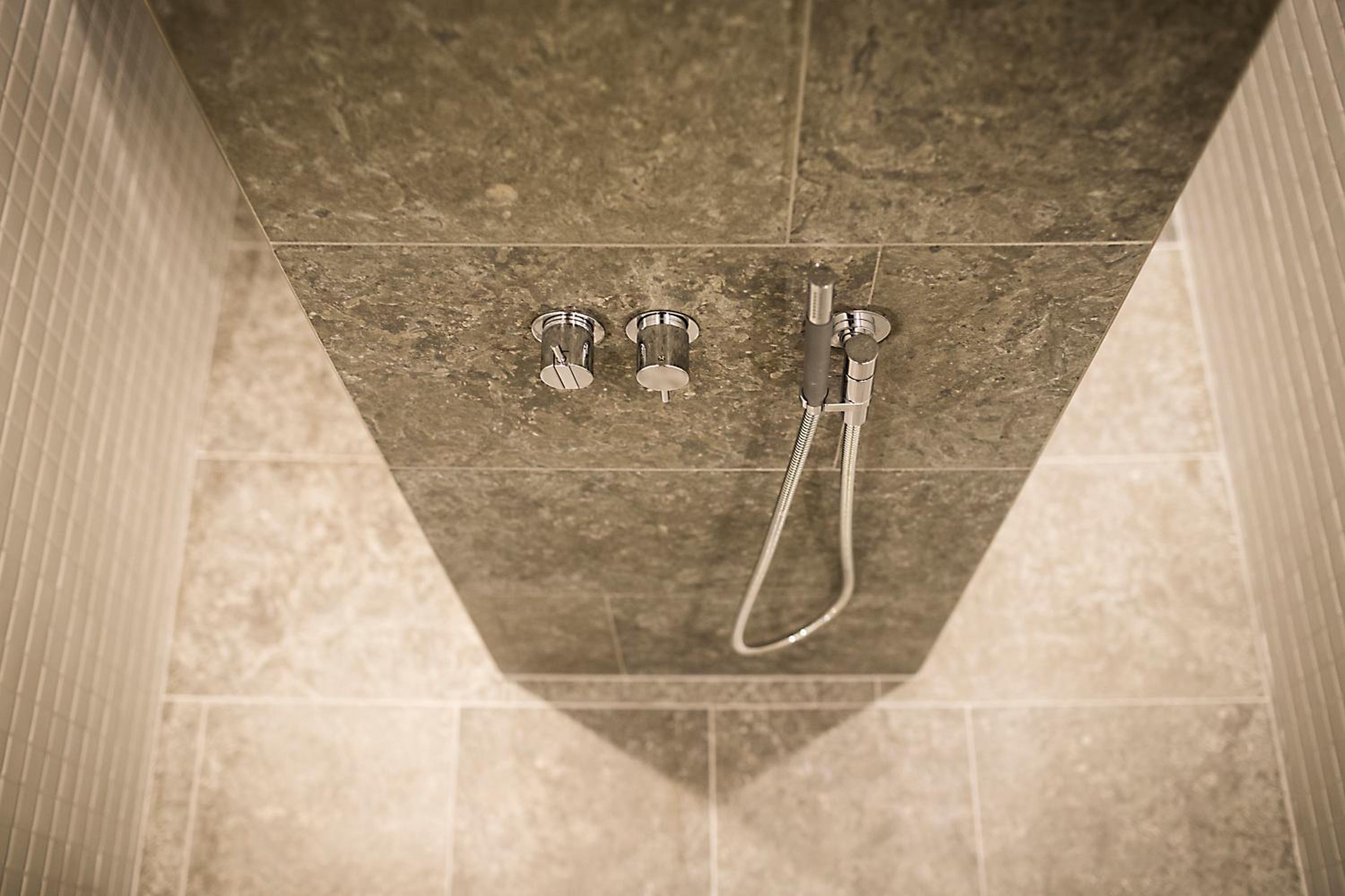 När man duschade utan att gå ned i badkaret, skvätte det rejält!