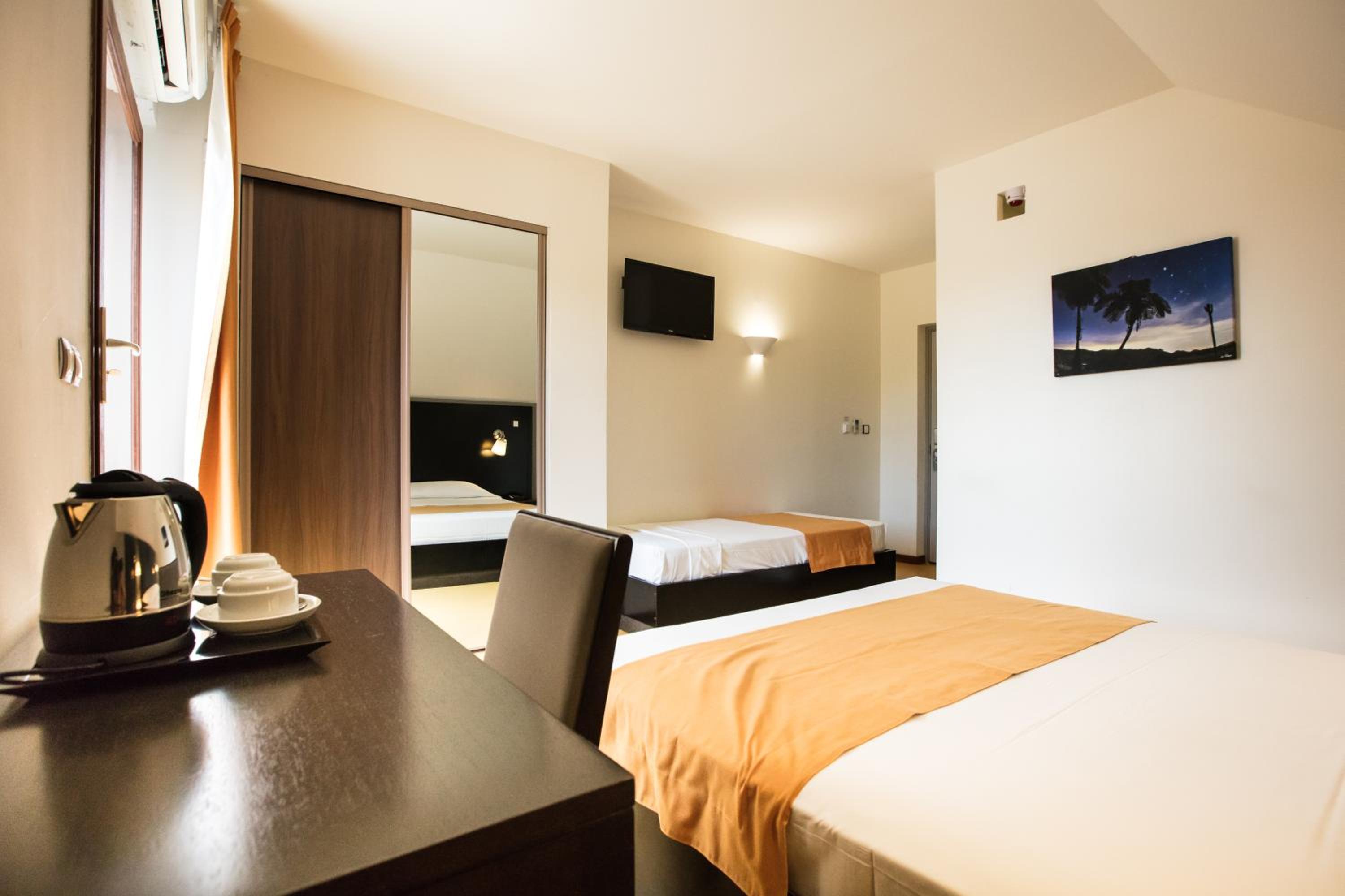 The Tama Hotel in Saint-Gilles les Bains offers modern rooms with air conditioning, free toiletries, and fully equipped kitchenettes in the studios. Enjoy a comfortable stay with a wardrobe, desk, and en suite bathrooms in each room.