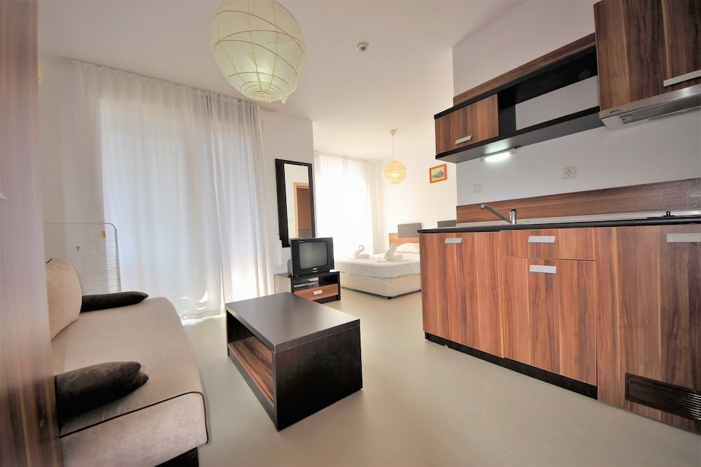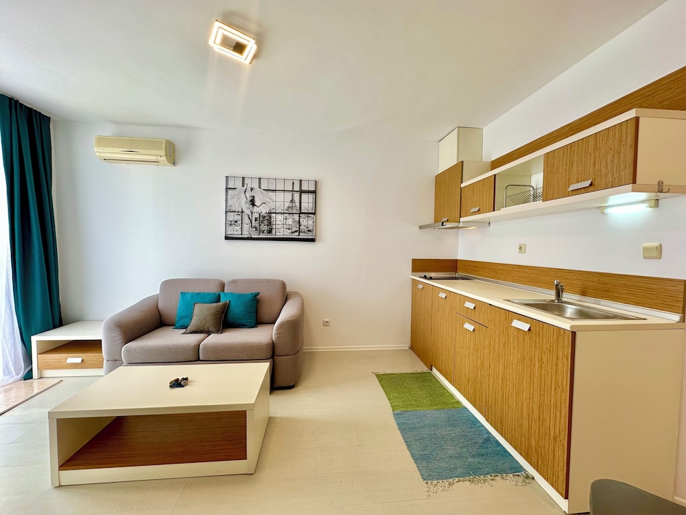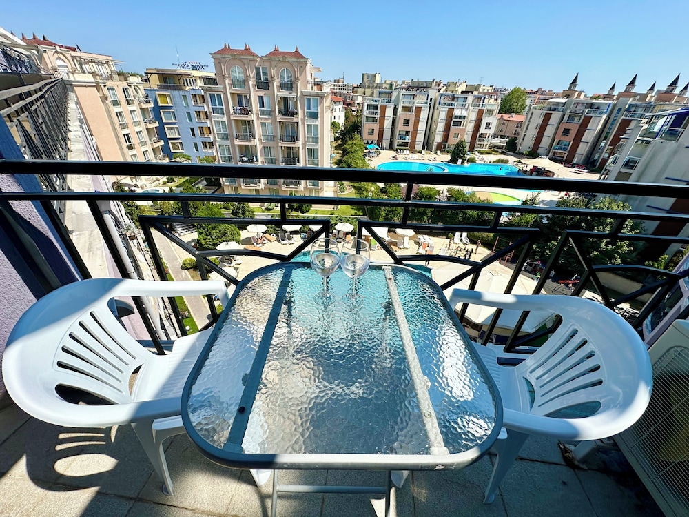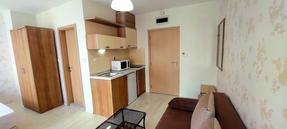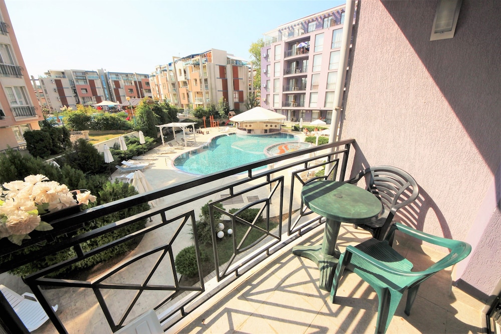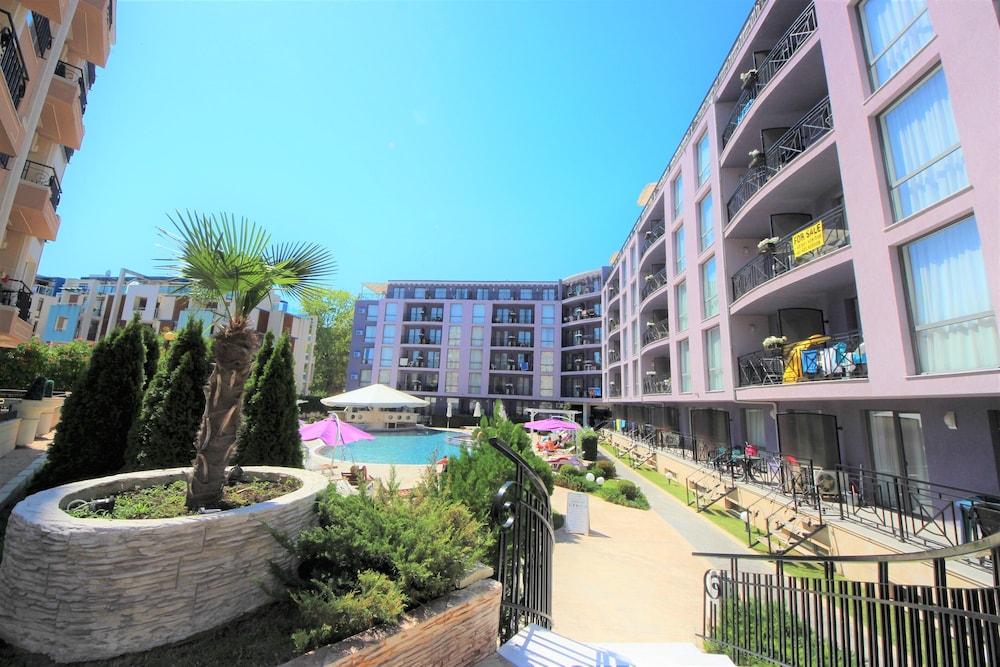 Fint boende med välskött poolområde. Dock långt från uthyrningskontoret vi incheckning och en bra bit från centrum av Sunny Beach