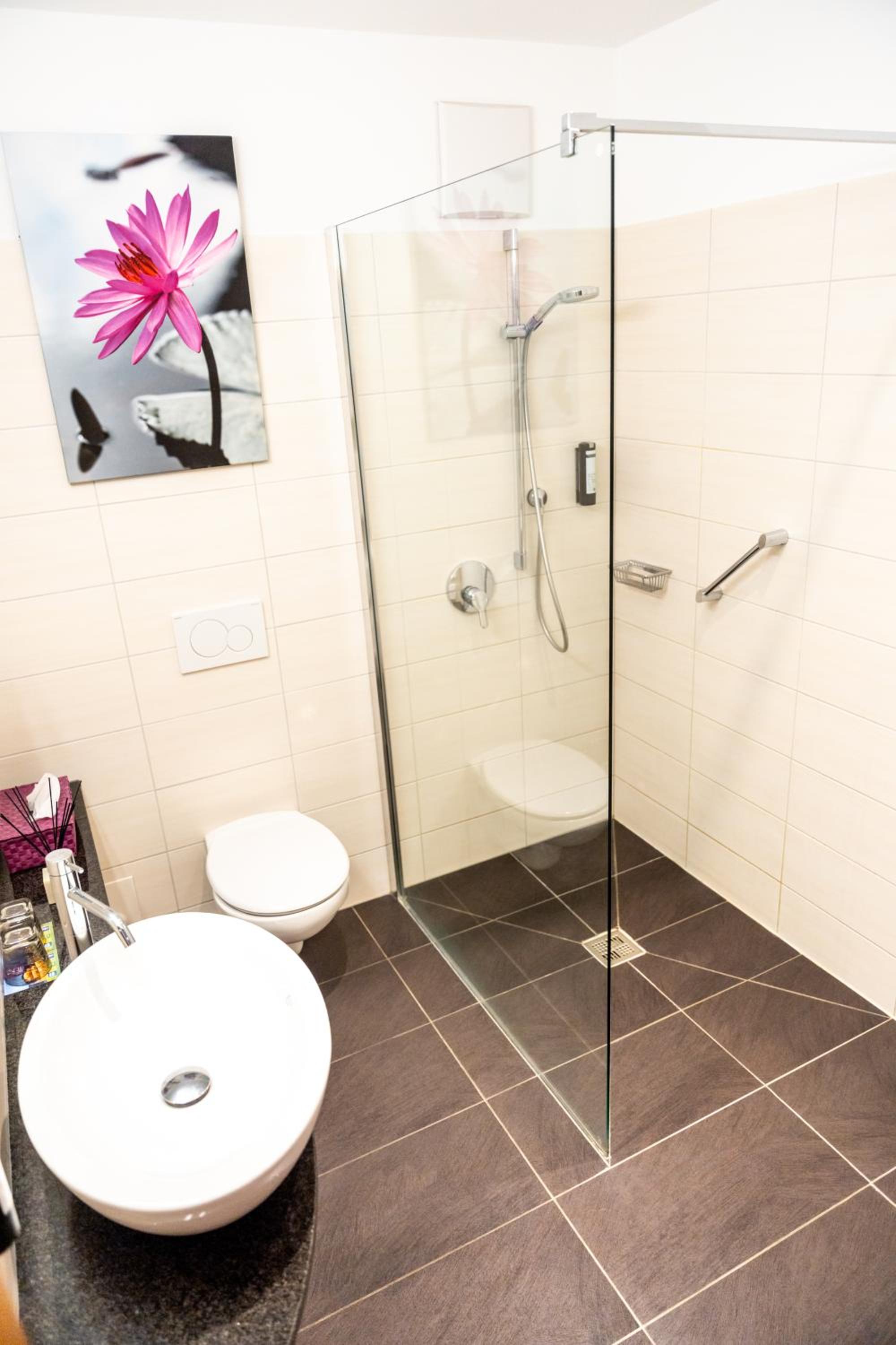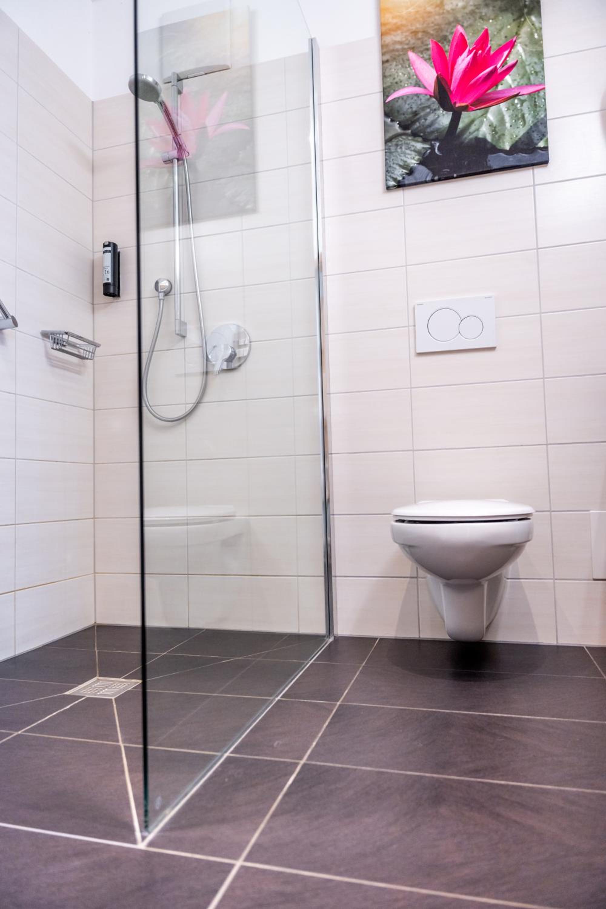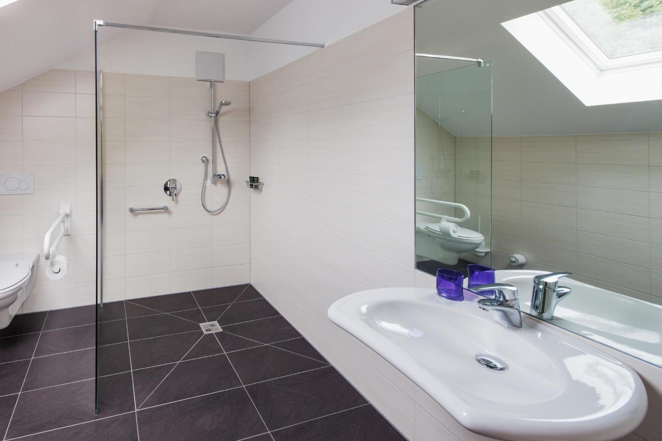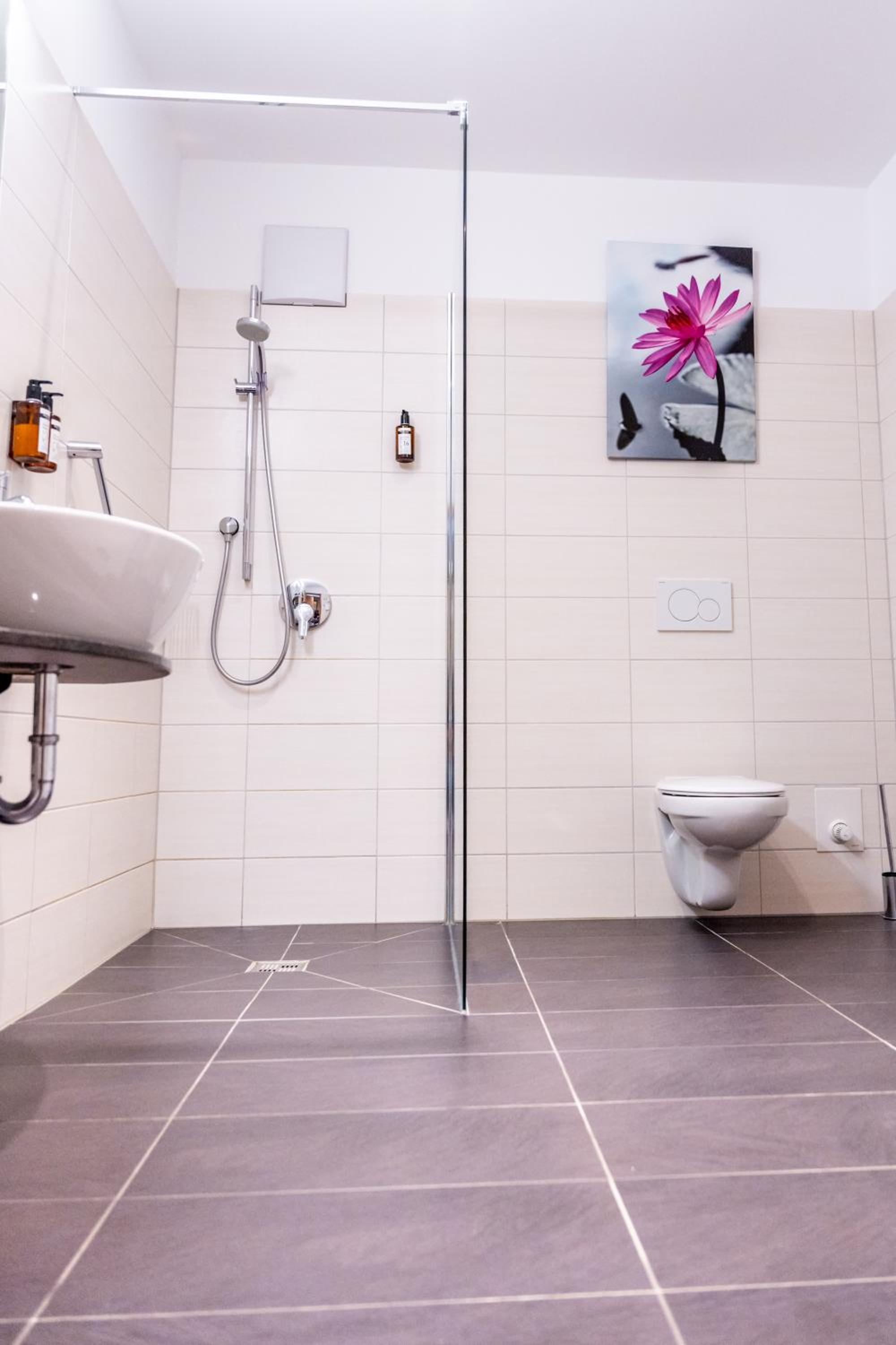 Die Dusche war meiner Meinung nach Fehlkonstruiert, das Wasser floss trotz aufpassen quer durch das Bad nach draußen. Das Gefälle zum Abfluss hat einfach nicht gepasst.