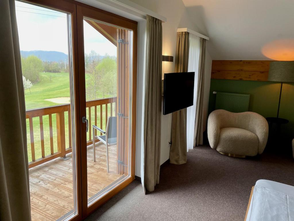 Sehr freundliches Personal, sehr saubere moderne Zimmer, sehr gutes Frühstück. Die Lage auf dem Berg am Golfplatz ist wunderbar ruhig und entspannt. Parkplätze vor dem Haus, Hund sehr willkommen.