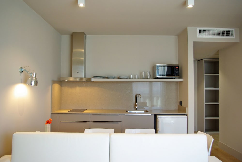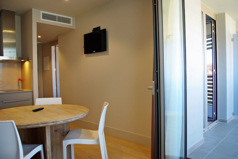 Would recommend to anyone looking to stay in the area. We would without a doubt stay here again. The room was very spacious including the bathroom. Kitchen was great and the bedroom was huge for a hotel!! The tapas in the restaurant were delicious and some of the best we tried honestly. Lastly there was tons of free parking all around the hotel for those of you who rent a car. We found it safe and quiet. The town centre is a short walk aways (around 10 min) where you will find shopping and dining!