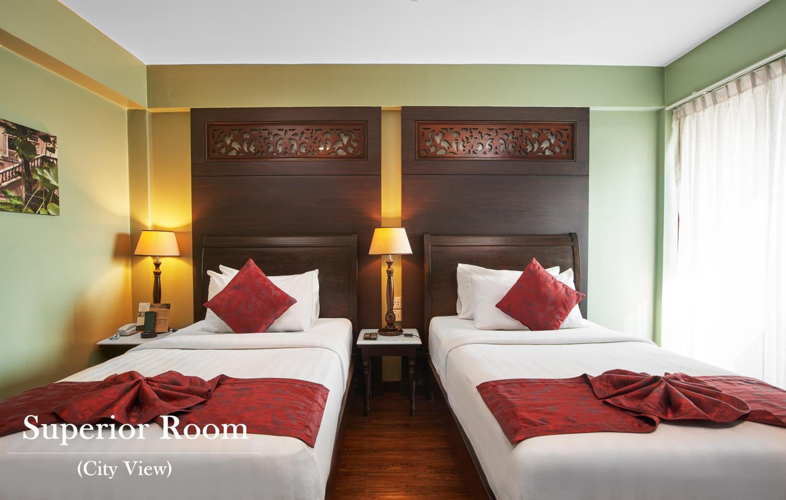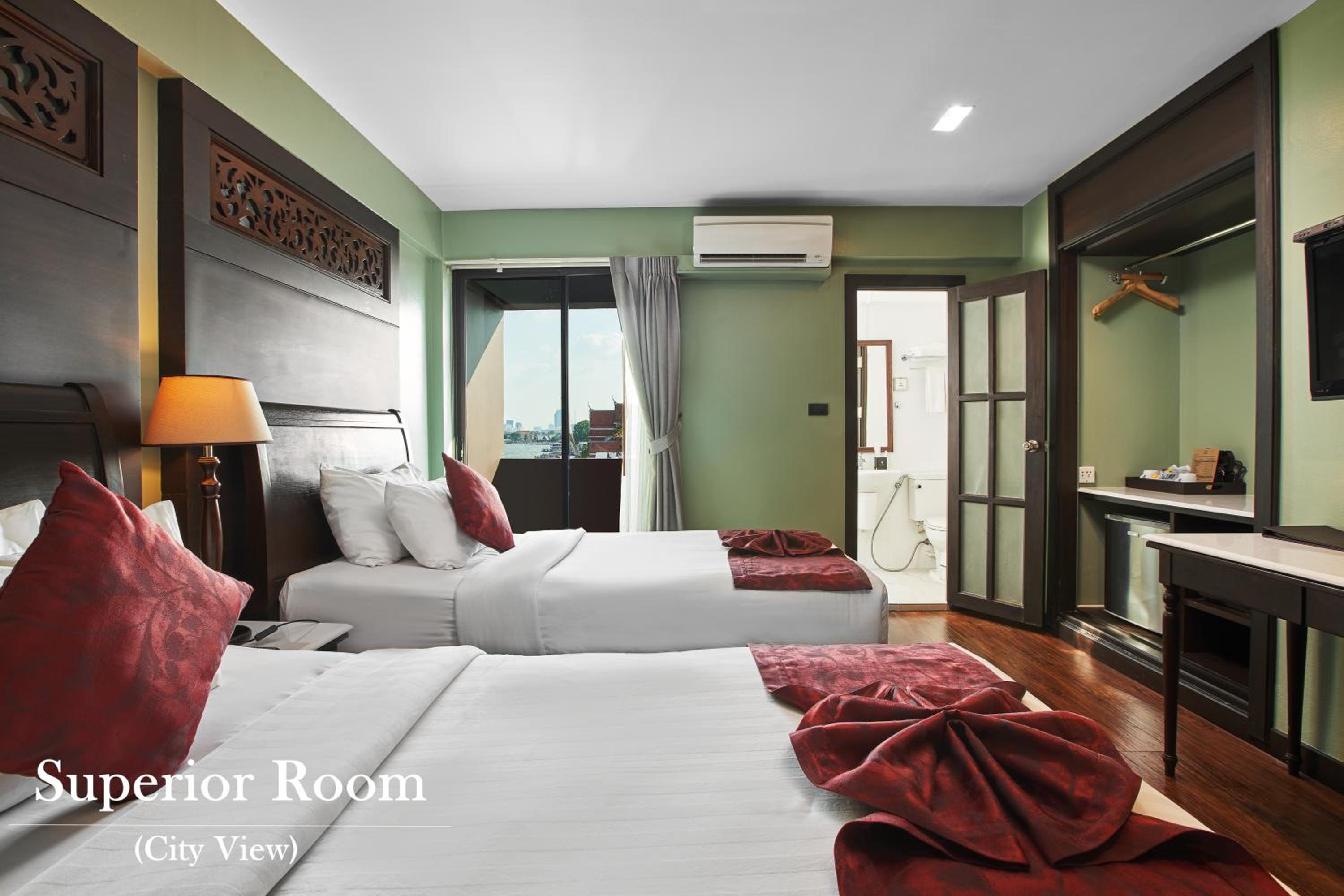 Beautiful hotel right at Wang Lang market and the river. Good restaurant where many local people go. Fine bar on the roof with fantastic views. It’s easy to take the boat to many touristic attractions. Friendly staff!