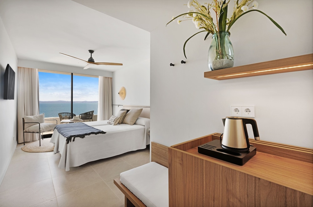 In a beautiful peaceful location lays this modern, tranquil hotel with exquisite sea views, great food & the best & friendliest staff ever. We’d booked a sea view room they all have balconies with modern style deckchairs. I think it’s a no smoking hotel but I did smell smoke from the outside bar ànd also on the balcony of my room a couple of times! The place was spotless thé maid service was wonderful. I also got taught some Spanish by them they worked so hard and were nothing but friendly & helpful