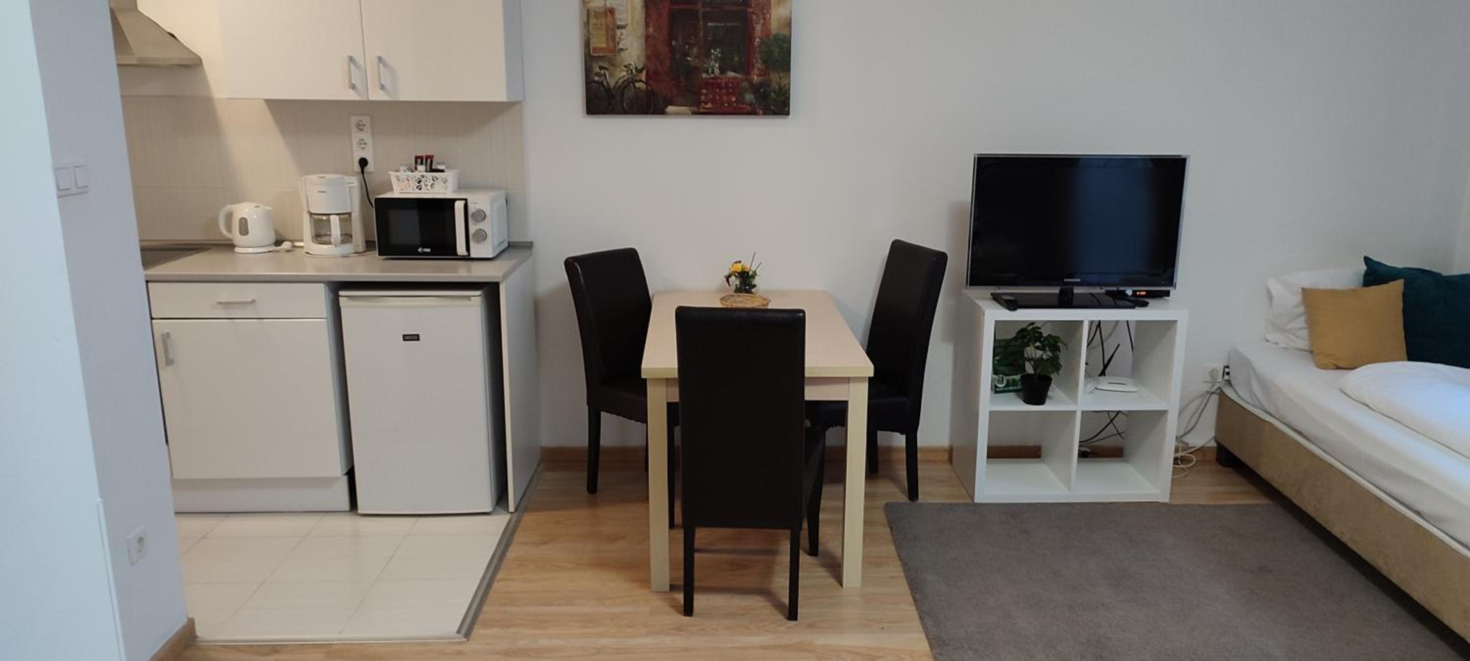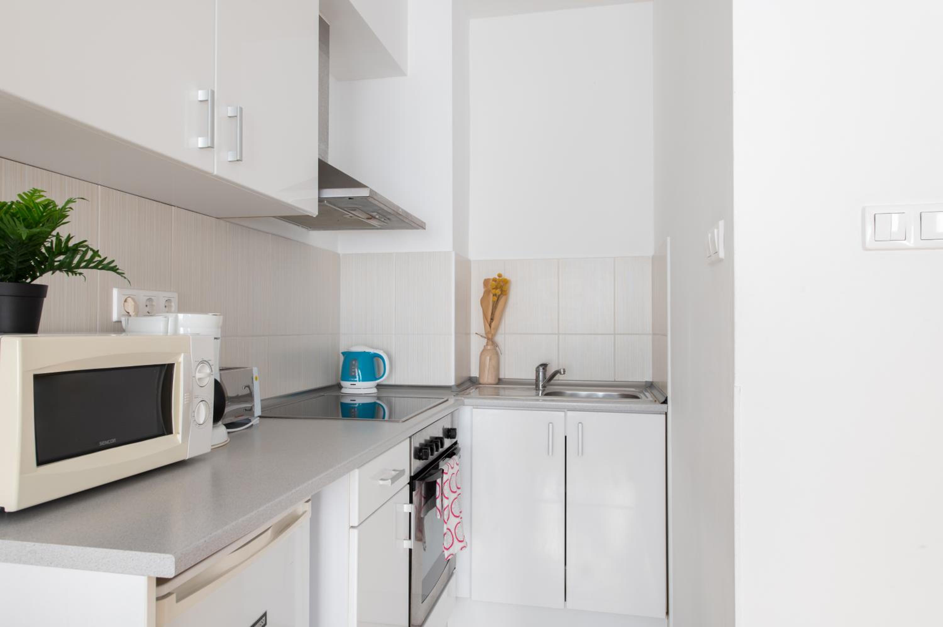 Prince Apartments in Budapest offers modern facilities and most apartments feature balconies with garden views. Enjoy a comfortable stay with amenities like a sofa bed, flat-screen TV, and a well-equipped kitchenette.