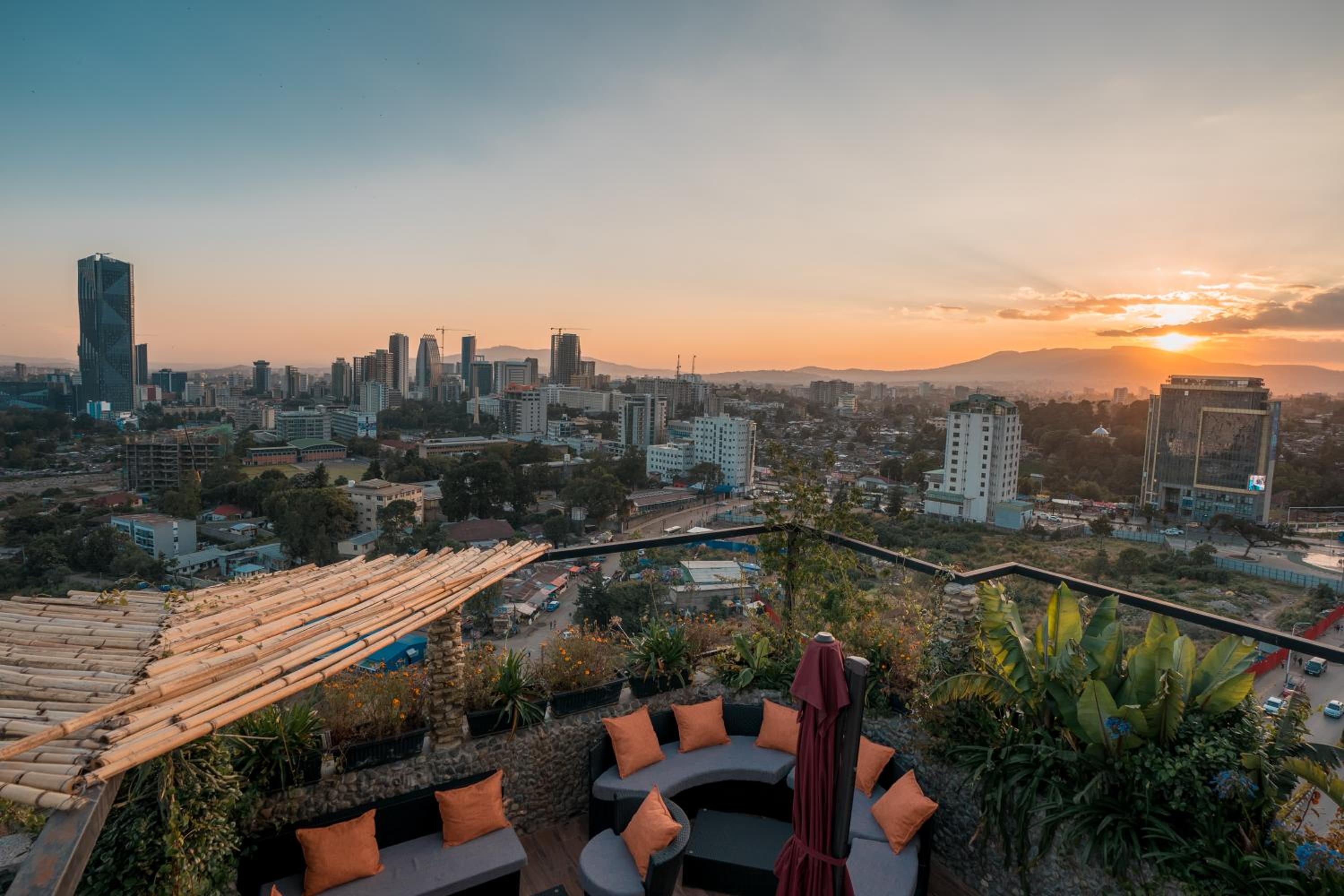 Excellent breakfast that combines foods from in and out of Ethiopia. An excellent view!