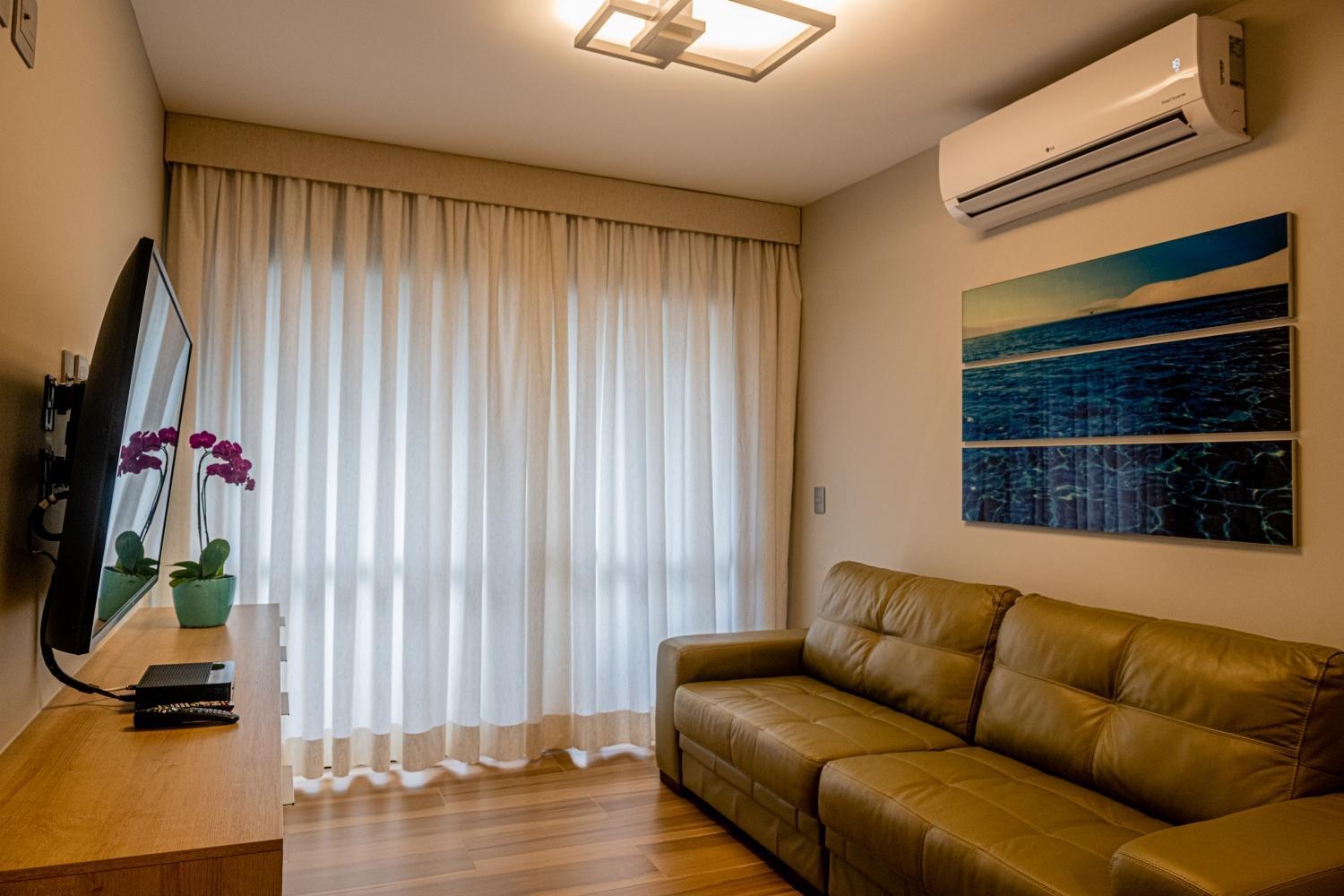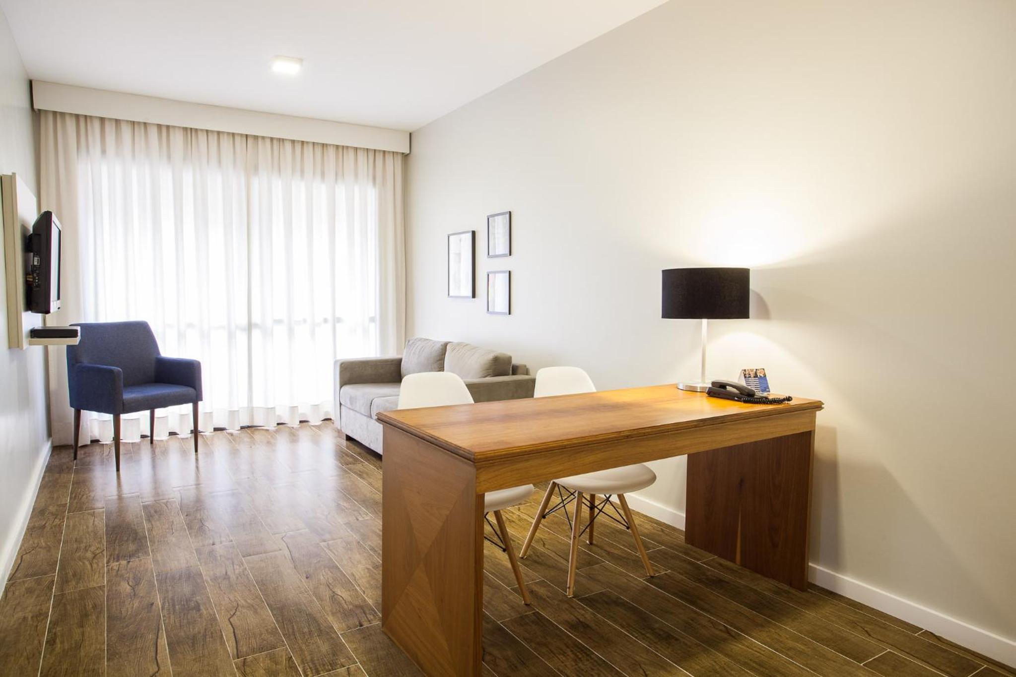 A localização é muito boa. A duas quadras da Paulista, próximo ao metrô e a vários restaurantes. Equipe bem atenciosa. Estacionamento pago terceirizado no local. Vista do centro de SP. Quarto simples com bom espaço. Sala, cozinha pequena, com frigobar e microondas. Ducha boa e quente. Ar condicionado no quarto.