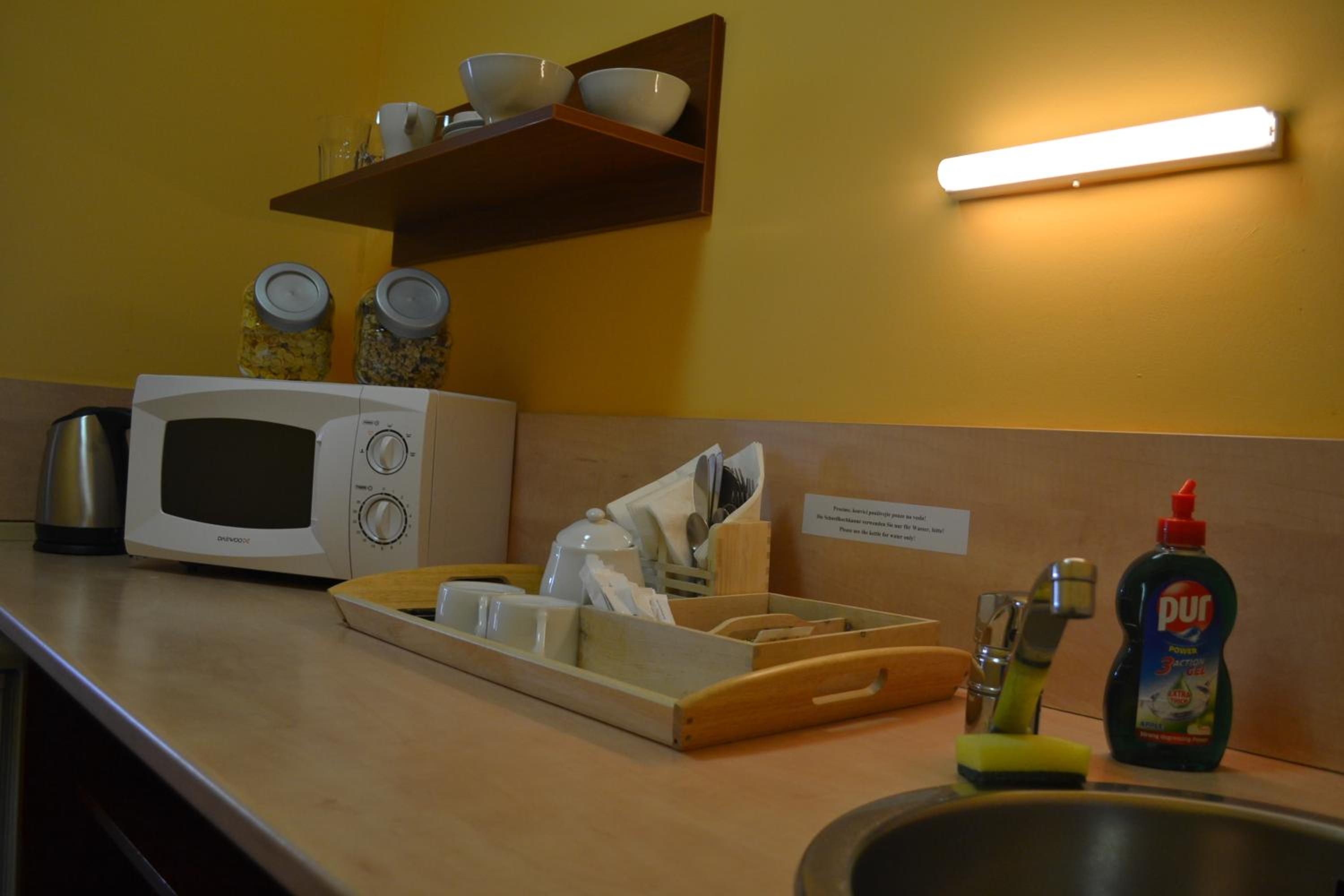 Raňajky na izbu boli fajn, ale po troch dňoch stále to isté a chýbali nápoje. Vodu sme dostali len pri príchode, potom už nedopĺňali. Na druhej strane, mali sme možnosť variť si čaj a instantnú kávu,ktoré boli k dispozícii stále.