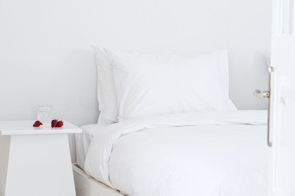 Athina and her husband are so welcoming and warm. They showed us everything we'd need for the island, helped us rent a car, and drove us to/from port to the hotel. You can walk into town from the hotel (though the street is a bit dark at night). There's a grocery store about a 2 min walk as well. Every morning you call the front office and let Athina what you'd like to have for breakfast and she handmakes it. Make sure to get the olive rolls, they are amazing! The Greek yogurt, eggs, fruit, etc are all from local farms. They were such lovely hosts. The room was large, small bathroom, comfortable beds. Very quiet.