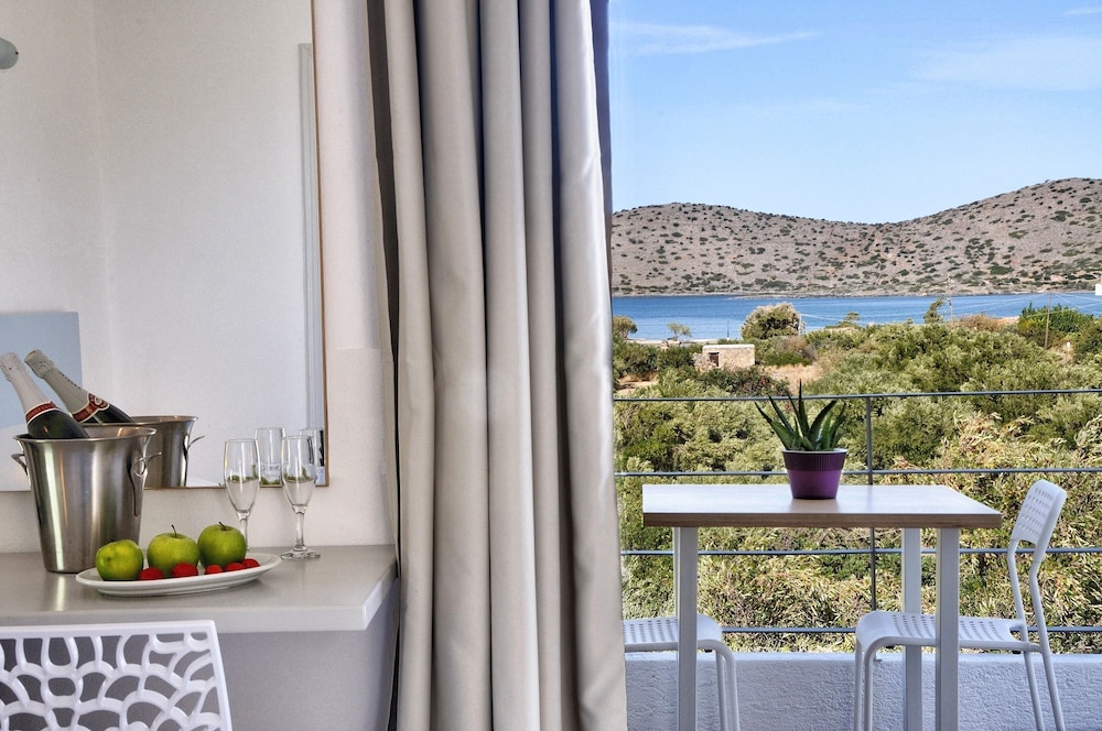 A bit tired. Small bathroom and bedroom, balcony looks over the generous pool, buffet breakfast was passable. No lift - our room was on top floor. Good spot to visit Spinalonga leper island by boat. Good restaurant selections in Elounda but you need to drive there from the hotel.