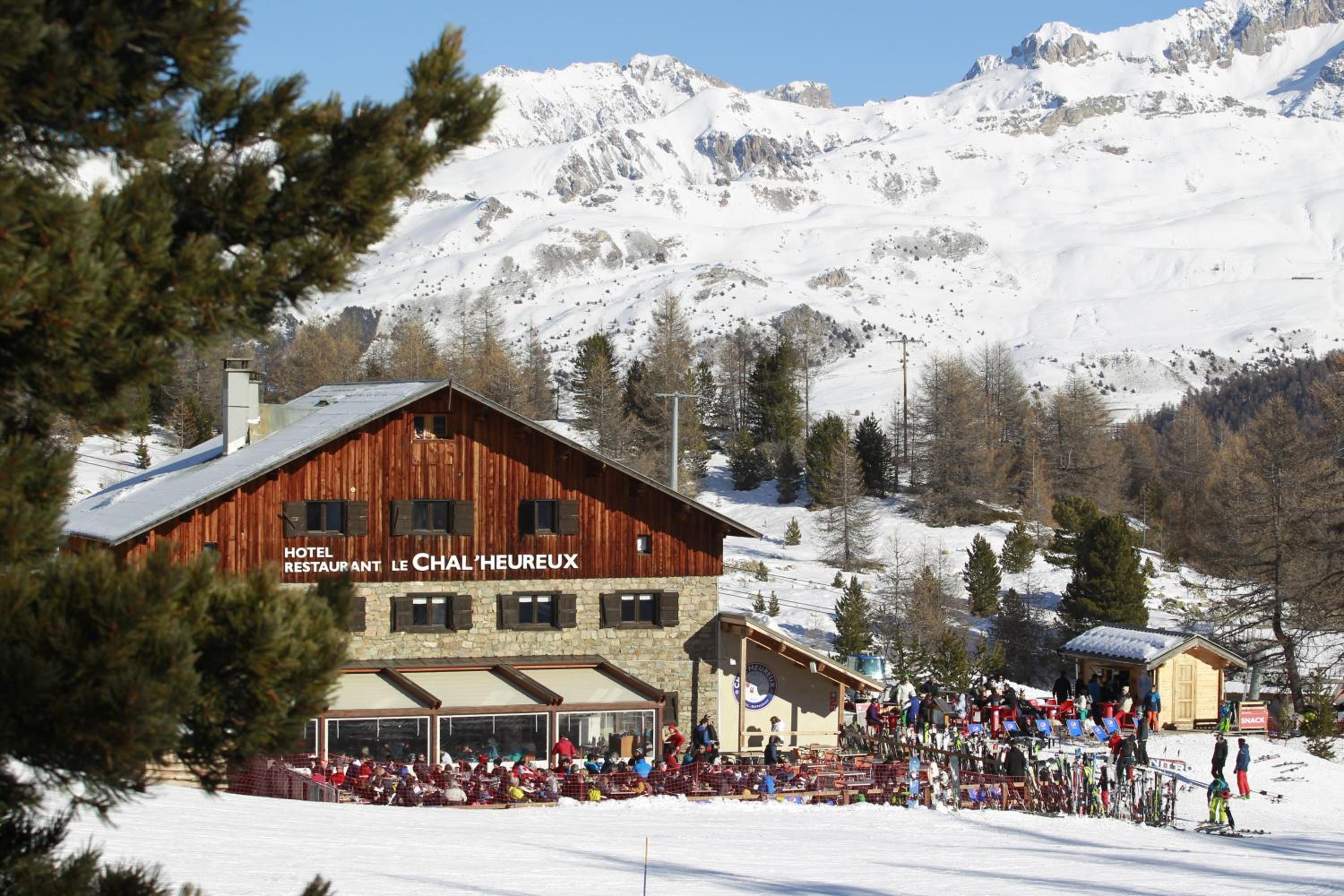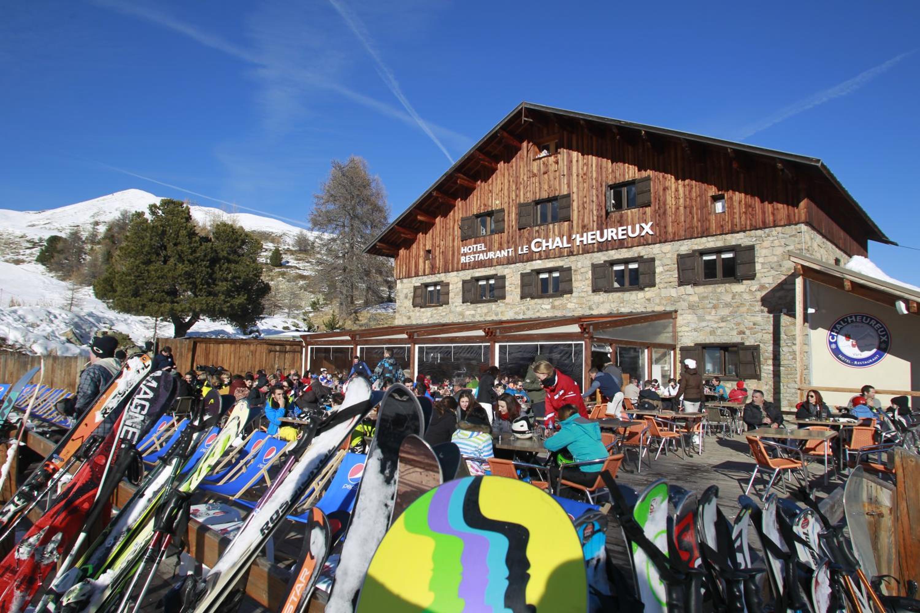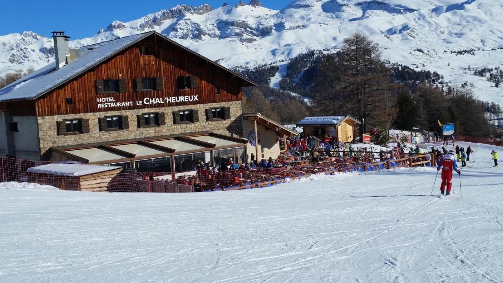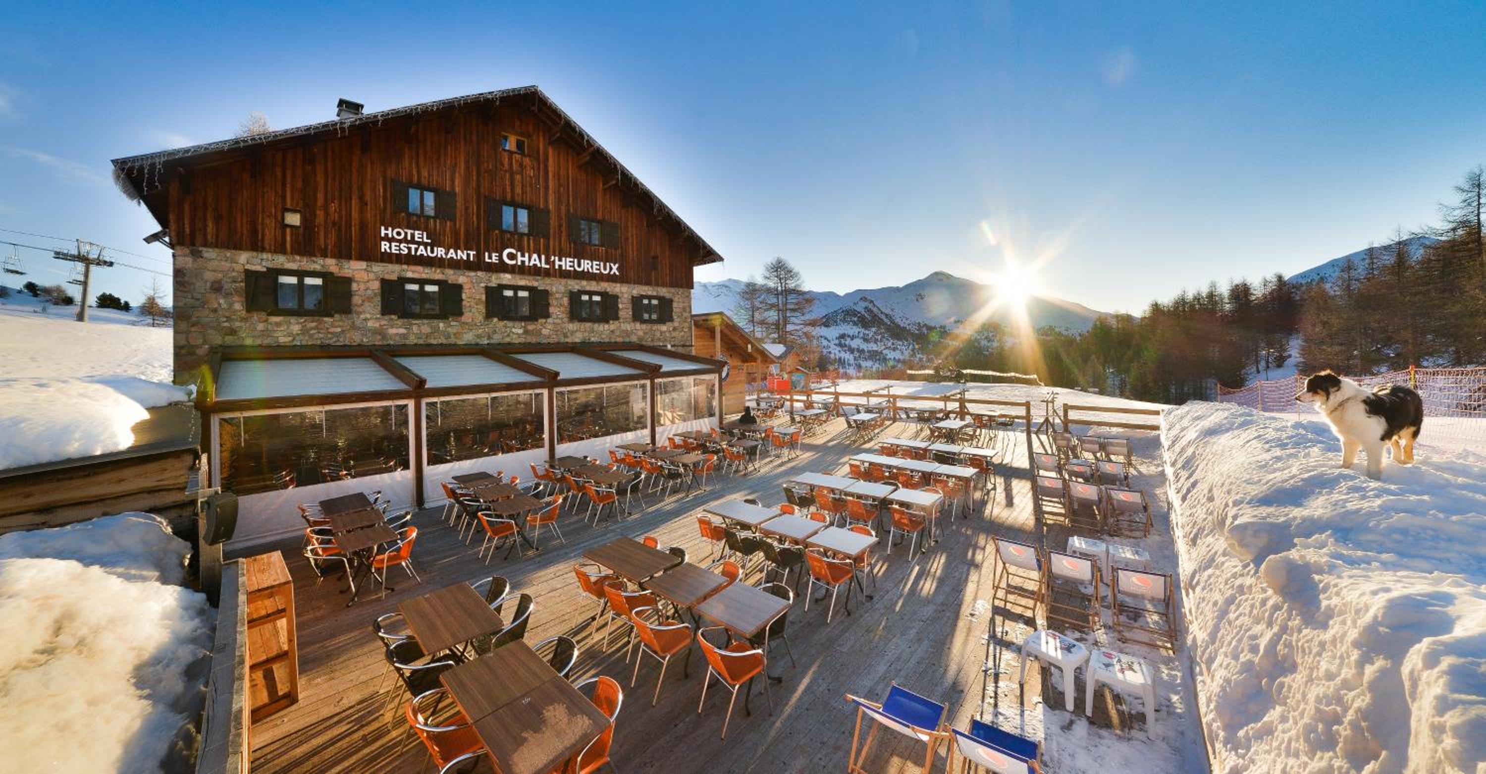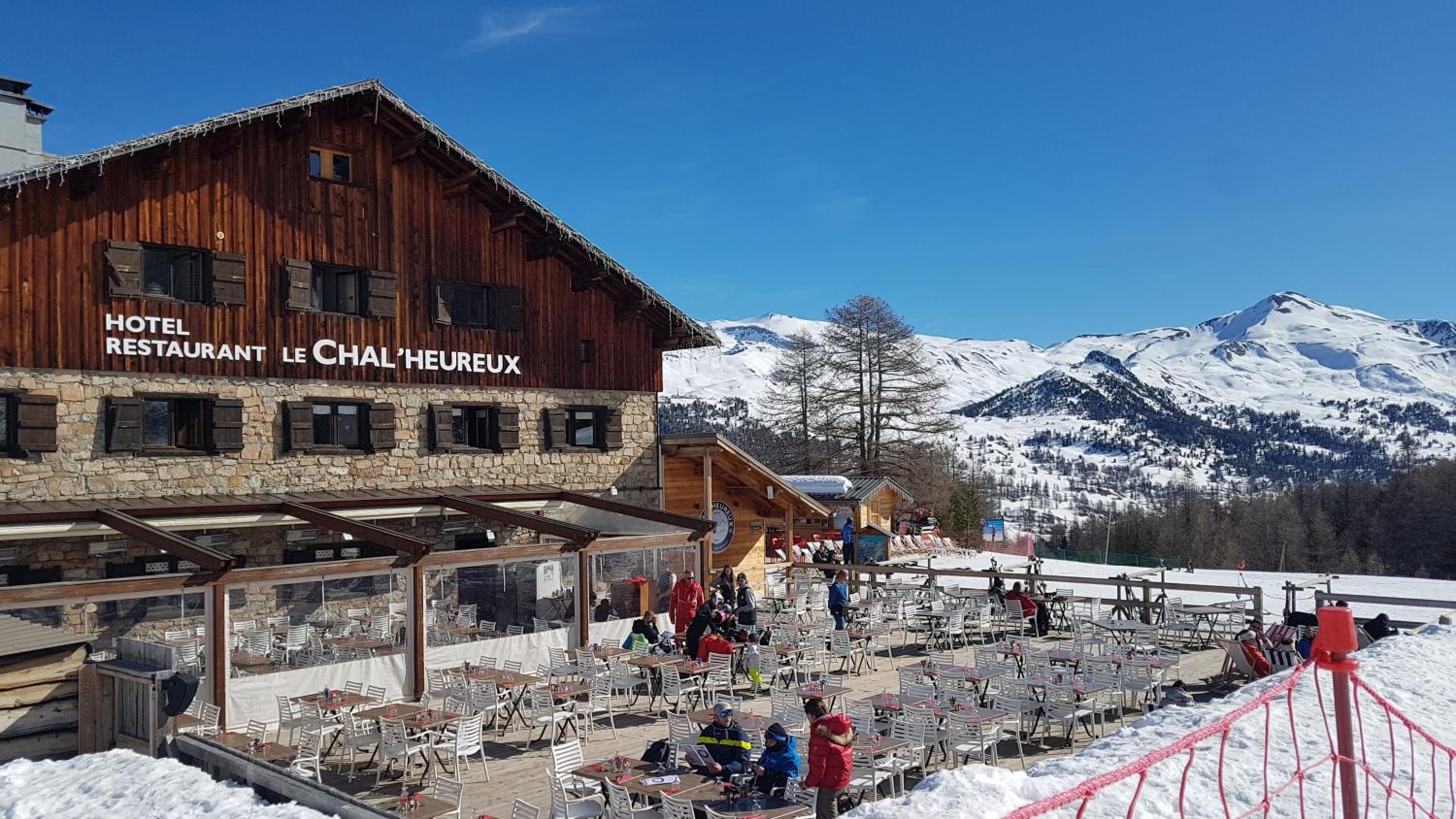 Hotel restaurant le Chal'heureux, nestled in Vars ski resort domain at 2100 metres, provides convenient ski-to-door access. The heated terrace and panoramic mountain views from the restaurant offer a picturesque dining experience.