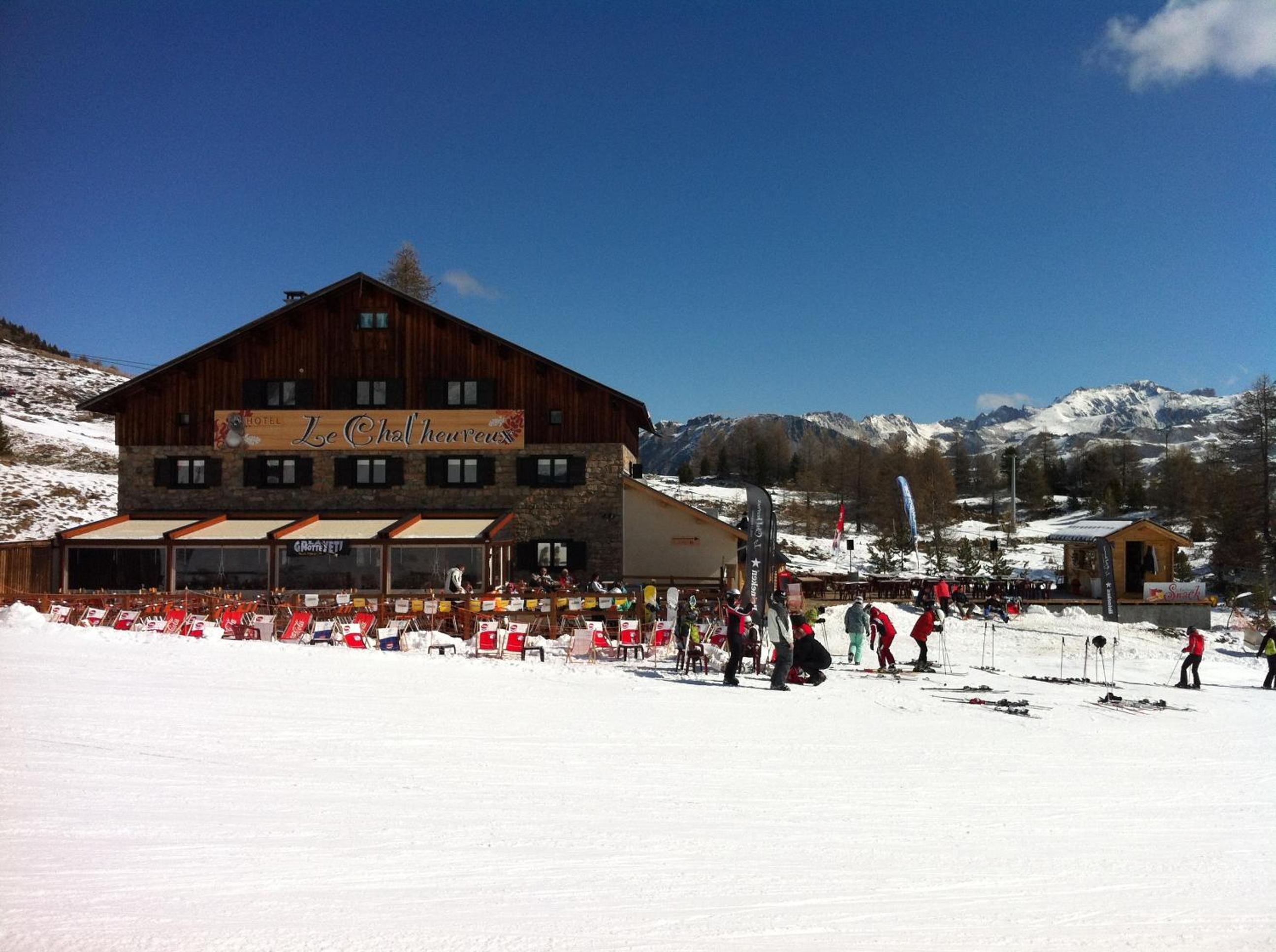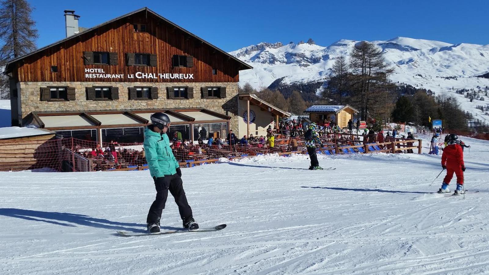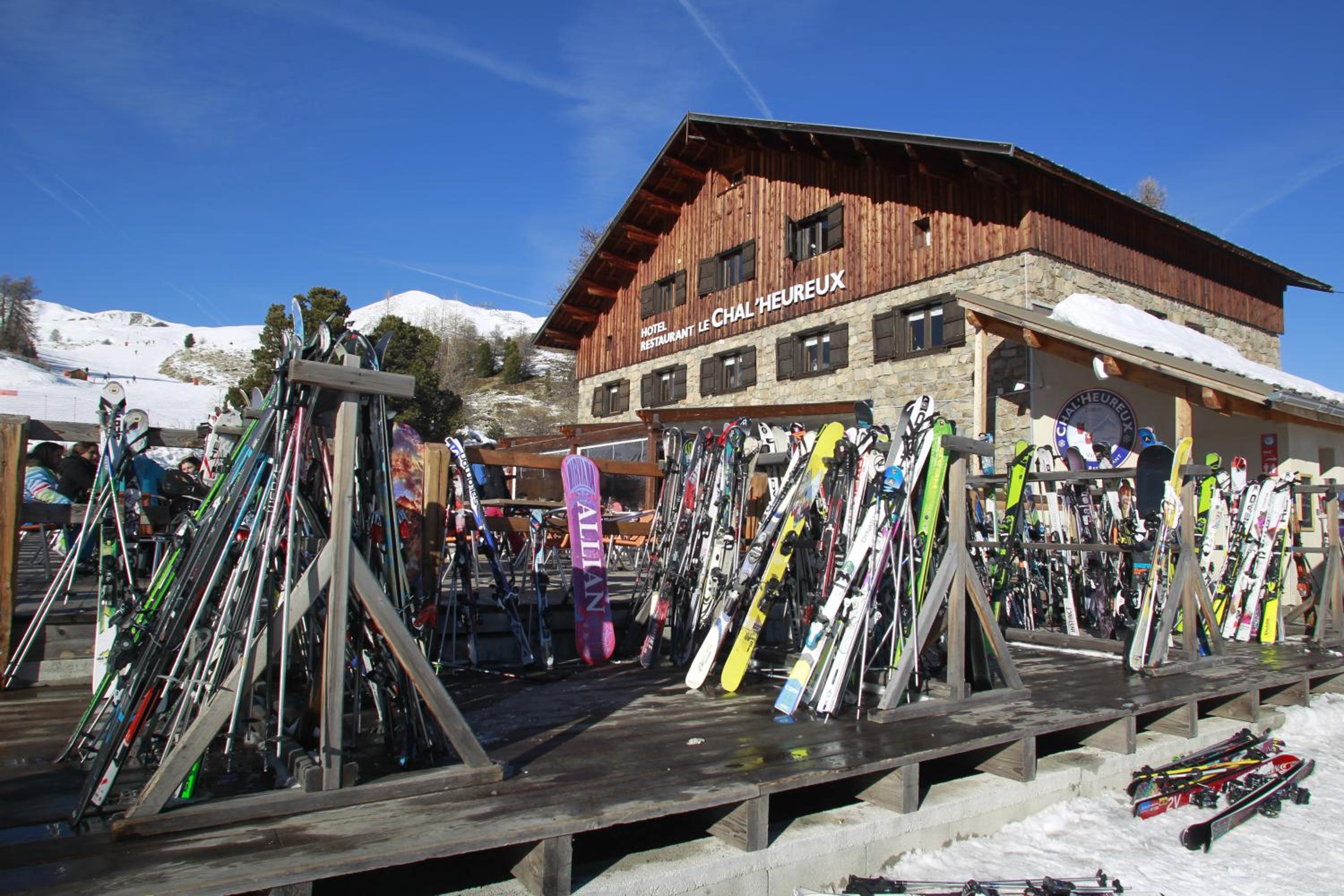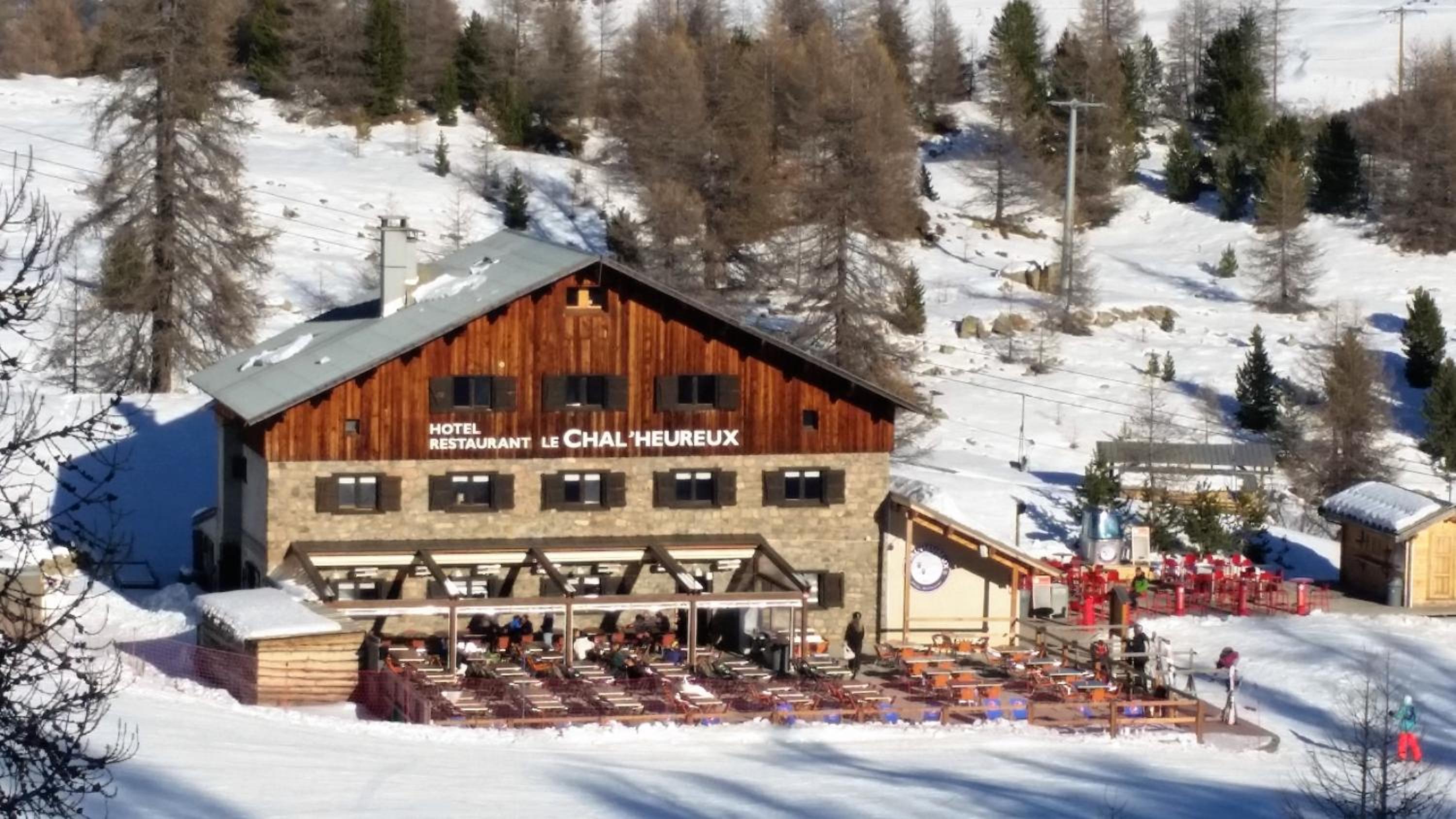 Hotel restaurant le Chal'heureux, nestled in Vars ski resort domain at 2100 metres, provides convenient ski-to-door access. The heated terrace and panoramic mountain views from the restaurant offer a picturesque dining experience.