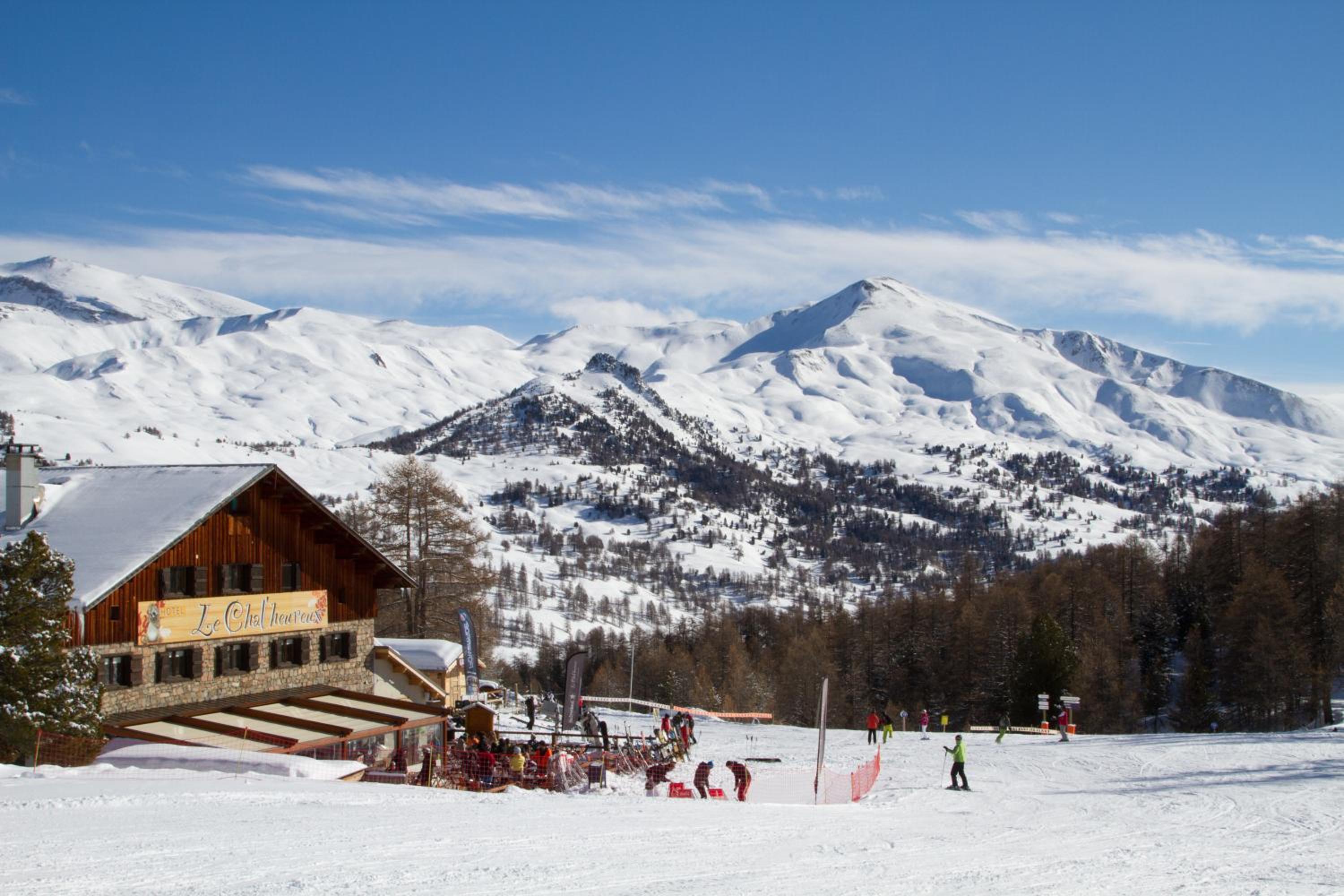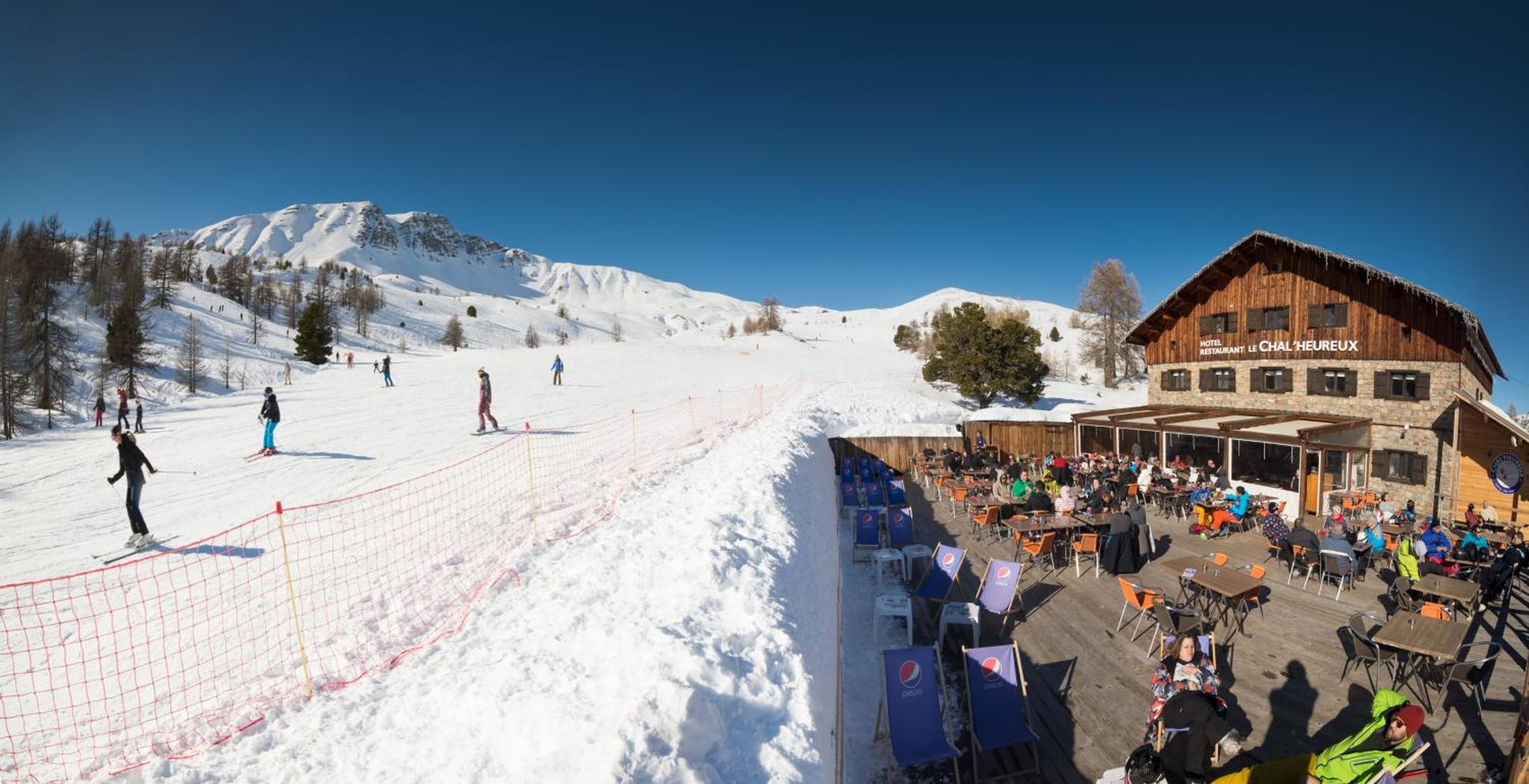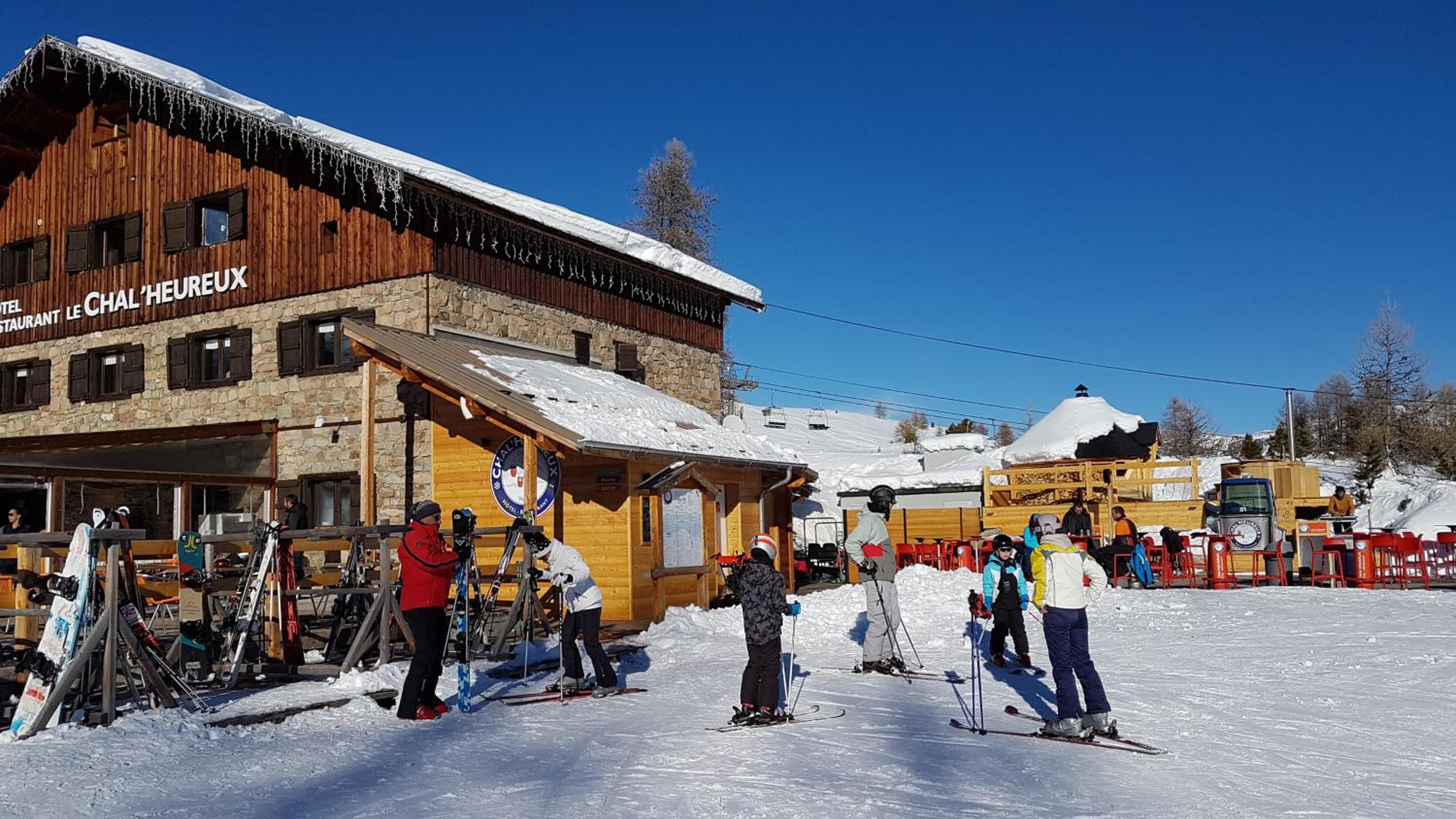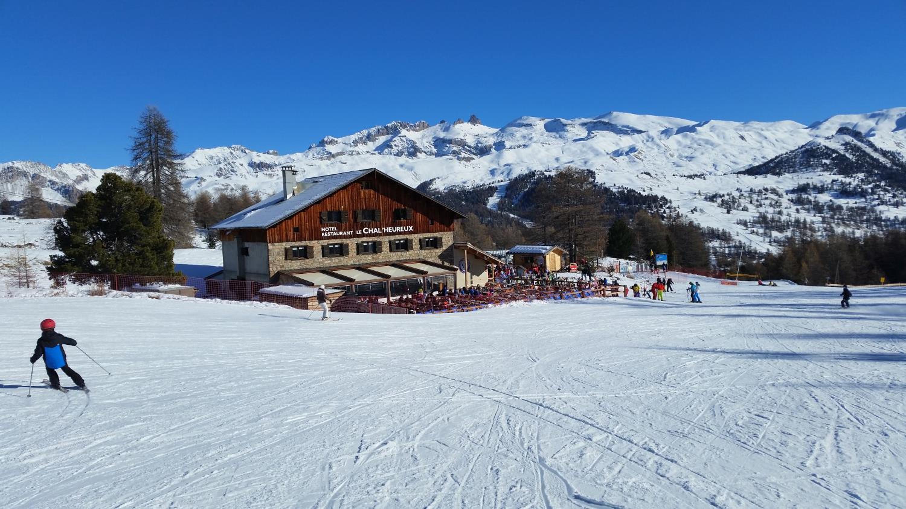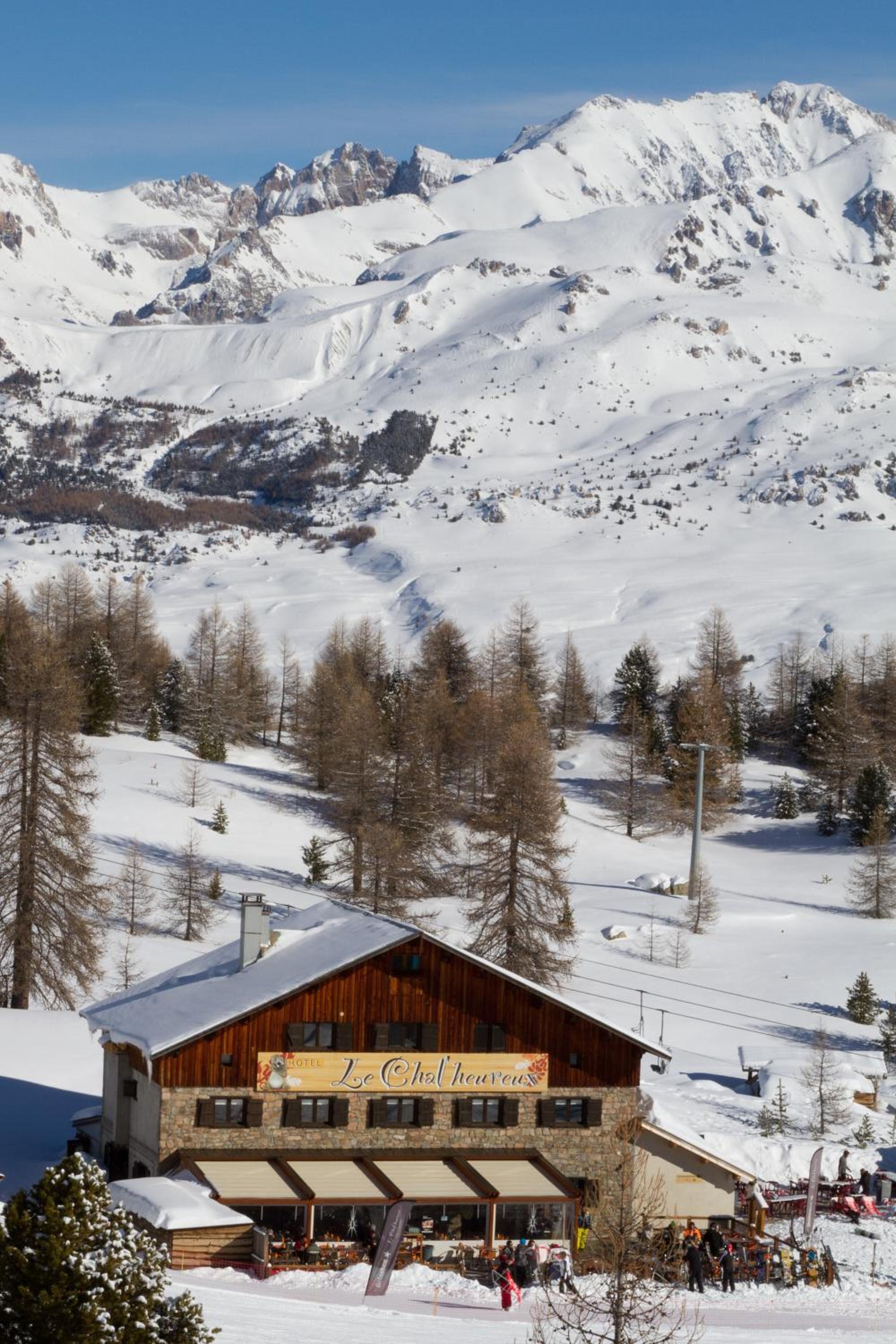 Hotel restaurant le Chal'heureux, nestled in Vars ski resort domain at 2100 metres, provides convenient ski-to-door access. The heated terrace and panoramic mountain views from the restaurant offer a picturesque dining experience.