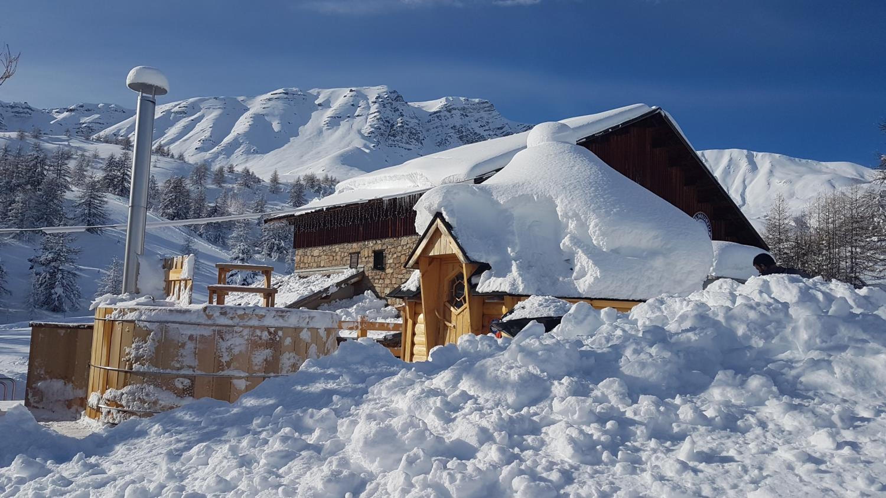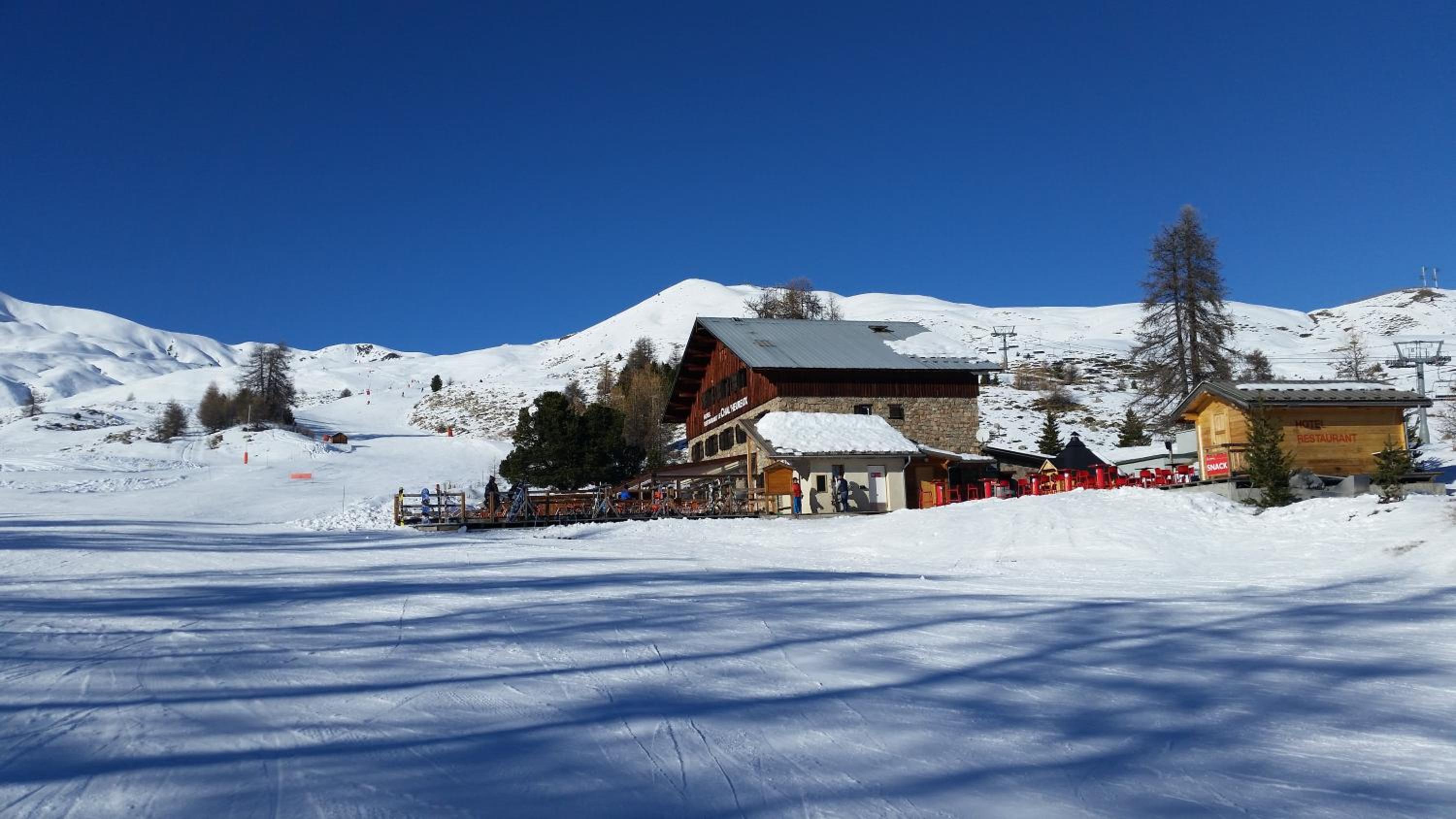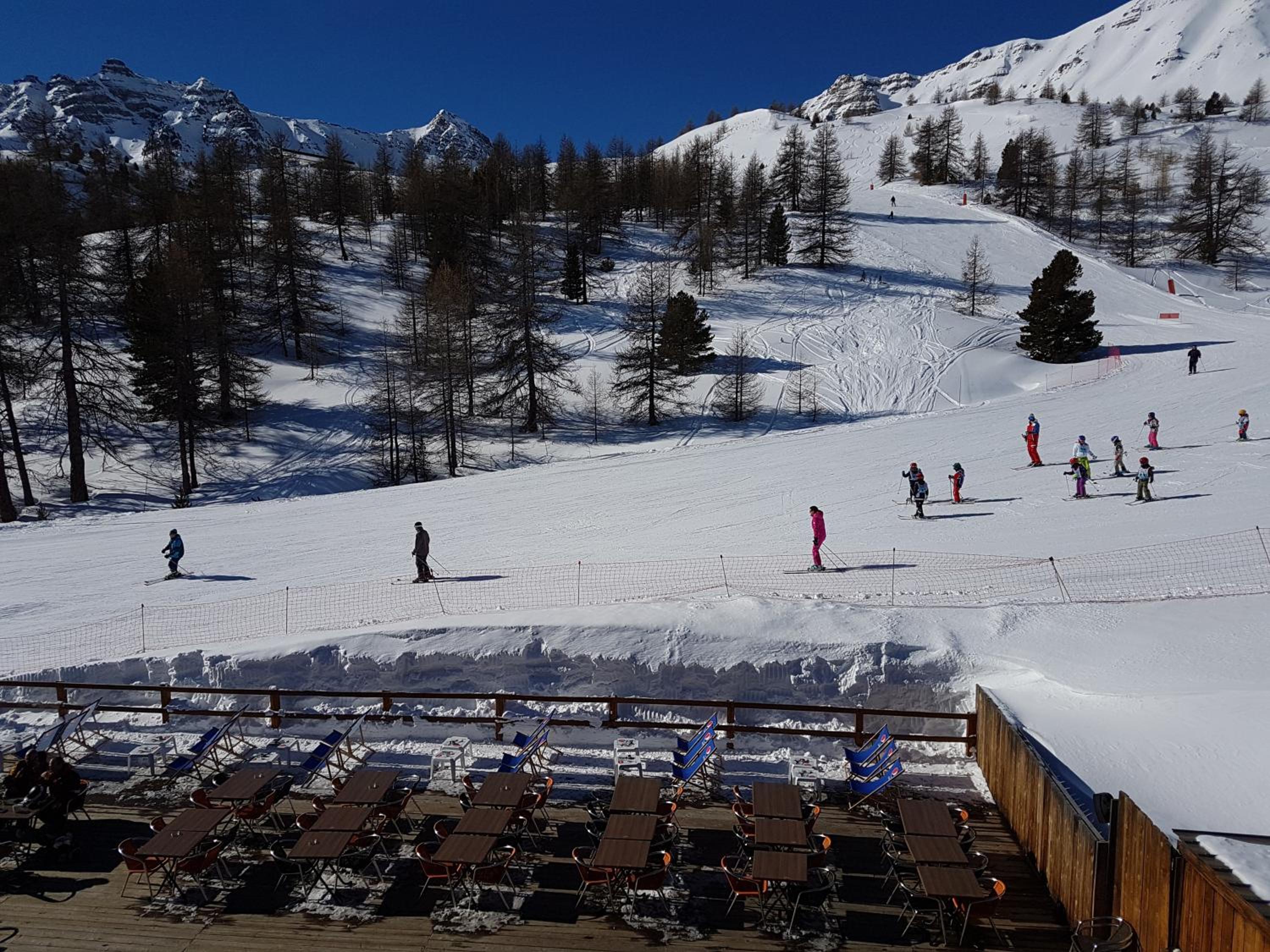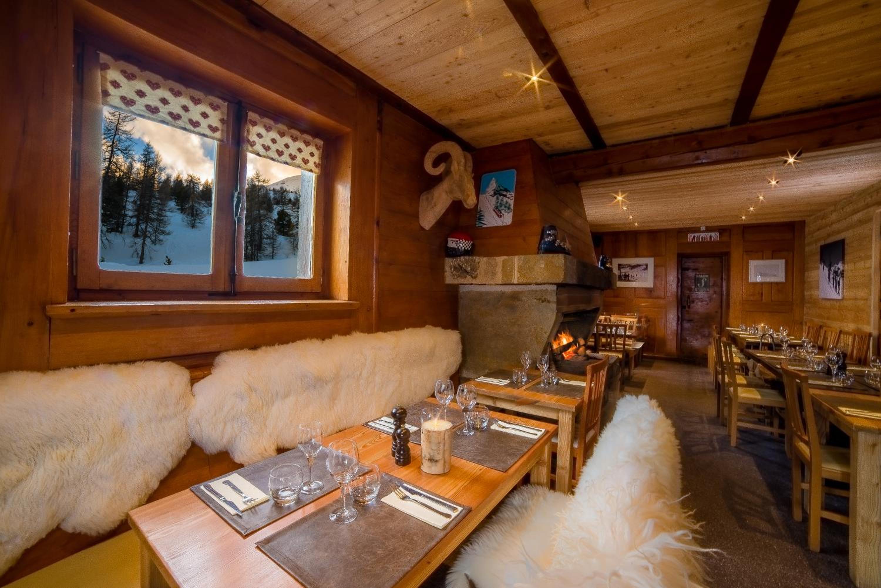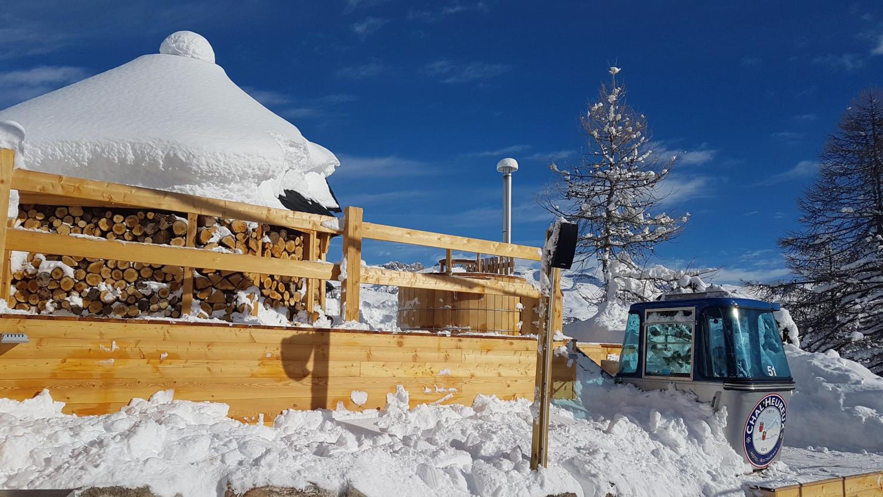 Hotel restaurant le Chal'heureux, nestled in Vars ski resort domain at 2100 metres, provides convenient ski-to-door access. The heated terrace and panoramic mountain views from the restaurant offer a picturesque dining experience.