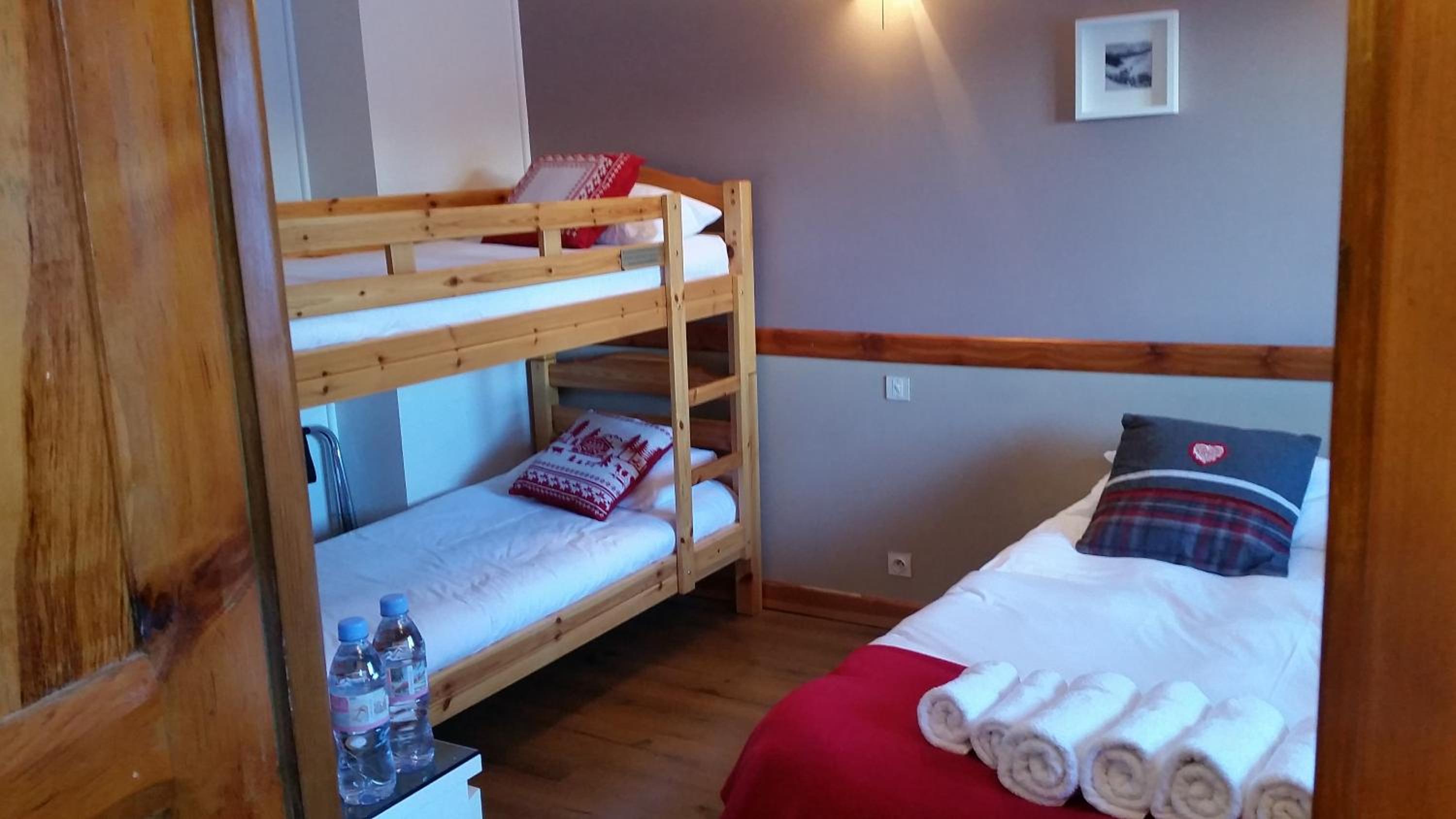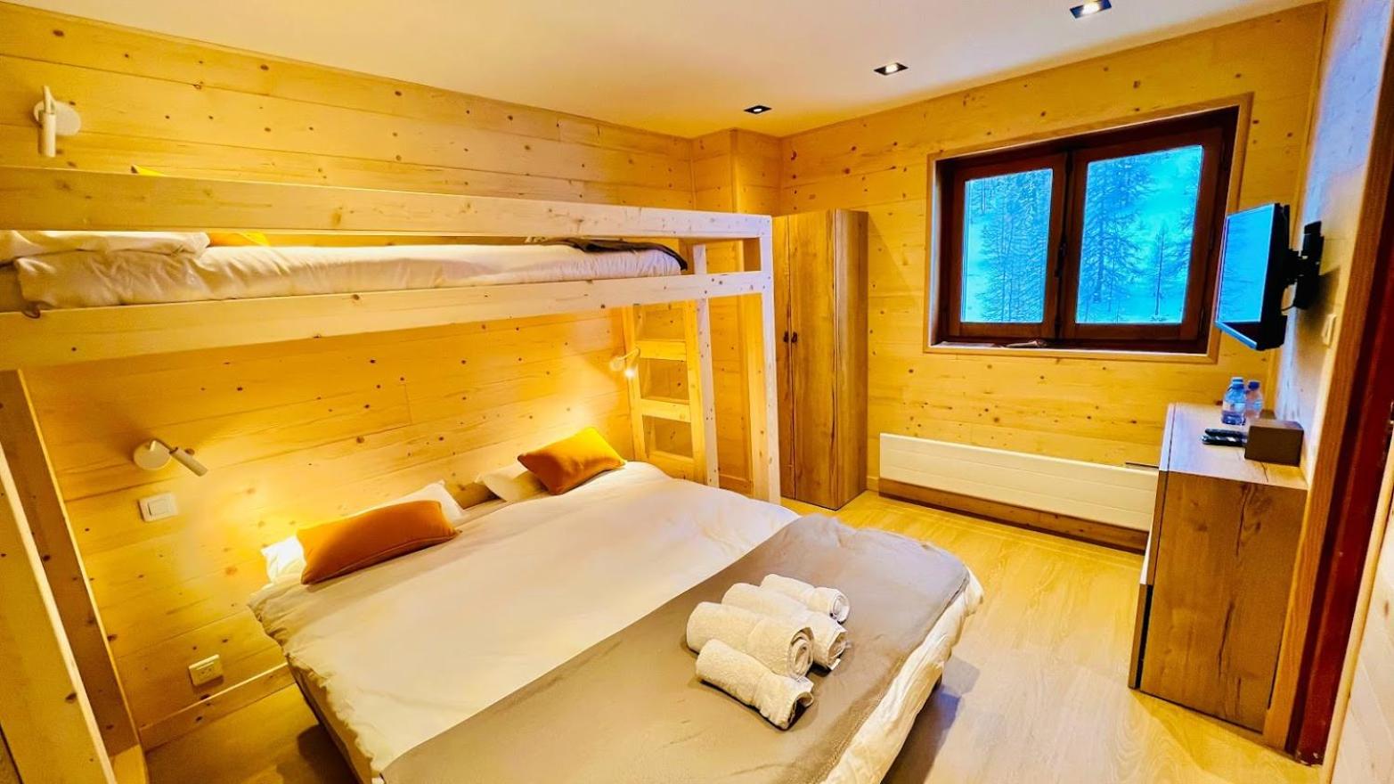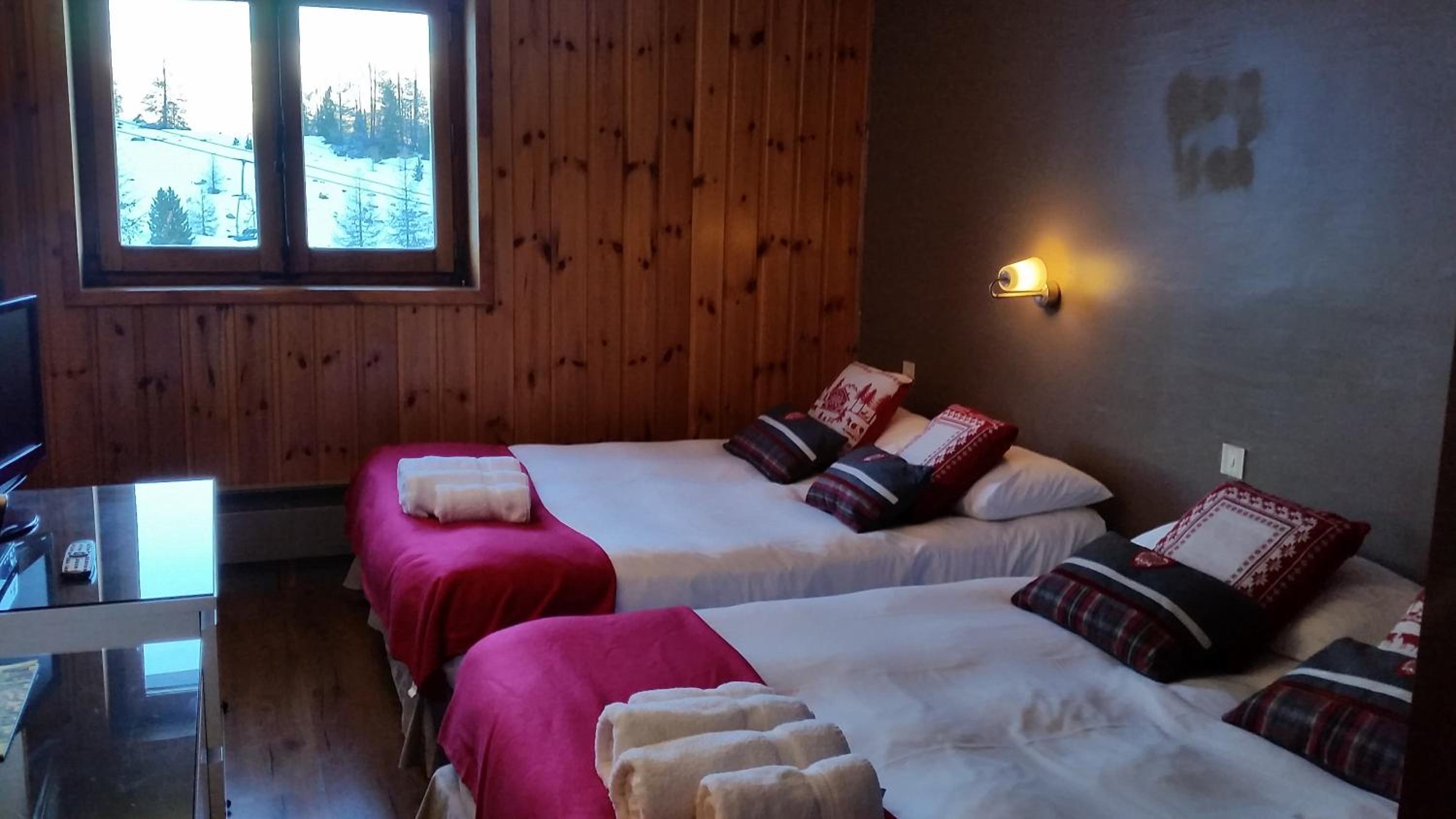 Experience a modern and cozy stay in the wooden-furnished rooms at Chal'heureux. Each room is equipped with amenities like a flat screen TV, free Wi-Fi, and a private bathroom, ensuring a comfortable retreat after a day of skiing.