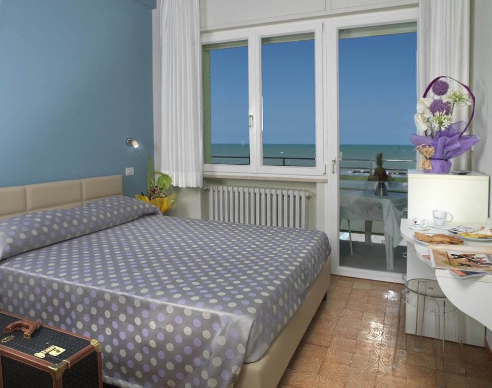 Come prima cosa l’accoglienza, che in Romagna è sempre TOP, la signora , senza neanche controllare, ci ha detto che li non potevamo lasciare le moto perché aspettava dei clienti, noi non lo eravamo? Ci era stato detto che la camera era vista mare, io vedevo solo la lavanderia e il parcheggio. La camera era piccola e non si poteva stare in piedi in 2 contemporaneamente , con un armadio senza ante e un solo comodino. per quanto riguarda la colazione, la sala sarebbe da rimodernare, le tovagliette erano di plastica e i tovaglioli erano quelli più scarsi sul mercato e, come ciliegina sulla torta, le tazze del caffè e the senza piattino e i bicchieri per il succo di PLASTICA. NON È UN QUATTRO STELLE. Unico pregio la pulizia delle camere