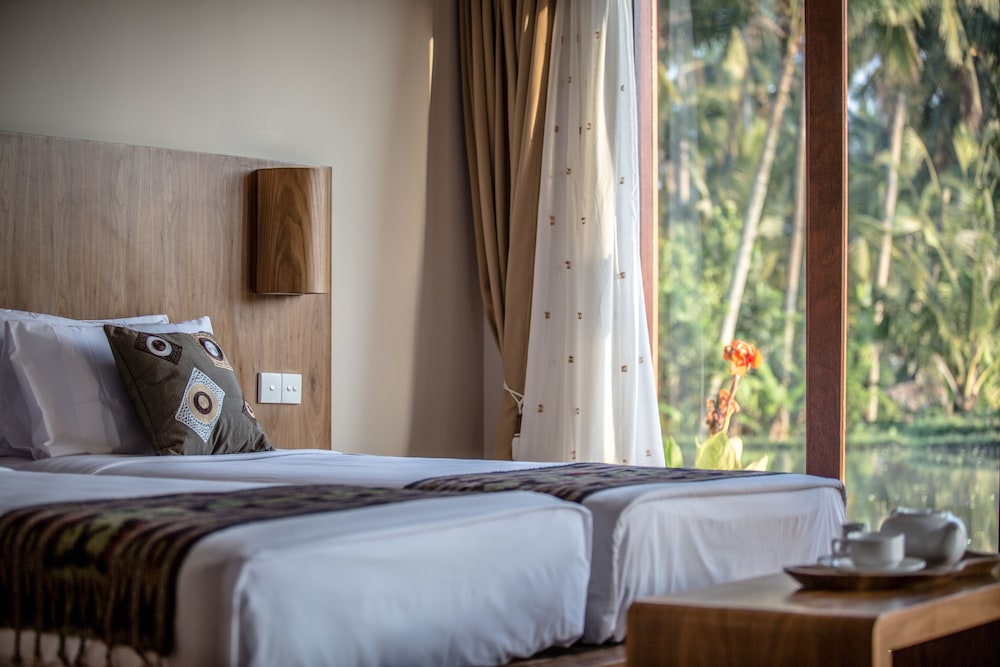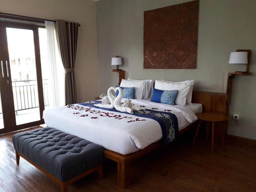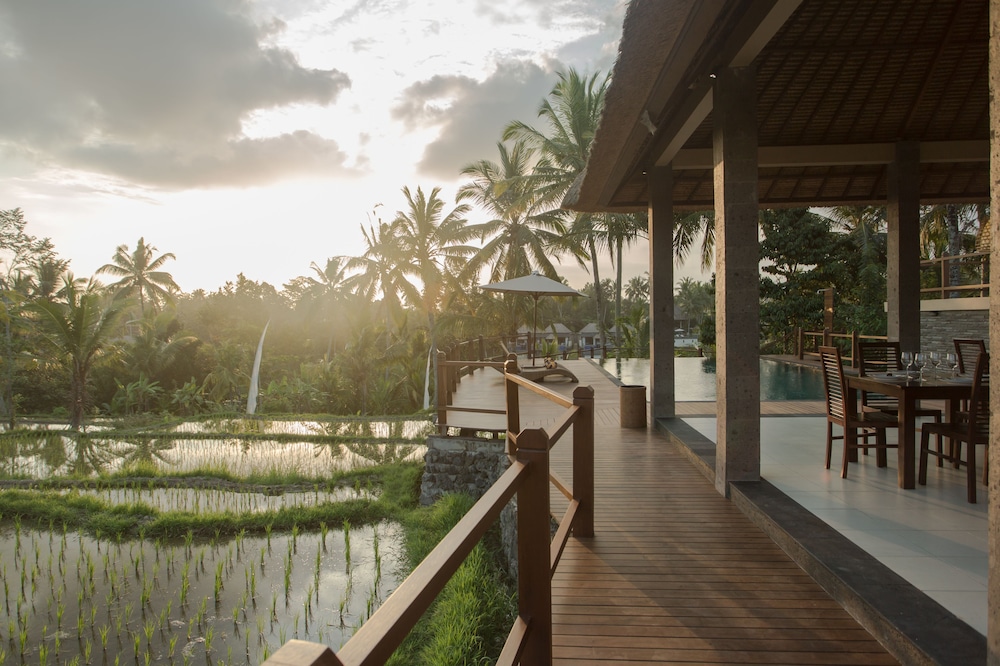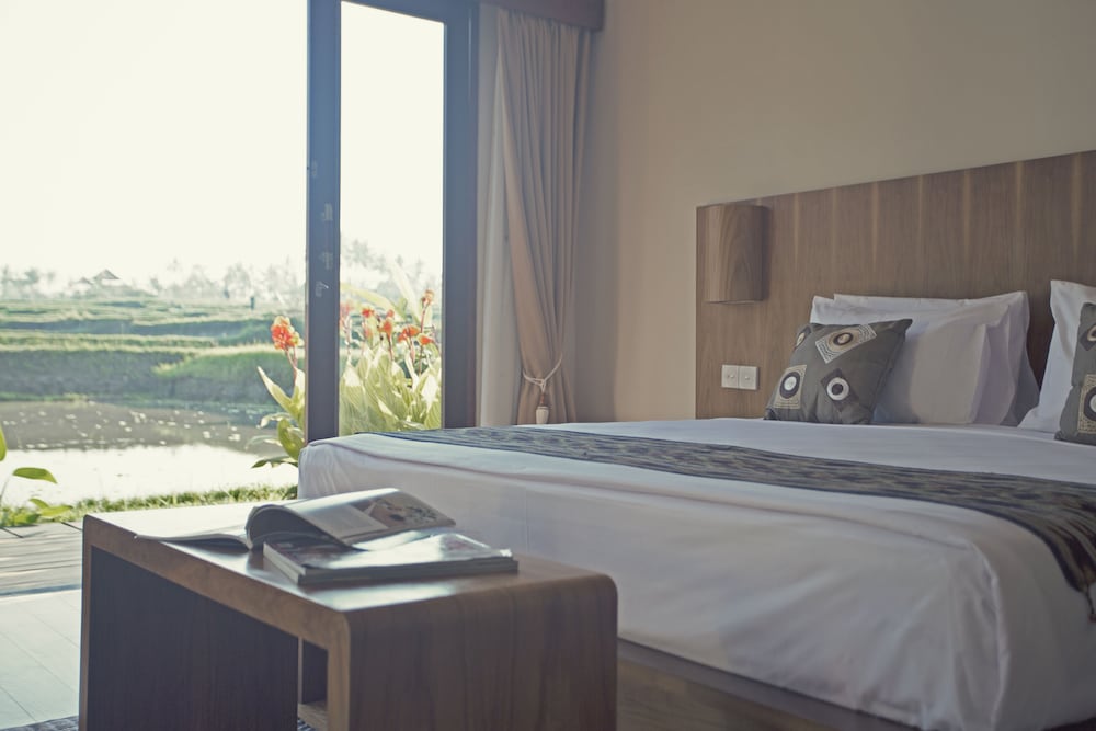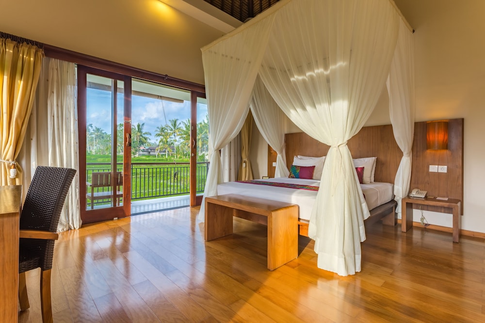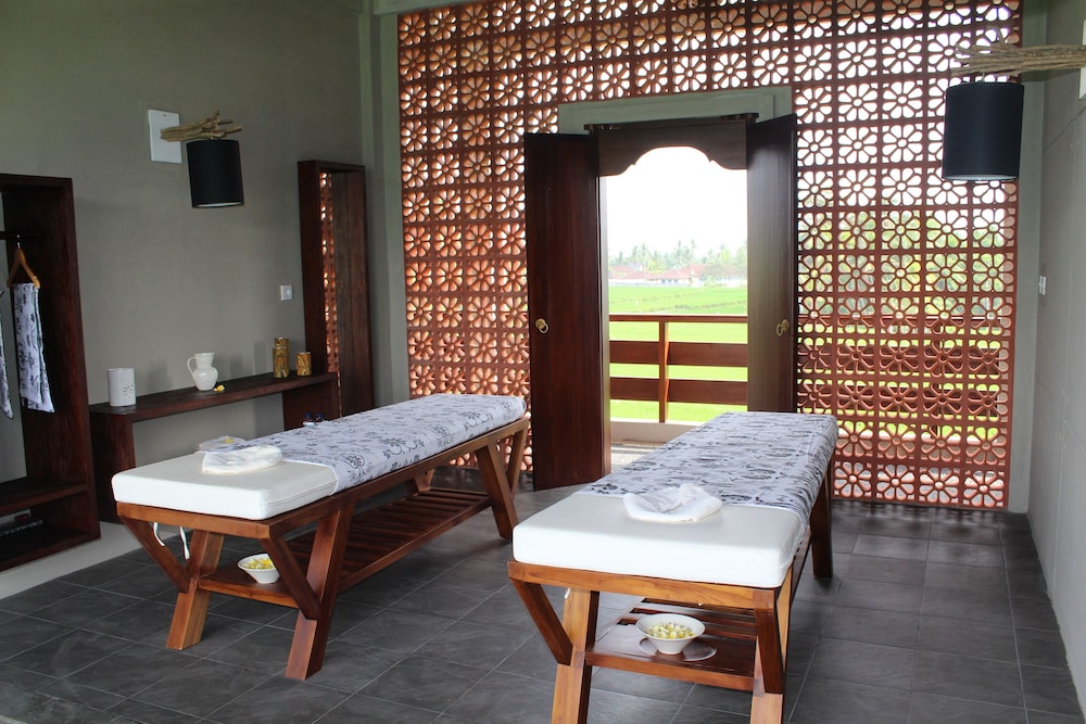Dejligt sted som ligger blandt rismarker. Behjælpeligt personale som gav en god service. Dejlige rummelige og lækre værelser med en god ac. Eneste minus er at der mangler parasoller ved poolen.