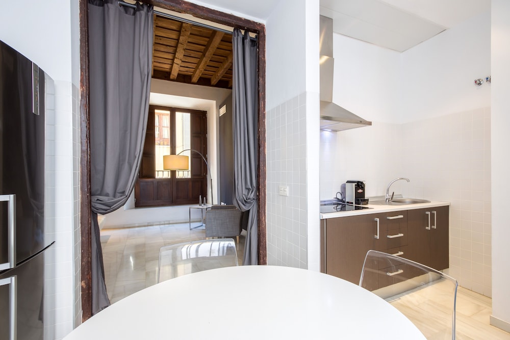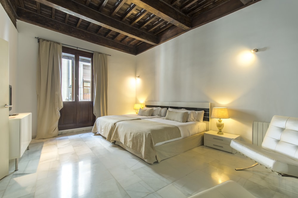 Всем привет, очень хорошее расположение апартаментов. Номер шикарный! Высокие деревянные потолки. Очень красивые большие окна. Номер очень большой и классный. Всё было чисто, постельное бельё чистое, белоснежное. кровать хорошая, такая большая что можно потеряться 🤣 Душ и ванная комната чистые. На ресепшен приятные и отзывчивые люди. Рядом очень вкусная шаурма (дурум). Гранада это самый лучший город на земле! Приезжайте и убедитесь в этом! Гранада в самое сердце ❤️❤️❤️❤️❤️🇷🇺