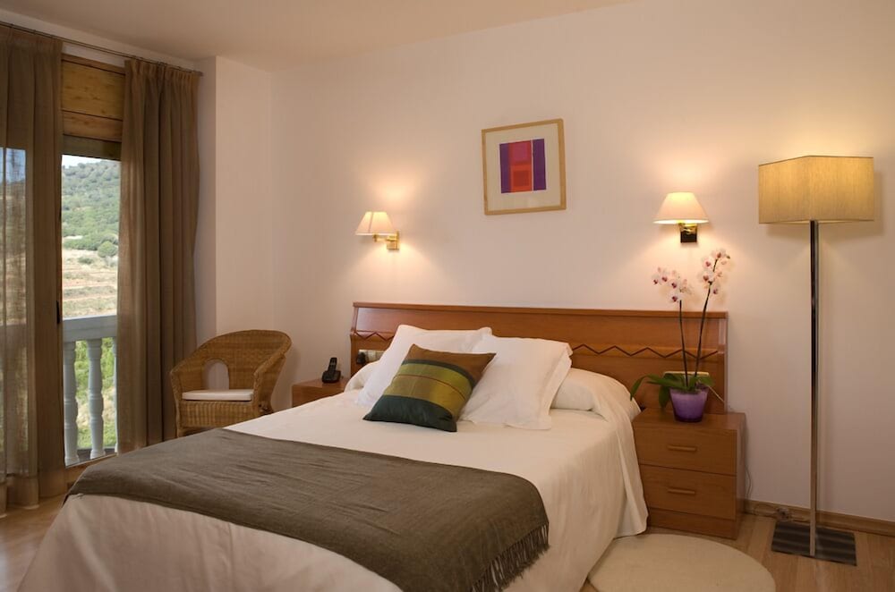 Un hotel bonito pero muy venido a menos. Poco cuidado, desmejorado, con una limpieza que dejaba bastante que desear, con mobiliario antiguo y deteriorado. He visto fotos en internet y no se parecen en nada a la realidad....al menos en mi habitación. Se estropeó la calefacción, no había nunca nadie en recepción (dejan un timbre al que no acude nadie), al final me subieron un radiador. Es cierto que el restaurante está bien y que el entorno es bonito, y supongo que en verano tendrá más movimiento y la piscina le dará vida, pero yo no pienso volver.