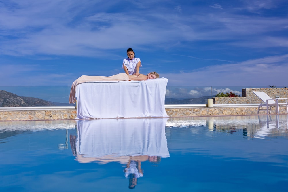 The views are gorgeous! Restaurant outdoor seating is lovely day or night. Located near the top of a mountain so need car to get to town and beaches. Rooms are beautifully done, with cooktop and larger refrigerator but think have to ask for cooking supplies should you want them. Amenities were great. Silly observation, but one of a couple of hotels on our trip throughout Greece that provided hair conditioner.