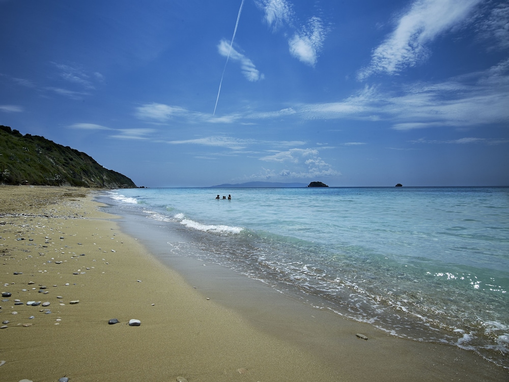 Beautiful, clean, comfy hotel, staff really kind and helpful. Very quiet location with only a couple of (very good) tavernas nearby on the beach. No shops nearby so if you don’t have a car you will need to bring everything you need or prepare to take taxis. X