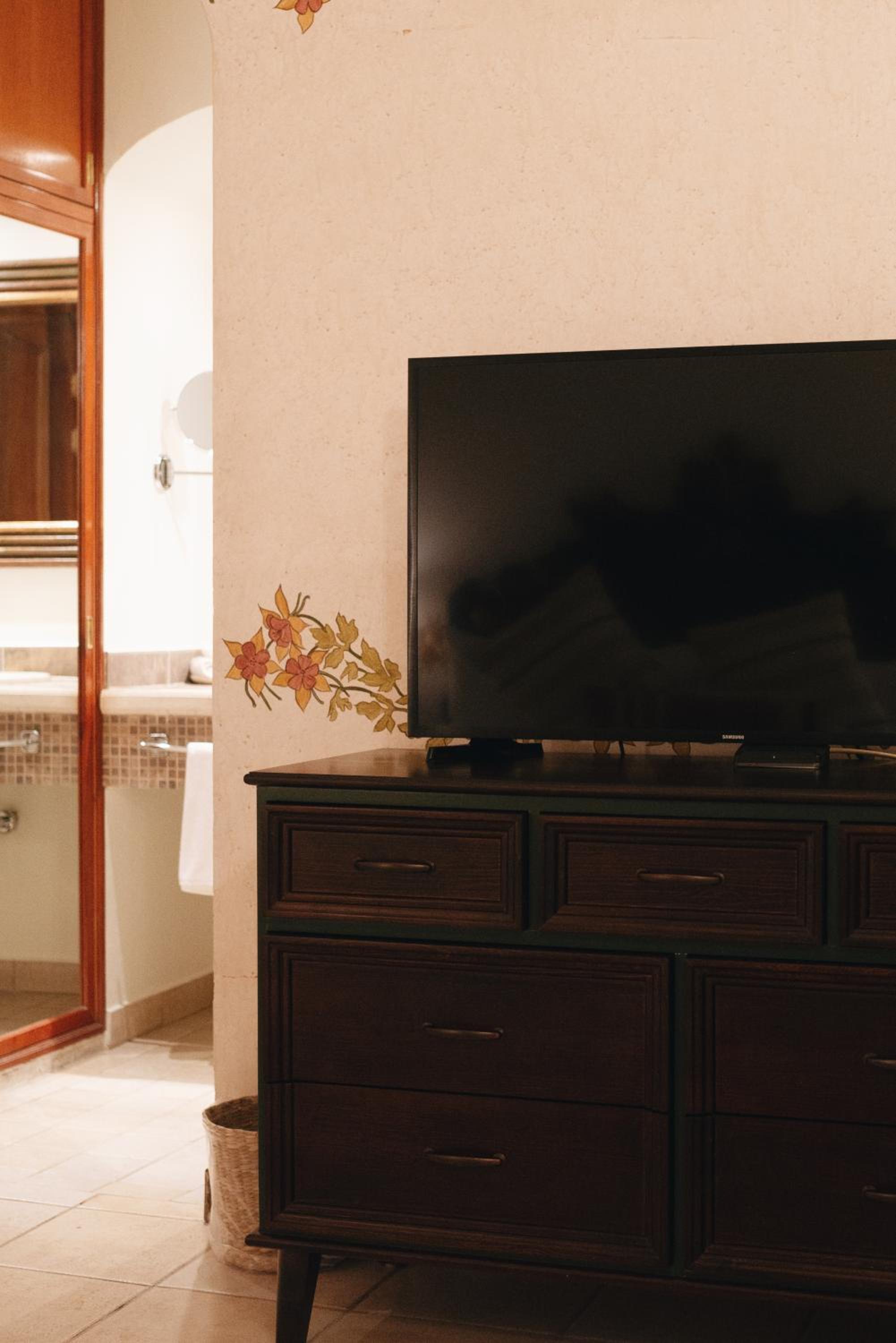 Experience comfort and convenience in every room at Los Pilares Hotel, equipped with a flat-screen TV, safety box, and a private bathroom with complimentary toiletries.