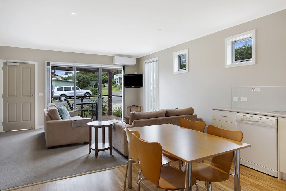 Modern, clean and spacious villa unit with jetted tub in the bathroom; abundant and branded kitchen and toilet amenities e.g. Maxwell & Williams, Raco, Mìele; property provides an easy and straightforward access to all the scenic spots in the Great Ocean Road; we had some problems with power supply but management expressed their genuine duty of care by offering a 20% discount to our accommodation cost; thank you very much for this sincere gesture of goodwill and generosity; I would love to come back to Port Campbell with my grandchildren and stay in this pleasant property - a double thumbs up for me!