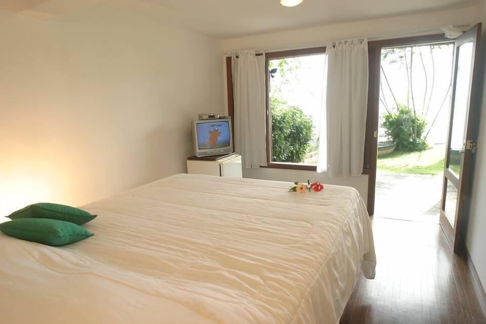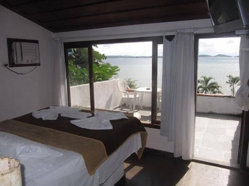 Fiquei duas noites e pelo preço que paguei esperava pelo menos um quarto com copos e taleres, ou no mínimo uma TV maior que 14 polegadas de tubo antiga com os canais tudo sem sintonia... Gostei de Búzios, mais a pousada é antiga e sem manutenção, não tem nenhum tipo de serviço como comida, bar e etc.., As toalhas não podem ser trocadas somente depois de 2 dias, fiquei muito insatisfeito com as condições da pousada, mais o serviço e o café da manhã é legal, se ela tiver um investimento mínimo e um pouco mais de sofisticação em relação as suas suítes eu talvez voltaria.