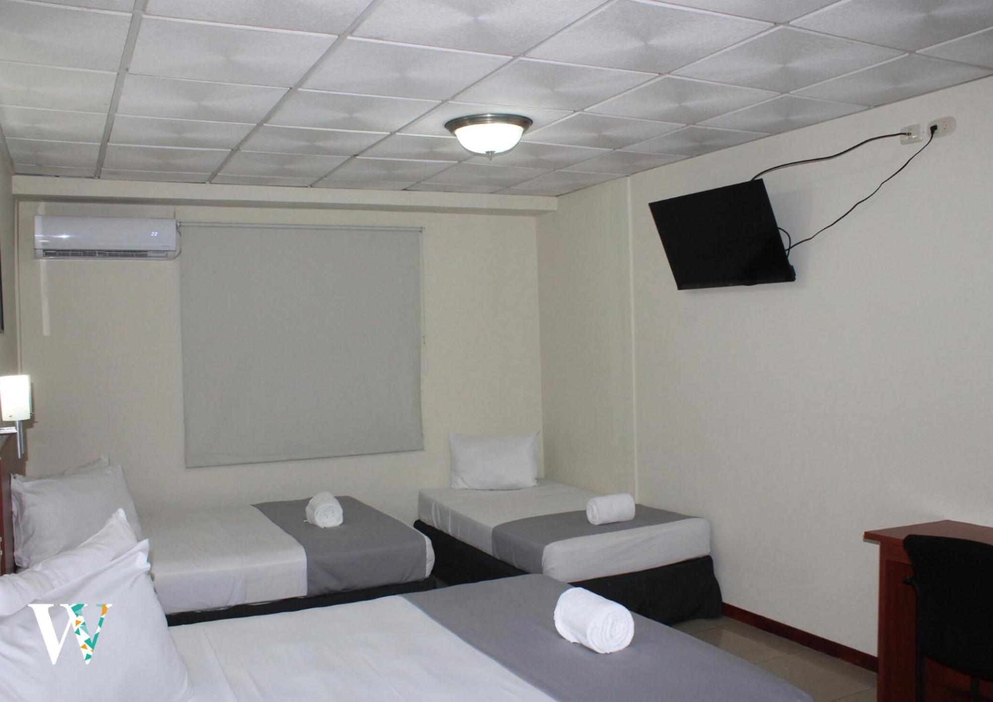 We stayed here from April 2 - 26, 2025. We had 2 rooms. One on ground floor and one on 2nd floor. Rooms were actually bigger than we expected. Hotel and rooms were very clean. Bottled water was left daily for us. Hotel looks basic on the outside but is quite cute on the inside. Breakfast was included and was very good! Staff is very friendly and goes out of their way to help you. Hotel is in a good area and in walking distance to some restaurants. Its also a close drive away to the historical area of San Salvador with a taxi ride for just $5 (easier than driving and trying to find parking). Grocery store was just a 2 minute drive away. The only thing that would have made this a 5* experience was if rooms had a mini fridge in them. When we return to El Salvador, we will definitely stay at this hotel again.