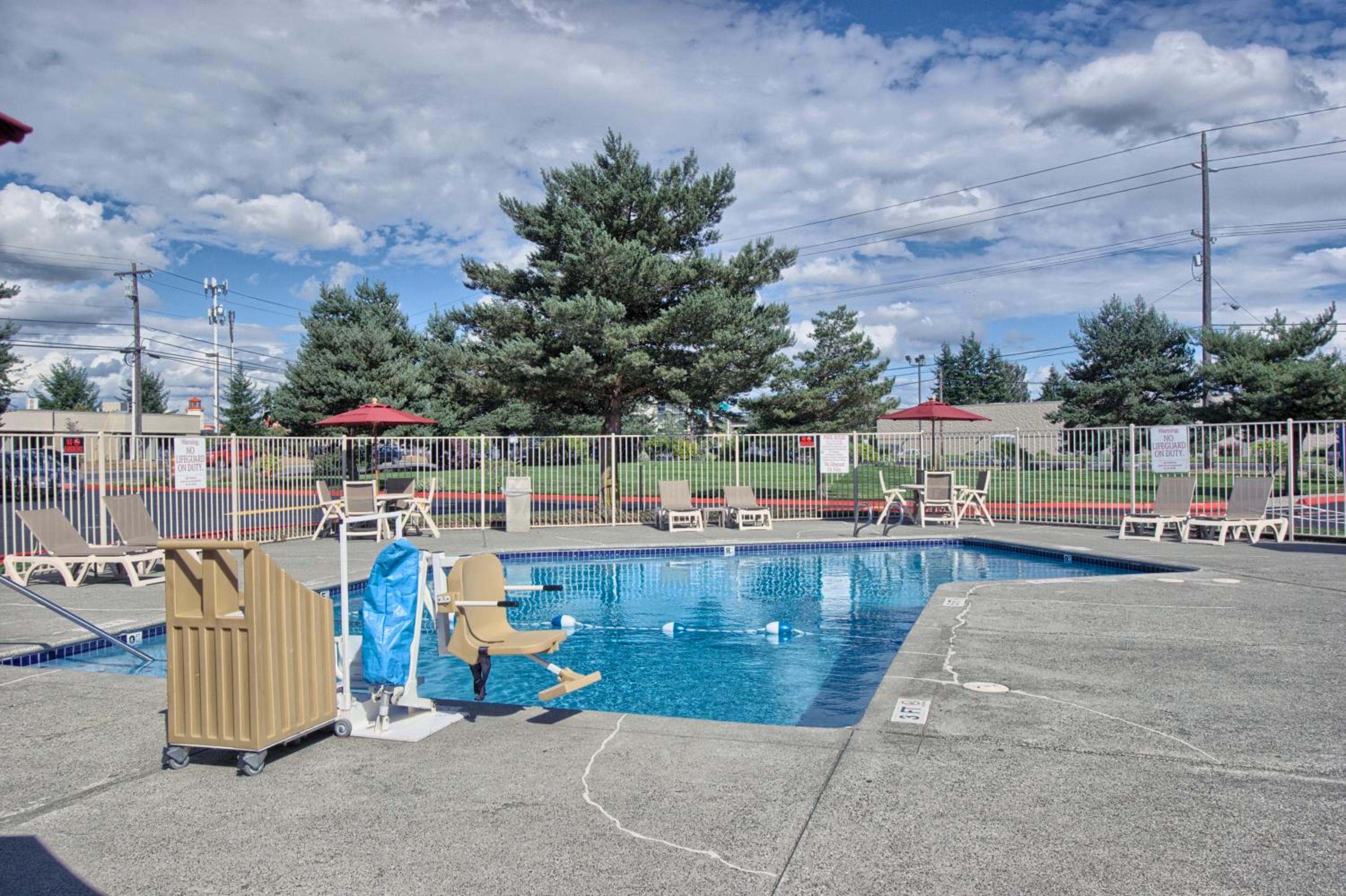 Guests can take advantage of the outdoor pool, laundrette, and vending machines during their stay at Everett North Motel 6, ensuring convenience and comfort throughout their visit.