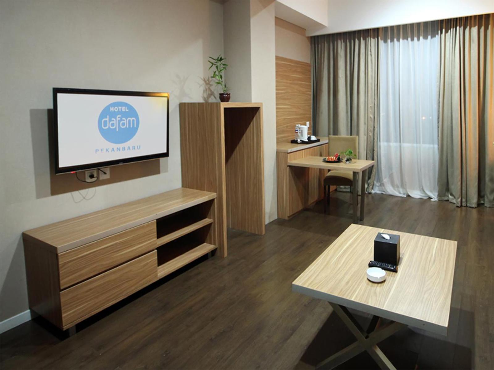 Room is nicely and clean, all staff nice, good communication, complete amenities, solving any of complaint, faster services, good environment, stategic location and well done Dafam hotel pekanbaru.