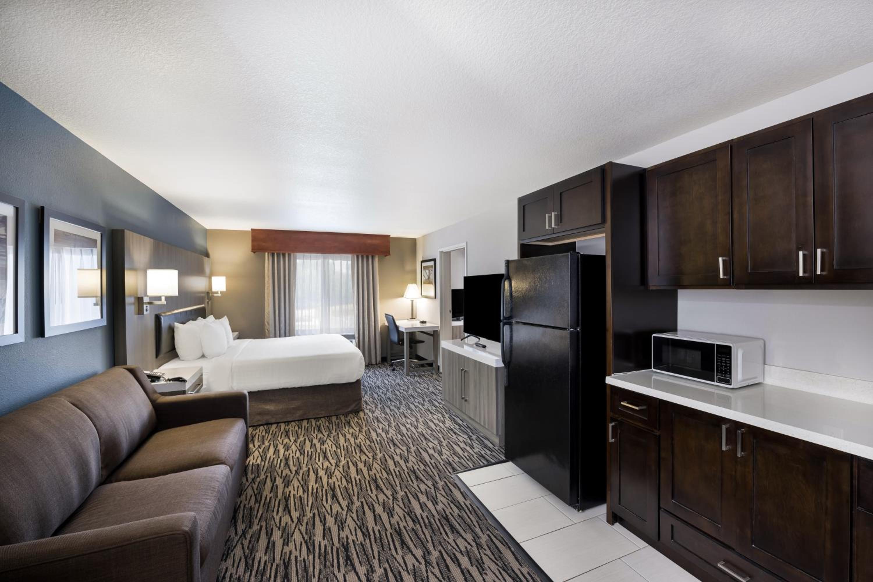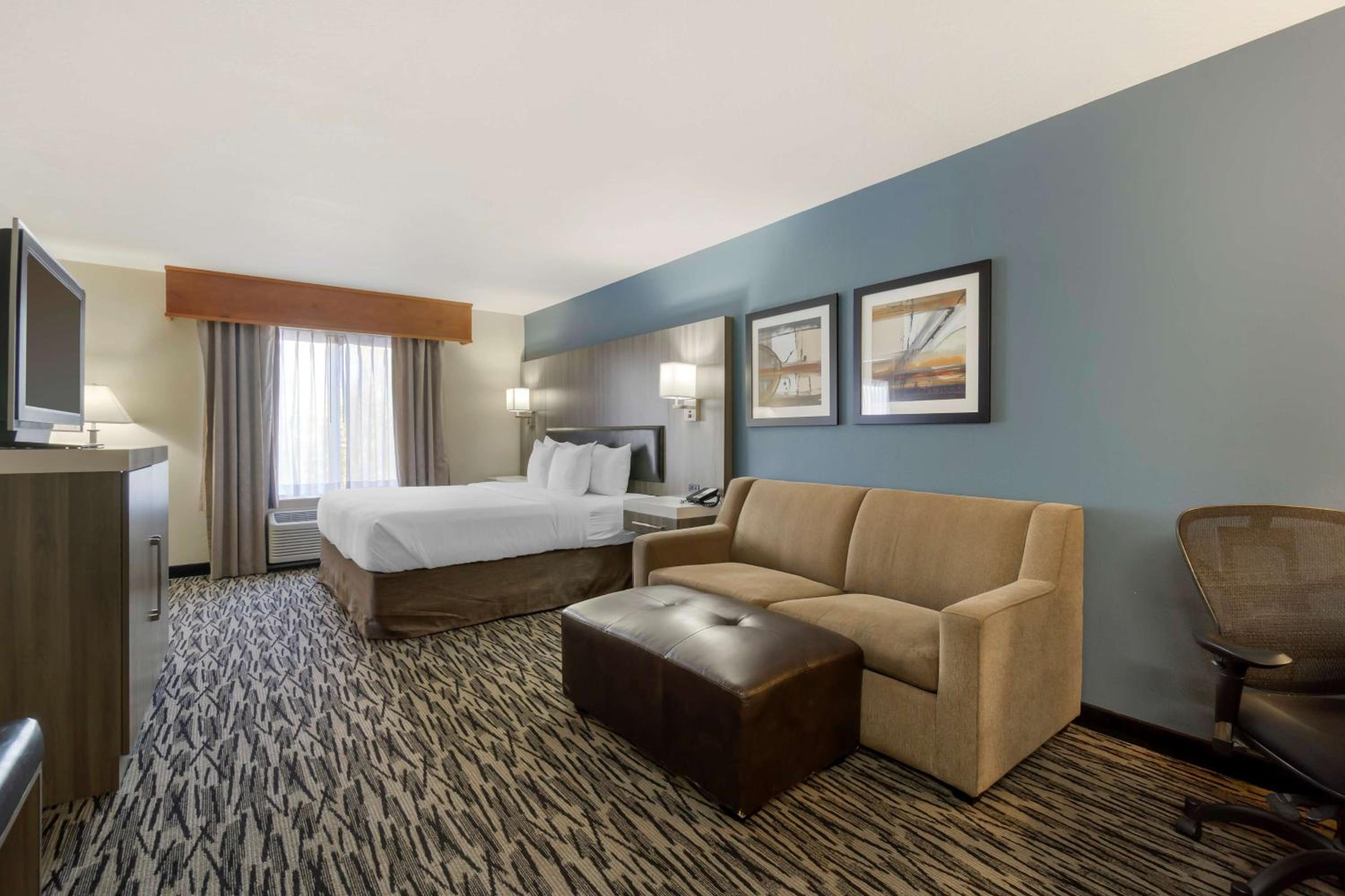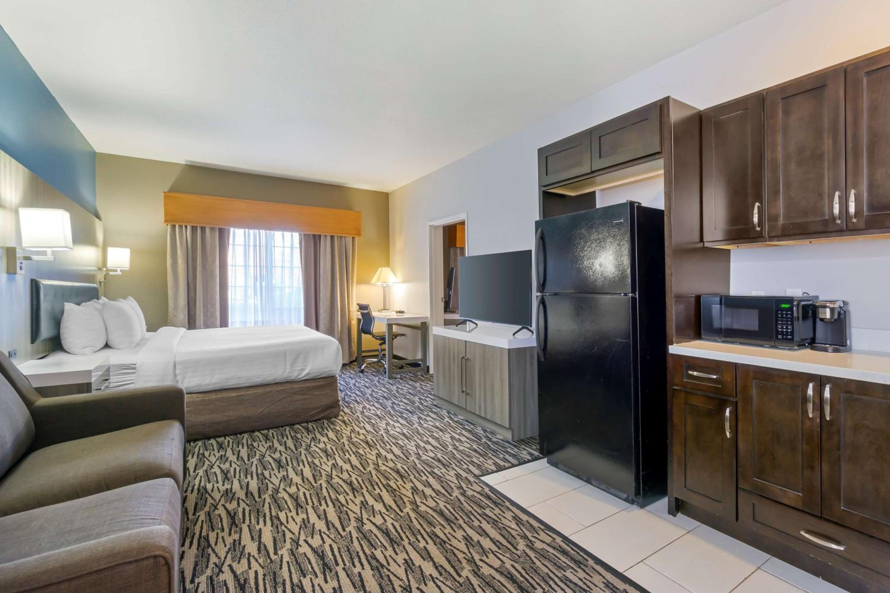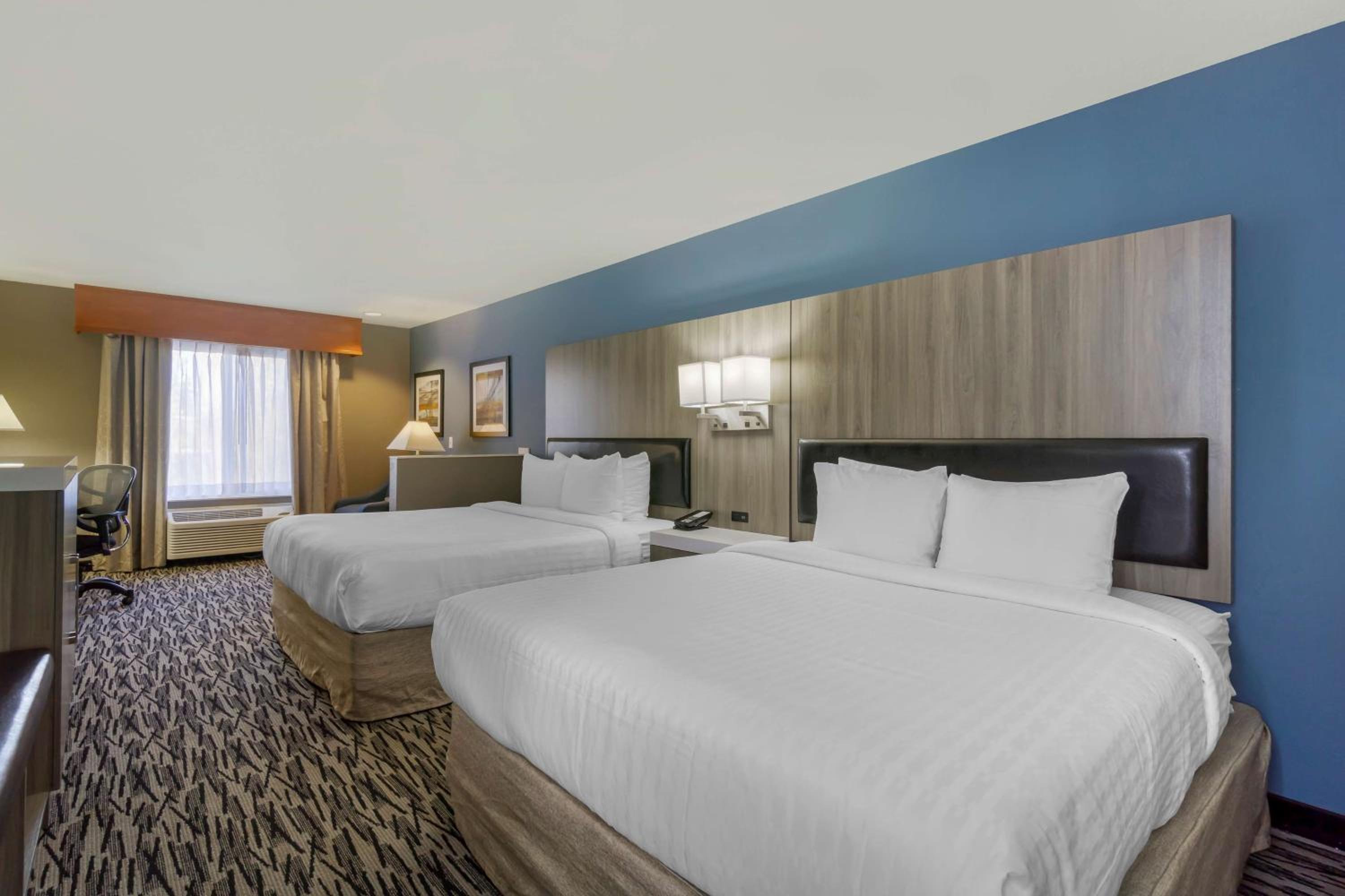 They put us in a room next to a loud ass train. I’ve stayed here over 10 years all different times and practically lived at this hotel for a month under different management. I’ve never been in a room where it was so loud, but I had to call the front desk at three in the morning and ask him what the hell is going on outside. It sounded like somebody was taking a giant garbage dumpster and dumping in the dump truck all night long. Also, the front desk girl upon check-in was horrible. They had a little game that spin a thing and you could get Best Western points or rewards so I spent it and I get this thing that says high five and I go what does that mean and she goes do you want a high five I did not want to hi-fi a random stranger so I said no then she’s like oh well you would’ve got 1000 points like maybe explain the rules before the game that would help and the fact that she just said nope you don’t get the points because I wouldn’t hi-fi her is probably the stupidest thing I’ve ever heard. You should probably work on your customer service, especially with your greeters at the front desk.