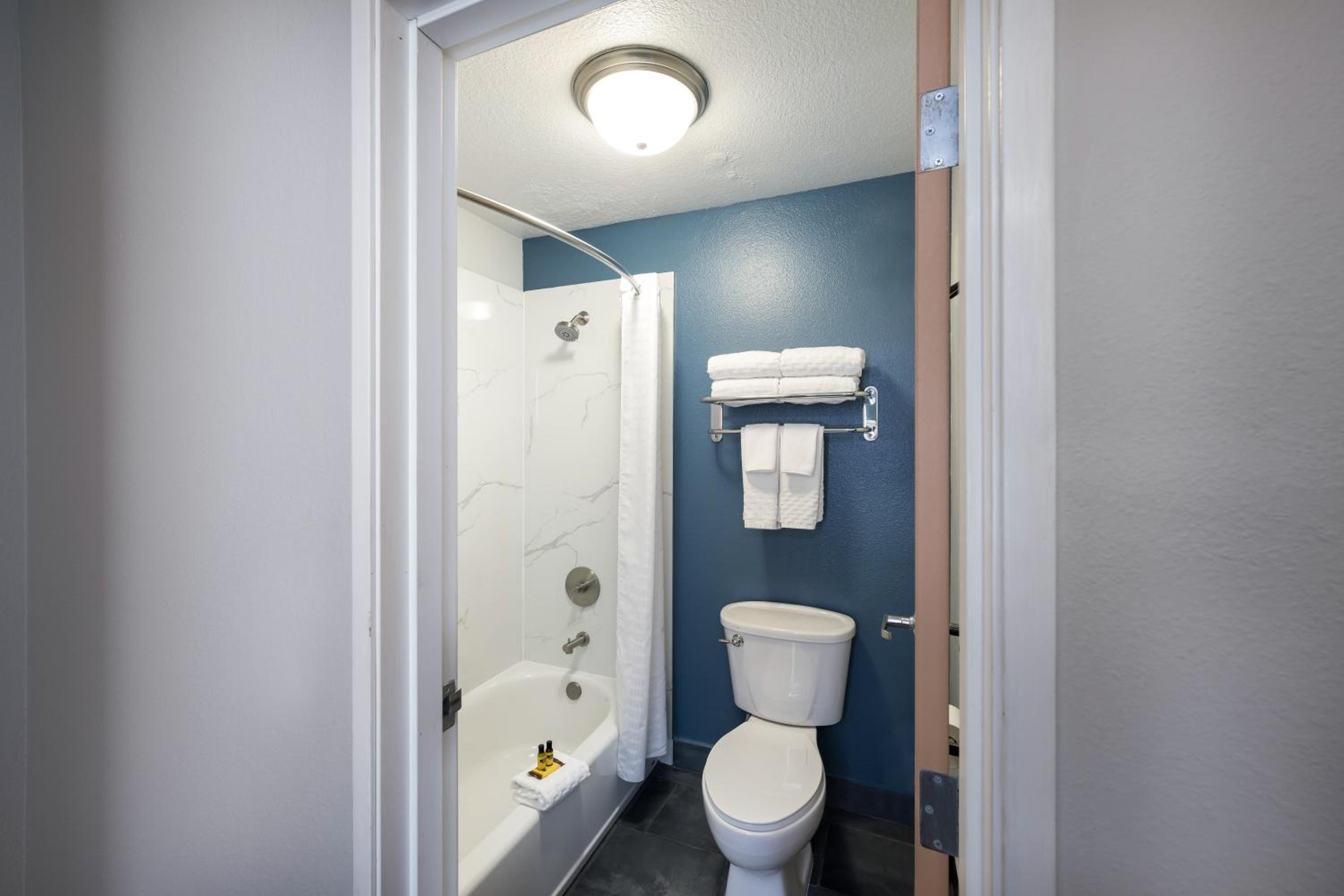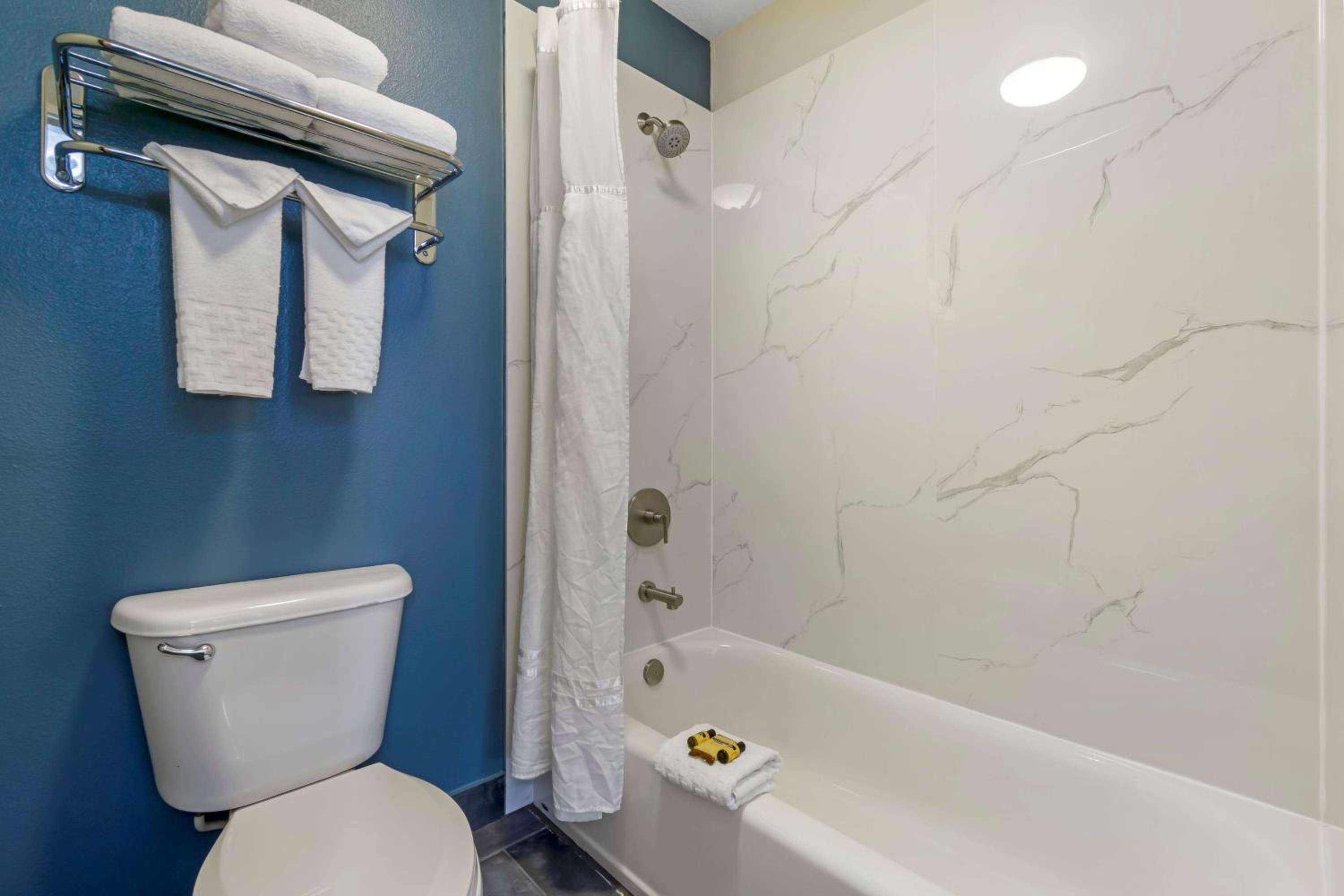 Cozy Rooms: Relax in rooms equipped with 42-inch flat-screen TVs, free Wi-Fi, microwaves, and refrigerators for your comfort.